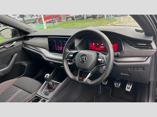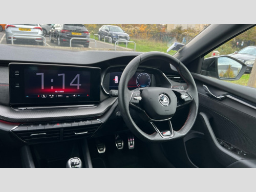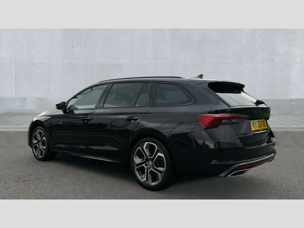 Skoda Octavia 2.0 TSI vRS 5dr 1x USB Type C port in rear view mirror (charging only), 2x USB Type C ports in rear of front centre armrest (charging only), Bluetooth system, Columbus satellite navigation with 10" touchscreen display, Driver fatigue sensor, eCall emergency system, Front and rear parking sensors with manoeuvre assist, Front assist system, Progressive dynamic steering, Speed limiter, Turn Assist, Virtual Cockpit - 10.25" digital display, Virtual pedal with electrically operated boot door (Rear LED lights (high functionality), dynamic indicators - Estate, Voice control system, Wireless SmartLink for Apple Car Play, Electronically controlled limited slip differential, Front and rear stabilizers, 2x USB Type C ports (for charging and data transfer), 8 Speakers, DAB Digital radio, Aero front windscreen wipers with intermittent function, Auto dimming rear view mirror, Black roof rails, Body colour door handles, Chrome exhaust tailpipes, Door sills with vRS logo, Electric front and rear windows, Exterior gloss black sports styling including front grille, side strip, window surrounds, door mirror and badging, Full LED Matrix headlights with AFS, rear LED lights (high functionality) and dynamic indicators and cornering front fog lights, Headlight washers, Heated rear windscreen, High level third brake light, Ice scraper in fuel cap, LED daytime running lights, Rain and light sensors, Rear fog light on one side, Rear privacy glass, Rear side wing doors, Rear spoiler, Rear window wiper, 3 seat bench in 2nd row, 4 foldable roof handles, Aluminium pedals, Black headlining, Black microsuede padded dash panel with red contrast stitching, Chrome inner door handles, Front centre armrest, Front head restraints, Heated front seats, Illuminated glovebox, Leather trimmed gearshift lever, Luggage compartment lighting with two side lamps, Mechanical rear seat release, Parcel shelf - rolling, Single front passenger seat, Sunglasses storage, Textile floor mat set, Three spoke leather sports multifunction steering wheel, Ticket holder, Umbrella in door panel, Unsplit rear bench seat and split folding backrest, LED interior light pack - Octavia, 3 point front/outer rear seatbelts+pre-tensioners, Alarm with interior monitoring, tilt sensor and back up horn, Automatic door unlocking in case of crash, Automatic fuel cut off in case of crash, Automatic warning lights in case of emergency braking, Curtain airbags and front side airbags, Driver and front passenger airbags, Drivers knee airbag, Electronic parking brake, ESC including ABS, EBV, MSR, ASR, EDS, HBA, DSR, Front and rear disc brakes, Front central airbag, Hill hold control, Hill start assist, ISOFIX on front passenger seat and outer rear seats, Manual rear child locks, Passenger airbag deactivate switch, Pro active services, Red brake calipers, Two tone horn, Tyre pressure monitor, Visual and acoustic seat belt reminder, Warning reflectors in front door, Door locks with immobiliser, Keyless entry and start/stop including rear doors, Remote central locking, Carbon optic decorative inserts, Gloss black air vent surrounds, 19" Altair anthracite alloy wheels