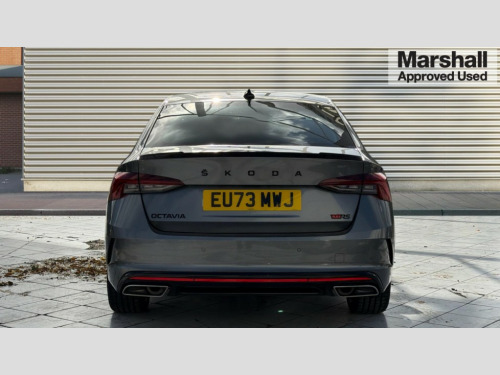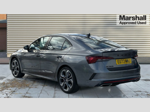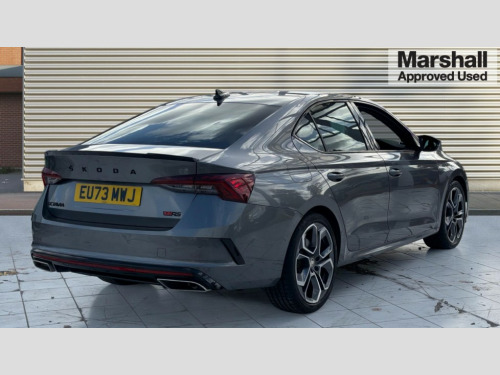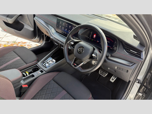Skoda Octavia 2.0 TSI vRS 5dr DSG 1x USB Type C port in rear view mirror (charging only), 2x USB Type C ports in rear of front centre armrest (charging only), Bluetooth system, Columbus satellite navigation with 10" touchscreen display, Driver fatigue sensor, eCall emergency system, Front and rear parking sensors with manoeuvre assist, Front assist system, Progressive dynamic steering, Speed limiter, Turn Assist, Virtual Cockpit - 10.25" digital display, Virtual pedal with electrically operated boot door (Rear LED lights (high functionality), dynamic indicators, Voice control system, Wireless SmartLink for Apple Car Play, Electronically controlled limited slip differential, Front and rear stabilizers, 2x USB Type C ports (for charging and data transfer), 8 Speakers, DAB Digital radio, Aero front windscreen wipers with intermittent function, Auto dimming rear view mirror, Body colour door handles, Chrome exhaust tailpipes, Door sills with vRS logo, Electric front and rear windows, Exterior gloss black sports styling including front grille, side strip, window surrounds, door mirror and badging, Full LED Matrix headlights with AFS, rear LED lights (high functionality) and dynamic indicators and cornering front fog lights, Headlight washers, Heated rear windscreen, High level third brake light, Ice scraper in fuel cap, LED daytime running lights, Rain and light sensors, Rear fog light on one side, Rear privacy glass, Rear side wing doors, vRS bumpers and lip spoiler, 3 rear headrests, 3 seat bench in 2nd row, 4 foldable roof handles, Aluminium pedals, Black headlining, Black microsuede padded dash panel with red contrast stitching, Chrome inner door handles, Front centre armrest, Front head restraints, Heated front seats, Illuminated glovebox, Leather trimmed gearshift lever, Luggage compartment lighting x1 light, Mechanical rear seat release, Parcel shelf - folding, Single front passenger seat, Sunglasses storage, Textile floor mat set, Three spoke leather sports multifunction steering wheel with paddles, Ticket holder, Umbrella in door panel, Unsplit rear bench seat and split folding backrest, LED interior light pack - Octavia, 3 point front/outer rear seatbelts+pre-tensioners, Alarm with interior monitoring, tilt sensor and back up horn, Automatic door unlocking in case of crash, Automatic fuel cut off in case of crash, Automatic warning lights in case of emergency braking, Curtain airbags and front side airbags, Driver and front passenger airbags, Drivers knee airbag, Electronic parking brake, ESC including ABS, EBV, MSR, ASR, EDS, HBA, DSR, Front and rear disc brakes, Front central airbag, Hill hold control, Hill start assist, ISOFIX on front passenger seat and outer rear seats, Manual rear child locks, Passenger airbag deactivate switch, Pro active services, Red brake calipers, Two tone horn, Tyre pressure monitor, Visual and acoustic seat belt reminder, Warning reflectors in front door, Door locks with immobiliser, Keyless entry and start/stop including rear doors, Remote central locking, Carbon optic decorative inserts, Gloss black air vent surrounds, 19" Altair anthracite alloy wheels