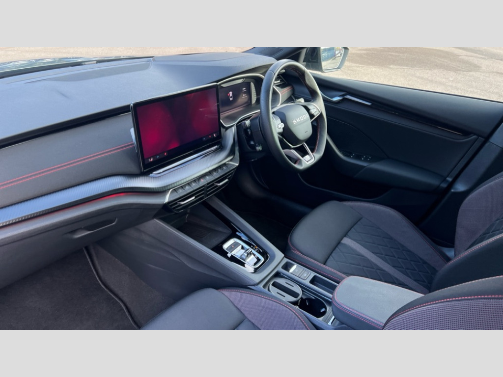 Skoda Octavia 2.0 TSI vRS 5dr DSG 1x USB Typc C port in rear view mirror, 4x USB Type C ports - 2x in front centre console and 2x in rear (45W), Drive mode selection, Driver fatigue sensor, eCall emergency system, Electrically operated boot with virtual pedal, Front assist system, Progressive dynamic steering, Traffic sign recognition, Turn Assist, Virtual Cockpit - 10.25" digital display, Voice control system, Wireless charging (15W) with cooling function, Wireless SmartLink for Apple CarPlay and Android Auto, Electronically controlled limited slip differential, vRS suspension, 13" touchscreen display with navigation, DAB Digital radio, Aero front windscreen wipers with intermittent function, Auto dimming rear view mirror, Black sport exhaust pipes, Body colour bumpers, Body colour door handles, Electric front and rear windows, Exterior gloss black sports styling including front grille, window surrounds, door mirrors and badging, Gloss black diffuser, Gloss black spoiler, Heated rear windscreen, High beam control, High level third brake light, Ice scraper in fuel cap, LED daytime running lights, Logo projection in front doors, Rain and light sensors, Rear fog light on one side, Rear privacy glass, Rear side wing doors, Unique vRS bumpers and exterior styling, 12 volt socket in boot, 3 rear headrests, 3 seat bench in 2nd row, 4 foldable roof handles, Aluminium pedals, Front head restraints, Front sport seats, Heated front seats, Illuminated glovebox, Interior door handles in dark chrome, Jumbo Box storage, Luggage compartment lighting x2 lights, Mechanical rear seat release from boot, Parcel shelf - folding, Single front passenger seat, Steering wheel in black leather with black stitching, Storage compartments in left and right of boot, Sun visors with mirrors, Sunglasses storage, Ticket holder, Umbrella in door panel, Unsplit rear bench seat, split folding backrest with centre armrest with cupholder, Waste bin in door panel, Comfort package - Octavia, Family package - Octavia, Light and view package plus - Octavia, vRS Design Selection pack - Octavia, 3x3 point rear seat belts, Alarm with interior monitoring, tilt sensor and back up horn, Curtain airbags and front side airbags, Driver and front passenger airbags, Drivers knee airbag, Electronic parking brake, ESC including ABS, EBV, MSR, ASR, EDS, HBA, DSR, Front central airbag, Hill hold assist, ISOFIX on front passenger seat and outer rear seats, Passenger airbag deactivate switch, Red brake calipers, Three point seat belts in front and rear, Two tone horn, Tyre pressure monitor, Visual and acoustic seat belt reminder, Warning reflectors in front door, Anti-theft wheel bolts, Keyless start/stop, Remote central locking, Gloss black air vent surrounds, 19" Elias anthracite alloy wheels