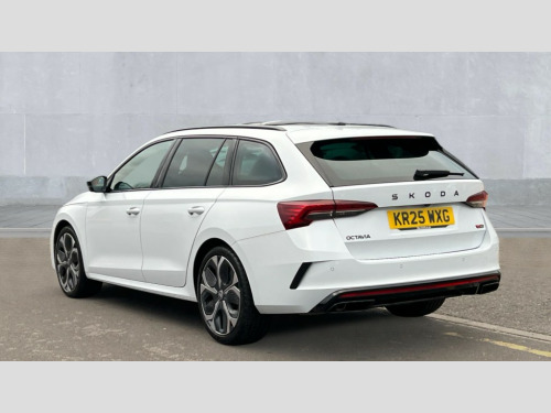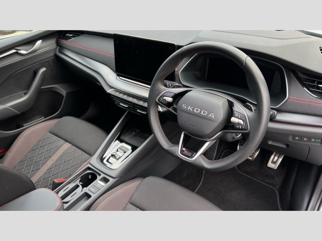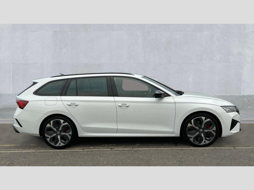 Skoda Octavia 2.0 TSI vRS 5dr DSG 1x USB Typc C port in rear view mirror, 4x USB Type C ports - 2x in front centre console and 2x in rear (45W), Drive mode selection, Driver fatigue sensor, eCall emergency system, Electrically operated boot with virtual pedal, Front assist system, Progressive dynamic steering, Traffic sign recognition, Turn Assist, Virtual Cockpit - 10.25" digital display, Voice control system, Wireless charging (15W) with cooling function, Wireless SmartLink for Apple CarPlay and Android Auto, Electronically controlled limited slip differential, vRS suspension, 13" touchscreen display with navigation, DAB Digital radio, Aero front windscreen wipers with intermittent function, Auto dimming rear view mirror, Black sport exhaust pipes, Body colour bumpers, Body colour door handles, Electric front and rear windows, Exterior gloss black sports styling including front grille, window surrounds, door mirrors and badging, Gloss black diffuser, Gloss black roof rails, Gloss black spoiler, Heated rear windscreen, High beam control, High level third brake light, Ice scraper in fuel cap, LED daytime running lights, Logo projection in front doors, Rain and light sensors, Rear fog light on one side, Rear privacy glass, Rear side wing doors, Rear window wiper, Unique vRS bumpers and exterior styling, 12 volt socket in boot, 3 rear headrests, 3 seat bench in 2nd row, 4 foldable roof handles, Aluminium pedals, Front head restraints, Front sport seats, Heated front seats, Illuminated glovebox, Interior door handles in dark chrome, Jumbo Box storage, Luggage compartment lighting x2 lights, Mechanical rear seat release from boot, Single front passenger seat, Steering wheel in black leather with black stitching, Storage compartments in left and right of boot, Sun visors with mirrors, Sunglasses storage, Ticket holder, Umbrella in door panel, Unsplit rear bench seat, split folding backrest with centre armrest with cupholder, Waste bin in door panel, Comfort package - Octavia Estate, Family package - Octavia, Light and view package plus - Octavia, vRS Design Selection pack - Octavia, 3x3 point rear seat belts, Alarm with interior monitoring, tilt sensor and back up horn, Curtain airbags and front side airbags, Driver and front passenger airbags, Drivers knee airbag, Electronic parking brake, ESC including ABS, EBV, MSR, ASR, EDS, HBA, DSR, Front central airbag, Hill hold assist, ISOFIX on front passenger seat and outer rear seats, Passenger airbag deactivate switch, Red brake calipers, Three point seat belts in front and rear, Two tone horn, Tyre pressure monitor, Visual and acoustic seat belt reminder, Warning reflectors in front door, Anti-theft wheel bolts, Keyless start/stop, Remote central locking, Gloss black air vent surrounds, 19" Elias anthracite alloy wheels