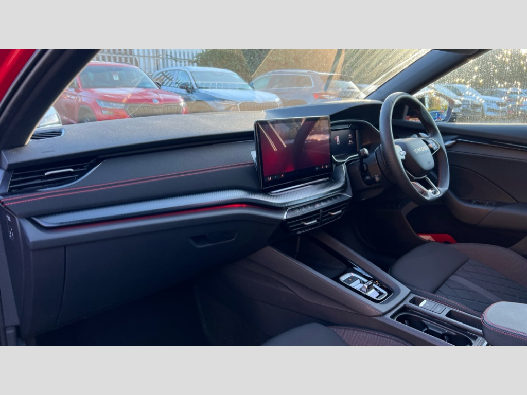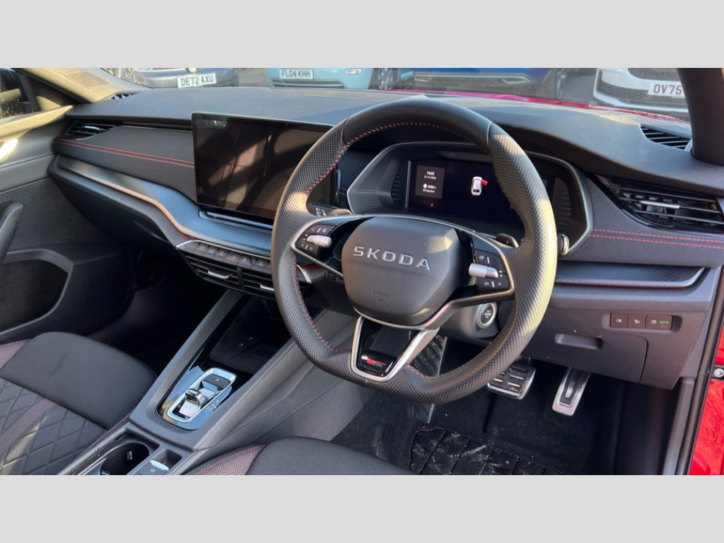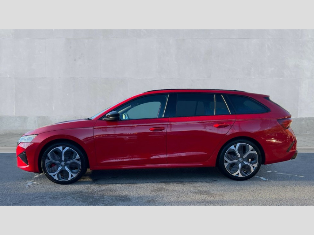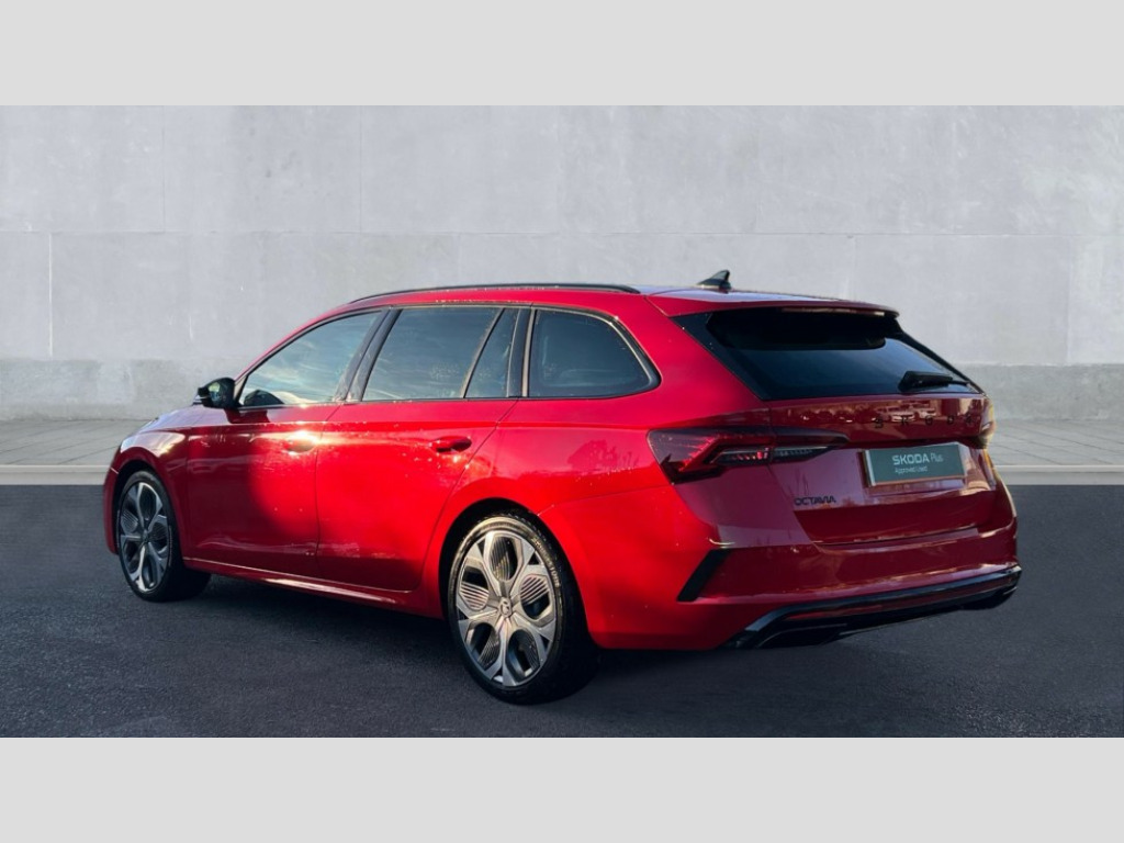 Skoda Octavia 2.0 TSI vRS 5dr DSG 1x USB Typc C port in rear view mirror, 4x USB Type C ports - 2x in front centre console and 2x in rear (45W), Drive mode selection, Driver fatigue sensor, eCall emergency system, Electrically operated boot with virtual pedal, Front assist system, Progressive dynamic steering, Traffic sign recognition, Turn Assist, Virtual Cockpit - 10.25" digital display, Voice control system, Wireless charging (15W) with cooling function, Wireless SmartLink for Apple CarPlay and Android Auto, Electronically controlled limited slip differential, vRS suspension, 13" touchscreen display with navigation, DAB Digital radio, Aero front windscreen wipers with intermittent function, Auto dimming rear view mirror, Black sport exhaust pipes, Body colour bumpers, Body colour door handles, Electric front and rear windows, Exterior gloss black sports styling including front grille, window surrounds, door mirrors and badging, Gloss black diffuser, Gloss black roof rails, Gloss black spoiler, Heated rear windscreen, High beam control, High level third brake light, Ice scraper in fuel cap, LED daytime running lights, Logo projection in front doors, Rain and light sensors, Rear fog light on one side, Rear privacy glass, Rear side wing doors, Rear window wiper, Unique vRS bumpers and exterior styling, 12 volt socket in boot, 3 rear headrests, 3 seat bench in 2nd row, 4 foldable roof handles, Aluminium pedals, Front head restraints, Front sport seats, Heated front seats, Illuminated glovebox, Interior door handles in dark chrome, Jumbo Box storage, Luggage compartment lighting x2 lights, Mechanical rear seat release from boot, Single front passenger seat, Steering wheel in black leather with black stitching, Storage compartments in left and right of boot, Sun visors with mirrors, Sunglasses storage, Ticket holder, Umbrella in door panel, Unsplit rear bench seat, split folding backrest with centre armrest with cupholder, Waste bin in door panel, Comfort package - Octavia Estate, Family package - Octavia, Light and view package plus - Octavia, vRS Design Selection pack - Octavia, 3x3 point rear seat belts, Alarm with interior monitoring, tilt sensor and back up horn, Curtain airbags and front side airbags, Driver and front passenger airbags, Drivers knee airbag, Electronic parking brake, ESC including ABS, EBV, MSR, ASR, EDS, HBA, DSR, Front central airbag, Hill hold assist, ISOFIX on front passenger seat and outer rear seats, Passenger airbag deactivate switch, Red brake calipers, Three point seat belts in front and rear, Two tone horn, Tyre pressure monitor, Visual and acoustic seat belt reminder, Warning reflectors in front door, Anti-theft wheel bolts, Keyless start/stop, Remote central locking, Gloss black air vent surrounds, 19" Elias anthracite alloy wheels