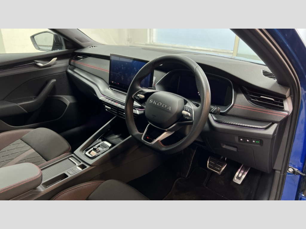 Skoda Octavia 2.0 TSI vRS 5dr DSG 1x USB Typc C port in rear view mirror, 4x USB Type C ports - 2x in front centre console and 2x in rear (45W), Drive mode selection, Driver fatigue sensor, eCall emergency system, Electronic engine sound, Front assist system, Progressive dynamic steering, Traffic sign recognition, Turn Assist, Virtual Cockpit - 10.25" digital display, Voice control system, Wireless charging (15W) with cooling function, Wireless SmartLink for Apple CarPlay and Android Auto, Electronically controlled limited slip differential, vRS suspension, 13" touchscreen display with navigation, DAB Digital radio, Aero front windscreen wipers with intermittent function, Auto dimming rear view mirror, Black sport exhaust pipes, Body colour bumpers, Body colour door handles, Bumpers with rear red reflector strip, Electric front and rear windows, Exterior gloss black sports styling including front grille, window surrounds, door mirrors and badging, Gloss black diffuser, Gloss black spoiler, Heated rear windscreen, High beam control, High level third brake light, Ice scraper in fuel cap, LED daytime running lights, Logo projection in front doors, Rain and light sensors, Rear fog light on one side and reversing lights on both sides, Rear privacy glass, Rear side wing doors, Rear wiper, Unique vRS bumpers and exterior styling, 12 volt socket in boot, 2x umbrella in door, 3 rear headrests, 3 seat bench in 2nd row, 4 foldable roof handles, Aluminium pedals, Boot net programme, Front head restraints, Front sport seats, Heated front seats, Illuminated glovebox, Interior door handles in dark chrome, Jumbo Box storage, Luggage compartment lighting x2 lights, Mechanical rear seat release from boot, Parcel shelf - folding, Single front passenger seat, Steering wheel in black leather with black stitching, Storage compartment under passenger seat, Storage compartments in left and right of boot, Sun visors with mirrors, Sunglasses storage, Three spoke leather sports multifunction steering wheel with paddles, Ticket holder, Unsplit rear bench seat, split folding backrest with centre armrest with cupholder, Waste bin in door panel, Comfort package - Octavia, Family package - Octavia, Light and view package plus - Octavia, vRS Design Selection pack - Octavia, 3x3 point rear seat belts, Alarm with interior monitoring, tilt sensor and back up horn, Curtain airbags and front side airbags, Driver and front passenger airbags, Drivers knee airbag, Electronic parking brake, ESC including ABS, EBV, MSR, ASR, EDS, HBA, DSR, Front central airbag, Hill hold assist, ISOFIX on front passenger seat and outer rear seats, Passenger airbag deactivate switch, Red brake calipers, Three point seat belts in front and rear, Two tone horn, Tyre pressure monitor, Visual and acoustic seat belt reminder, Warning reflectors in front door, Anti-theft wheel bolts, Keyless entry and start/stop, Remote central locking, Gloss black air vent surrounds, 19" Elias anthracite alloy wheels
