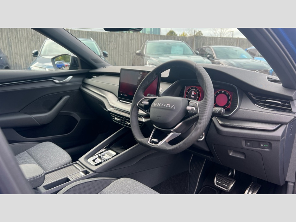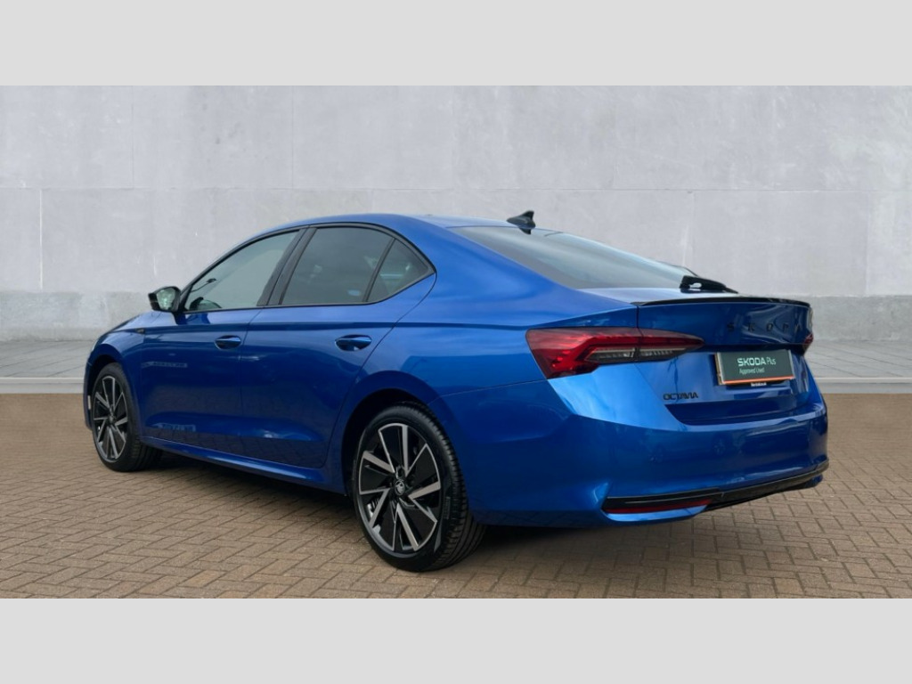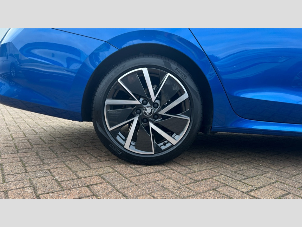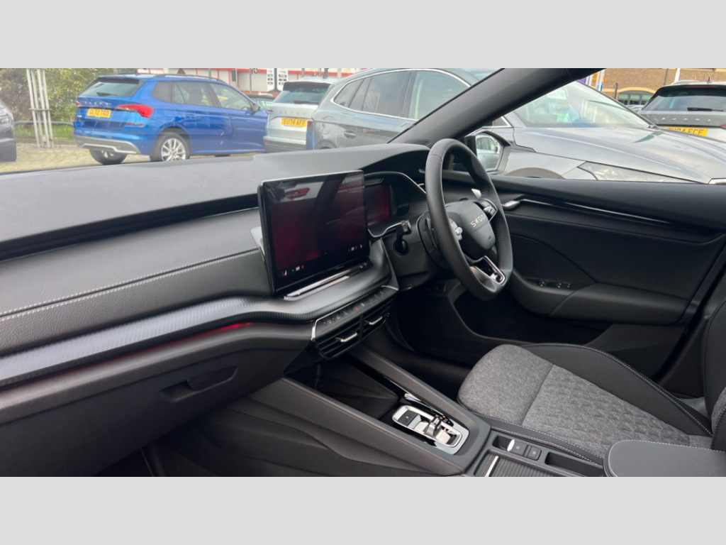 Skoda Octavia 1.5 TSI 150 e-TEC Sportline 5dr DSG 1x USB Typc C port in rear view mirror, 4x USB Type C ports - 2x in front centre console and 2x in rear (45W), Drive mode selection, Driver fatigue sensor, eCall emergency system, Front assist system, Progressive dynamic steering, Traffic sign recognition, Turn Assist, Virtual Cockpit - 10.25" digital display, Voice control system, Wireless charging (15W) with cooling function, Wireless SmartLink for Apple CarPlay and Android Auto, Sports suspension with 15mm lower, 13" touchscreen display with navigation, DAB Digital radio, Aero front windscreen wipers with intermittent function, Auto dimming rear view mirror, Body colour bumpers, Body colour door handles, Chrome strip in lower front bumper, Electric front and rear windows, Exterior gloss black sports styling including front grille, window surrounds, door mirrors and badging, Gloss black diffuser, Gloss black spoiler, Heated rear windscreen, High beam control, High level third brake light, Ice scraper in fuel cap, LED daytime running lights, Logo projection in front doors, Rain and light sensors, Rear fog light on one side and reversing lights on both sides, Rear privacy glass, Rear side wing doors, Rear wiper, 12 volt socket in boot, 3 rear headrests, 3 seat bench in 2nd row, 4 foldable roof handles, Aluminium pedals, Boot net programme, Front head restraints, Front sport seats, Heated front seats, Illuminated glovebox, Interior door handles in dark chrome, Jumbo Box storage, Luggage compartment lighting x2 lights, Mechanical rear seat release from boot, Parcel shelf - folding, Single front passenger seat, Steering wheel in black leather with black stitching, Storage compartments in left and right of boot, Sun visors with mirrors, Sunglasses storage, Three spoke leather sports multifunction steering wheel with paddles, Ticket holder, Umbrella in door panel, Unsplit rear bench seat, split folding backrest with centre armrest with cupholder, SportLine Design Selection pack - Octavia, 3x3 point rear seat belts, Alarm with interior monitoring, tilt sensor and back up horn, Curtain airbags and front side airbags, Driver and front passenger airbags, Drivers knee airbag, Electronic parking brake, ESC including ABS, EBV, MSR, ASR, EDS, HBA, DSR, Front central airbag, Hill hold assist, ISOFIX on front passenger seat and outer rear seats, Passenger airbag deactivate switch, Three point seat belts in front and rear, Two tone horn, Tyre pressure monitor, Visual and acoustic seat belt reminder, Warning reflectors in front door, Anti-theft wheel bolts, Keyless entry and start/stop, Remote central locking, Gloss black air vent surrounds