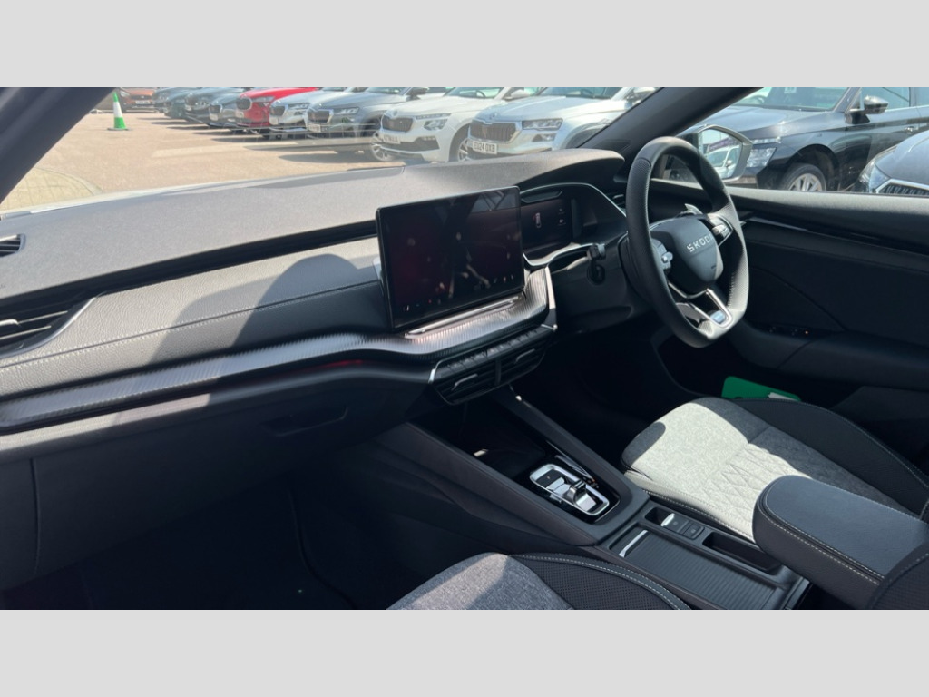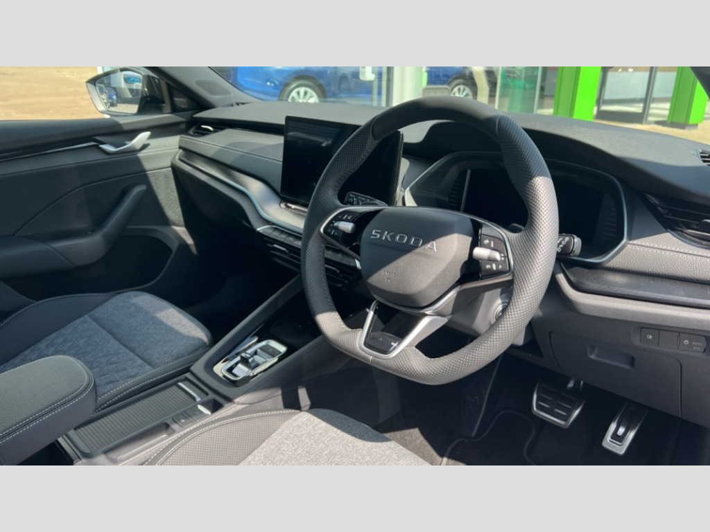 Skoda Octavia 2.0 TDI 150 Sportline 5dr DSG 1x USB Typc C port in rear view mirror, 4x USB Type C ports - 2x in front centre console and 2x in rear (45W), Drive mode selection, Driver fatigue sensor, eCall emergency system, Front assist system, Progressive dynamic steering, Traffic sign recognition, Turn Assist, Virtual Cockpit - 10.25" digital display, Voice control system, Wireless charging (15W) with cooling function, Wireless SmartLink for Apple CarPlay and Android Auto, Sports suspension with 15mm lower, 13" touchscreen display with navigation, DAB Digital radio, Aero front windscreen wipers with intermittent function, Auto dimming rear view mirror, Body colour bumpers, Body colour door handles, Chrome strip in lower front bumper, Electric front and rear windows, Exterior gloss black sports styling including front grille, window surrounds, door mirrors and badging, Gloss black diffuser, Gloss black roof rails, Gloss black spoiler, Heated rear windscreen, High beam control, High level third brake light, Ice scraper in fuel cap, LED daytime running lights, Logo projection in front doors, Rain and light sensors, Rear fog light on one side and reversing lights on both sides, Rear privacy glass, Rear side wing doors, Rear window wiper, 12 volt socket in boot, 3 rear headrests, 3 seat bench in 2nd row, 4 foldable roof handles, Aluminium pedals, Electric auxiliary air heater, Front head restraints, Front sport seats, Heated front seats, Illuminated glovebox, Interior door handles in dark chrome, Jumbo Box storage, Luggage compartment lighting x2 lights, Mechanical rear seat release from boot, Single front passenger seat, Steering wheel in black leather with black stitching, Storage compartments in left and right of boot, Sun visors with mirrors, Sunglasses storage, Three spoke leather sports multifunction steering wheel with paddles, Ticket holder, Umbrella in door panel, Unsplit rear bench seat, split folding backrest with centre armrest with cupholder, SportLine Design Selection pack - Octavia, 3x3 point rear seat belts, Alarm with interior monitoring, tilt sensor and back up horn, Curtain airbags and front side airbags, Driver and front passenger airbags, Drivers knee airbag, Electronic parking brake, ESC including ABS, EBV, MSR, ASR, EDS, HBA, DSR, Front central airbag, Hill hold assist, ISOFIX on front passenger seat and outer rear seats, Passenger airbag deactivate switch, Three point seat belts in front and rear, Two tone horn, Tyre pressure monitor, Visual and acoustic seat belt reminder, Warning reflectors in front door, Anti-theft wheel bolts, Keyless entry and start/stop, Remote central locking, Gloss black air vent surrounds
