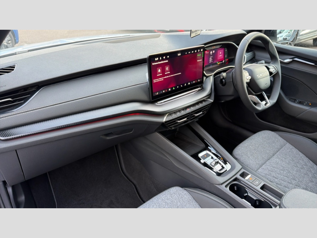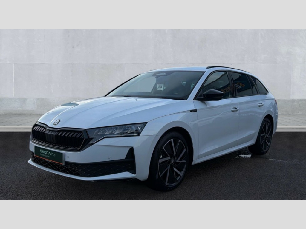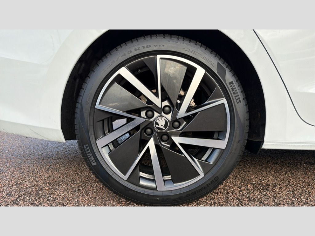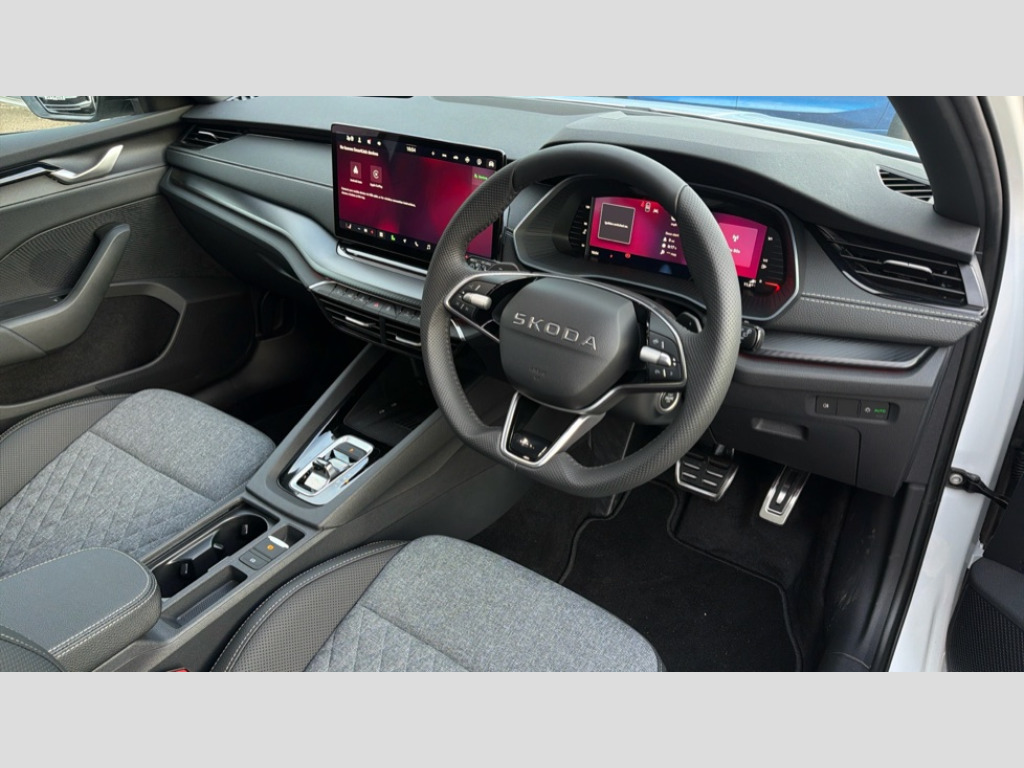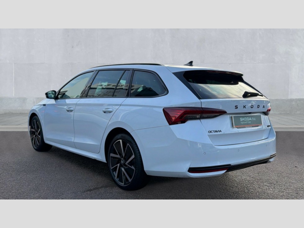 Skoda Octavia 1.5 TSI 150 e-TEC Sportline 5dr DSG 1x USB Typc C port in rear view mirror, 4x USB Type C ports - 2x in front centre console and 2x in rear (45W), Drive mode selection, Driver fatigue sensor, eCall emergency system, Front assist system, Progressive dynamic steering, Traffic sign recognition, Turn Assist, Virtual Cockpit - 10.25" digital display, Voice control system, Wireless charging (15W) with cooling function, Wireless SmartLink for Apple CarPlay and Android Auto, Sports suspension with 15mm lower, 13" touchscreen display with navigation, DAB Digital radio, Aero front windscreen wipers with intermittent function, Auto dimming rear view mirror, Body colour bumpers, Body colour door handles, Chrome strip in lower front bumper, Electric front and rear windows, Exterior gloss black sports styling including front grille, window surrounds, door mirrors and badging, Gloss black diffuser, Gloss black roof rails, Gloss black spoiler, Heated rear windscreen, High beam control, High level third brake light, Ice scraper in fuel cap, LED daytime running lights, Logo projection in front doors, Rain and light sensors, Rear fog light on one side and reversing lights on both sides, Rear privacy glass, Rear side wing doors, Rear window wiper, 12 volt socket in boot, 3 rear headrests, 3 seat bench in 2nd row, 4 foldable roof handles, Aluminium pedals, Front head restraints, Front sport seats, Heated front seats, Illuminated glovebox, Interior door handles in dark chrome, Jumbo Box storage, Luggage compartment lighting x2 lights, Mechanical rear seat release from boot, Single front passenger seat, Steering wheel in black leather with black stitching, Storage compartments in left and right of boot, Sun visors with mirrors, Sunglasses storage, Three spoke leather sports multifunction steering wheel with paddles, Ticket holder, Umbrella in door panel, Unsplit rear bench seat, split folding backrest with centre armrest with cupholder, SportLine Design Selection pack - Octavia, 3x3 point rear seat belts, Alarm with interior monitoring, tilt sensor and back up horn, Curtain airbags and front side airbags, Driver and front passenger airbags, Drivers knee airbag, Electronic parking brake, ESC including ABS, EBV, MSR, ASR, EDS, HBA, DSR, Front central airbag, Hill hold assist, ISOFIX on front passenger seat and outer rear seats, Passenger airbag deactivate switch, Three point seat belts in front and rear, Two tone horn, Tyre pressure monitor, Visual and acoustic seat belt reminder, Warning reflectors in front door, Anti-theft wheel bolts, Keyless entry and start/stop, Remote central locking, Gloss black air vent surrounds