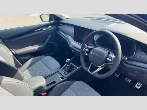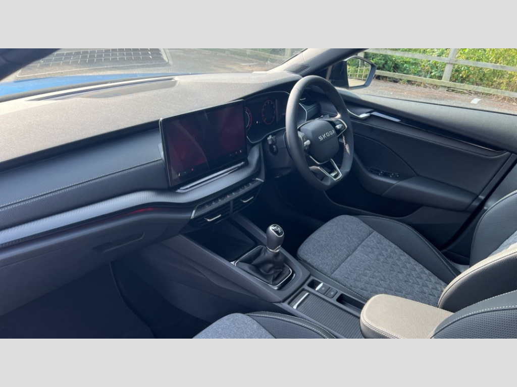 Skoda Octavia 1.5 TSI 150 Sportline 5dr 1x USB Typc C port in rear view mirror, 4x USB Type C ports - 2x in front centre console and 2x in rear (45W), Drive mode selection, Driver fatigue sensor, eCall emergency system, Front and rear parking sensors with manoeuvre assist, Front assist system, Progressive dynamic steering, Traffic sign recognition, Turn Assist, Virtual Cockpit - 10.25" digital display, Voice control system, Wireless charging (15W) with cooling function, Wireless SmartLink for Apple CarPlay and Android Auto, Sports suspension with 15mm lower, 13" touchscreen display with navigation, DAB Digital radio, Aero front windscreen wipers with intermittent function, Auto dimming rear view mirror, Body colour bumpers, Body colour door handles, Electric front and rear windows, Exterior gloss black sports styling including front grille, window surrounds, door mirrors and badging, Gloss black diffuser, Gloss black roof rails, Gloss black spoiler, Heated rear windscreen, High beam control, High level third brake light, Ice scraper in fuel cap, LED daytime running lights, Logo projection in front doors, Rain and light sensors, Rear fog light on one side, Rear privacy glass, Rear side wing doors, Rear window wiper, 12 volt socket in boot, 3 rear headrests, 3 seat bench in 2nd row, 4 foldable roof handles, Aluminium pedals, Front head restraints, Front sport seats, Heated front seats, Illuminated glovebox, Interior door handles in dark chrome, Jumbo Box storage, Luggage compartment lighting x2 lights, Mechanical rear seat release from boot, Single front passenger seat, Steering wheel in black leather with black stitching, Storage compartments in left and right of boot, Sun visors with mirrors, Sunglasses storage, Ticket holder, Umbrella in door panel, Unsplit rear bench seat, split folding backrest with centre armrest with cupholder, SportLine Design Selection pack - Octavia, 3x3 point rear seat belts, Alarm with interior monitoring, tilt sensor and back up horn, Curtain airbags and front side airbags, Driver and front passenger airbags, Drivers knee airbag, Electronic parking brake, ESC including ABS, EBV, MSR, ASR, EDS, HBA, DSR, Front central airbag, Hill hold assist, ISOFIX on front passenger seat and outer rear seats, Passenger airbag deactivate switch, Three point seat belts in front and rear, Two tone horn, Tyre pressure monitor, Visual and acoustic seat belt reminder, Warning reflectors in front door, Anti-theft wheel bolts, Keyless start/stop, Remote central locking, Gloss black air vent surrounds