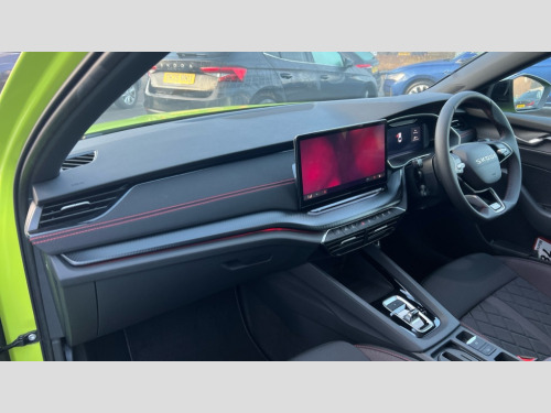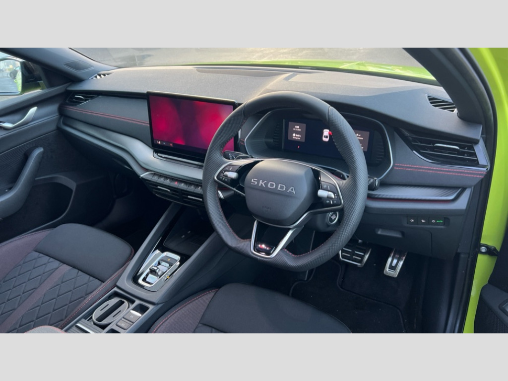 Skoda Octavia 2.0 TSI vRS 5dr DSG 1x USB Typc C port in rear view mirror, 4x USB Type C ports - 2x in front centre console and 2x in rear (45W), Drive mode selection, Driver fatigue sensor, eCall emergency system, Electronic engine sound, Front assist system, Progressive dynamic steering, Traffic sign recognition, Turn Assist, Virtual Cockpit - 10.25" digital display, Voice control system, Wireless charging (15W) with cooling function, Wireless SmartLink for Apple CarPlay and Android Auto, Electronically controlled limited slip differential, vRS suspension, 13" touchscreen display with navigation, DAB Digital radio, Aero front windscreen wipers with intermittent function, Auto dimming rear view mirror, Black sport exhaust pipes, Body colour bumpers, Body colour door handles, Bumpers with rear red reflector strip, Electric front and rear windows, Exterior gloss black sports styling including front grille, window surrounds, door mirrors and badging, Gloss black diffuser, Gloss black spoiler, Heated rear windscreen, High beam control, High level third brake light, Ice scraper in fuel cap, LED daytime running lights, Logo projection in front doors, Rain and light sensors, Rear fog light on one side and reversing lights on both sides, Rear privacy glass, Rear side wing doors, Unique vRS bumpers and exterior styling, 12 volt socket in boot, 2x umbrella in door, 3 rear headrests, 3 seat bench in 2nd row, 4 foldable roof handles, Aluminium pedals, Boot net programme, Front head restraints, Front sport seats, Heated front seats, Illuminated glovebox, Interior door handles in dark chrome, Jumbo Box storage, Luggage compartment lighting x2 lights, Mechanical rear seat release from boot, Parcel shelf - folding, Single front passenger seat, Steering wheel in black leather with black stitching, Storage compartment under passenger seat, Storage compartments in left and right of boot, Sun visors with mirrors, Sunglasses storage, Three spoke leather sports multifunction steering wheel with paddles, Ticket holder, Unsplit rear bench seat, split folding backrest with centre armrest with cupholder, Waste bin in door panel, Comfort package - Octavia, Family package - Octavia, Light and view package plus - Octavia, vRS Design Selection pack - Octavia, 3x3 point rear seat belts, Alarm with interior monitoring, tilt sensor and back up horn, Curtain airbags and front side airbags, Driver and front passenger airbags, Drivers knee airbag, Electronic parking brake, ESC including ABS, EBV, MSR, ASR, EDS, HBA, DSR, Front central airbag, Hill hold assist, ISOFIX on front passenger seat and outer rear seats, Passenger airbag deactivate switch, Red brake calipers, Three point seat belts in front and rear, Two tone horn, Tyre pressure monitor, Visual and acoustic seat belt reminder, Warning reflectors in front door, Anti-theft wheel bolts, Keyless entry and start/stop, Remote central locking, Gloss black air vent surrounds, 19" Elias anthracite alloy wheels