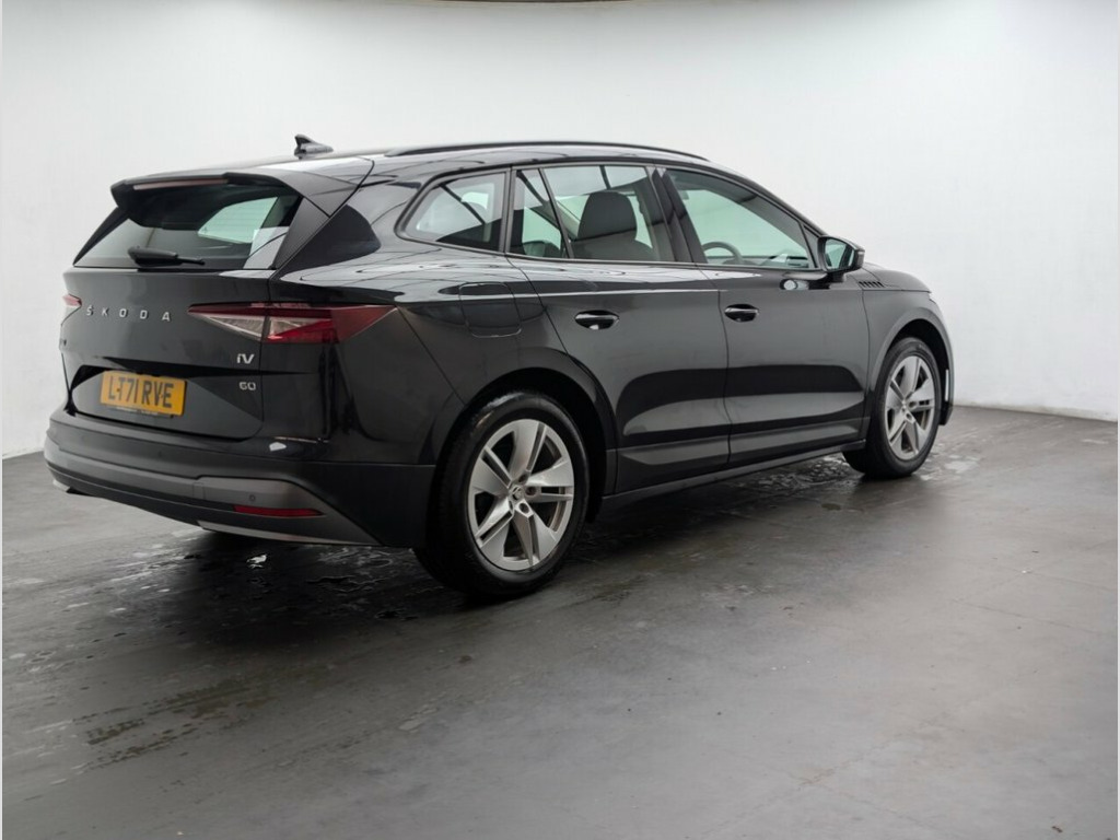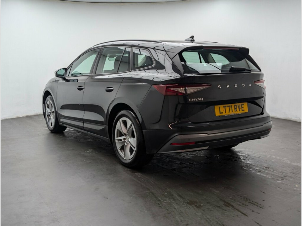 19" alloys, Navigation, Parking camera, Cruise control and Bluetooth. This 2021 Skoda Enyaq 60 is a fantastic example, having been owned by just one person since new. As an electric vehicle, it offers a smooth and quiet driving experience, powered by a 62 kWh battery that provides a maximum range of 256 miles when new. Charging at home with a 7kW charger takes approximately 9 hours and 30 minutes for a full charge, while rapid public charging can take you from empty to 80% in just 58 minutes. This Enyaq comes equipped with essential features including basic LED headlights with daytime running lights, Bluetooth connectivity, Skoda Connect iV Remote Services for convenient control, and a light and rain sensor with an auto-dimming rear view mirror. For added ease, it also includes rear parking sensors. The MOT is valid until December 2026, offering peace of mind. The Enyaq 60 stands out with its generous boot space, making it a practical choice for families or those who need ample room for luggage or shopping. The inclusion of rear parking sensors is a notable advantage, simplifying manoeuvring in tight spaces and setting it apart from vehicles that may not offer this convenience. Its electric powertrain and impressive range mean you can enjoy longer journeys with fewer stops for charging, a clear benefit over many petrol or diesel alternatives. This well maintained, single owner vehicle presents a compelling option for anyone looking to embrace electric motoring with a re 12V Socket in Boot, 13in Touchscreen Display, 19in Alloy Wheels - Proteus, 2-Spoke Leather Multifunction Steering W, 50 KW DC Charging, ABS - Anti-Lock Braking System, Air Conditioning - Climate Control Dual , Airbag - Front Side with Curtain Airbags, Alarm with Interior Monitoring - Back Up, Anti-Theft Locking Wheel Bolts, Basic LED Headlights with LED Daytime Ru, Black Roof Rails, Bluetooth, Care Connect - eCall, Child Safety Lock - Manual, Cruise Control with Speed Limiter, DAB Radio, Door Mirrors - Heated - Electronically A, Driver and Front Passenger Airbags with , Front and Rear Electric Windows, Front Assistant including Automatic Brak, Gesture Control, Height Adjustable Driver and Fr