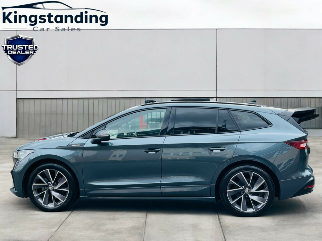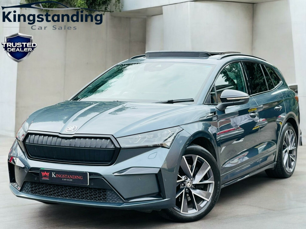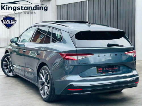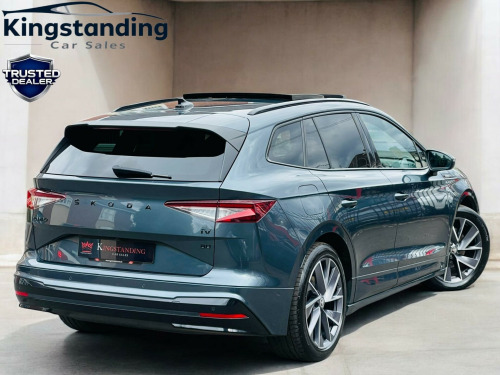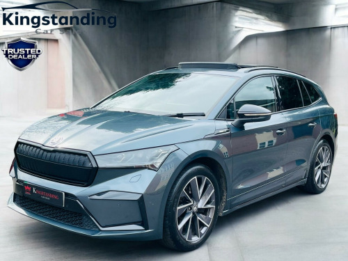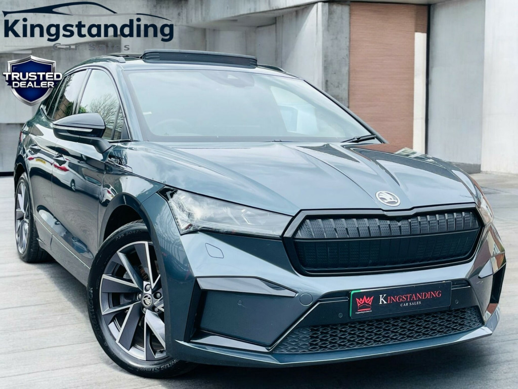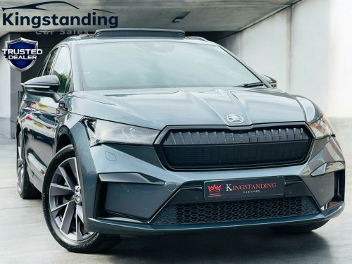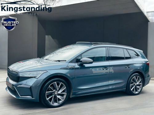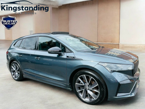 WELCOME TO KINGSTANDING CAR SALES HERE WE HAVE A GREAT LOOKING SKODA ENYAQ SPORTLINEONLY 1 FORMER KEEPER FROM NEWWARRANTED ON THE MILESBIG SPECPANROOFELECTRIC SEATSSATNAVREVERSE CAMERA3D CAMERASZENON LIGHTSAPPLE PLAYVERY HIGH SPECDRIVES FAULTLESSPREVIOUS CAT-NCOMES WITH A PARTS AND LABOUR WARRANTY FOR A PEACE OF MINDWE TAKE ANY CAR IN PART EXCHANGEVIEWING BY APPOINTMENTS ONLYANY INSPECTION IS WELCOMEOVER 50CARS TO CHOOSE FROM((REG IS LA71OJZ)) 5 kw dc charging, 12v socket in boot, 13in touchscreen display, 20in alloy wheels - vega anthracite metallic, abs - anti-lock braking system, additional body cover on wheel arch and side sill, airbag - front side with curtain airbags and central interaction airbag, alarm with interior monitoring - back up horn and towing protection, aluminium pedals, anti-theft locking wheel bolts, black decorative trims, black roof rails, bluetooth, care connect - ecall, child safety lock - manual, climate package, convenience package, cruise control with speed limiter, dab radio, daytime running lights - led, door mirrors - heated - electronically adjustable - folding and auto dimming with boarding spots and welcome logo, drive sport package, driver and front passenger airbags with front passenger airbag deactivation, dynamic headlight range control with cornering light function, front assistant including automatic braking function, front and rear electric windows, gesture control, height adjustable driver and front passenger seat - manual, isofix child seat fittings on outer rear seats with top tether, isofix child seat preparation - front passenger, interior package - sportline, led ambient lighting, lane assist, light assistant, light and rain sensor with auto-dimming rear view mirror, light and view package, luggage compartment - boot lighting, manual lumbar support for front seats, mode 3 cable - 32a - 6 metres, parking package, parking sensors - rear, power steering, radiator grille - black gloss, rear spoiler, rear window wiper with washer system and intermittent control, remote central locking with safe function, skoda lettering on tailgate in black, satellite navigation system, seatbelt reminder - visual and acoustic, shock absorption in front and rear, side and rear windows in heat insulating glass, single tone horn, skoda connect - infotainment online - 3 years, skoda connect - iv remote services, sliding boot cover, speakers x8, sport bumpers, sports seats - front, standard electronic engine sound, suspension - sports, three point seatbelt in front with pretensioner - lap belt pretensioner and height adjustment, three rear head restraints, tyre pressure monitor, usb-c ports, umbrella, virtual cockpit, voice control, washer fluid level indicator, wifi hotspot for up to 8 devices, windscreen in heat insulating glass, wireless smartlink