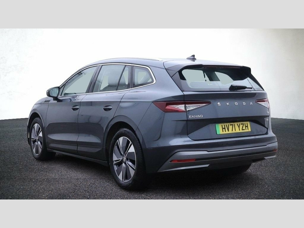 This 2021 Skoda Enyaq electric vehicle boasts a clear vehicle history check and has had only one owner. It features a substantial 82 kWh battery, offering a maximum range of 331 miles when new. For convenience, it includes rear parking sensors, basic LED headlights with daytime running lights, and Bluetooth connectivity. The Enyaq also comes equipped with Wireless Smartlink, compatible with Android Auto, and Skoda Connect iV Remote Services, allowing for features like remote air conditioning control. The Enyaq 80 provides an impressive electric driving experience, with a full charge at home taking approximately 13 hours using a 7kW charger. Public charging is also efficient, reaching 80% capacity from empty in just 1 hour and 14 minutes. This model stands out with its generous boot space, offering ample room for luggage or shopping. With a long MOT, this Enyaq presents a well maintained and practical electric car option. 12V Socket in Boot, 13in Touchscreen Display, 50 KW DC Charging, Bluetooth, Care Connect - eCall, DAB Radio, Satellite Navigation System, Speakers x8, USB-C Ports, Wifi Hotspot for Up To 8 Devices, Wireless Smartlink, 19in Alloy Wheels - Regulus Anthracite, Door Mirrors - Heated - Electronically A, Front and Rear Electric Windows, Rear Spoiler, Side and Rear Windows in Heat Insulating, Windscreen in Heat Insulating Glass, 2-Spoke Leather Heated Multi-Function St, Air Conditioning - Climate Control Dual , Chrome Pack, Drive Package, Gesture Control, Height Adjustable Driver and Front Passe, Interior Package - Loft, Keyless Start-Stop, LED Ambient Lighting, Light and Rain Sensor with Auto-Dimm