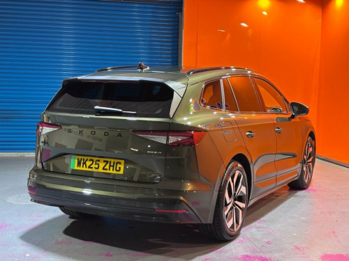 This 2025 Skoda Enyaq 85x SportLine is a remarkable example, boasting an incredibly low mileage of just 818 miles, making it practically new. As a single owner vehicle, it has been meticulously cared for. This electric SUV features a substantial 82 kWh battery, offering a maximum range of 334 miles from new, perfect for both daily commutes and longer journeys. Charging at home on a 7kW charger takes approximately 12 hours, while rapid public charging can replenish the battery from empty to 80% in as little as 28 minutes. The Enyaq 85x SportLine comes equipped with a suite of advanced features, including front and rear parking sensors with parking assistance, heated front seats for added comfort, and a sophisticated Advanced Package. This package enhances the driving experience with a branded sound system, a head up display, LED headlights, a 360 degree camera for effortless parking, and memory seats. The performance of this Skoda Enyaq is equally impressive, with an acceleration of 0-60mph achieved in a swift 6.5 seconds, demonstrating its dynamic capabilities. The 85x SportLine trim signifies a sportier feel, further enhanced by the 3 spoke leather heated multi function steering wheel complete with paddles for selecting recuperation levels. This vehicle also offers a generous boot space, providing ample room for luggage or shopping. The Four Wheel Drive system ensures confident handling in various conditions, while the Bluetooth connectivity keeps you connected on the go. T 12V Socket in Boot, 13in Touchscreen Display, 20in Alloy Wheels - Vega Black, 3-Spoke Leather Heated Sports Multi-Func, 5in Digital Cockpit, Advanced Package, Airbag - Front Side with Curtain Airbags, All Wheel Drive, Aluminium Pedals, Anti-Theft Alarm System - Interior Monit, Anti-Theft Locking Wheel Bolts, Blind Spot Detection, Bluetooth, Boot Lighting, Child Safety Lock - Electric, Crew Protect Assist, DAB Radio, Disc Brakes - Front, Door Mirrors - Heated - Electronically A, Door Sills in Body Colour, Drive Mode Select, Driver Alert, Driver and Front Passenger Airbags with , Drum Brakes - Rear, Electrically Operated Tailgate with Kick, Emergency Steering Support with Turn Ass, Extended In