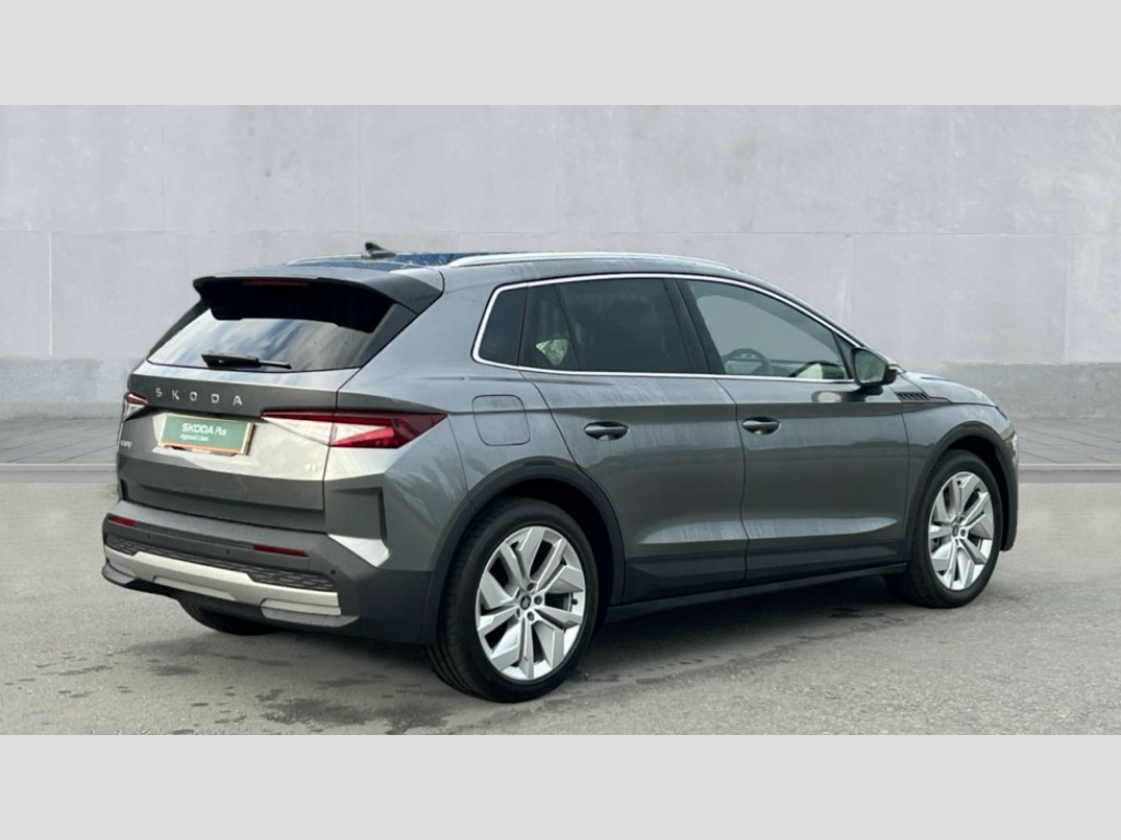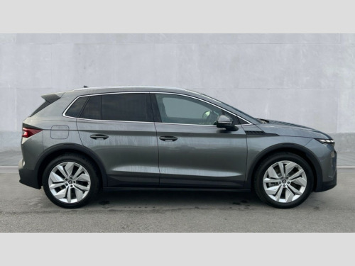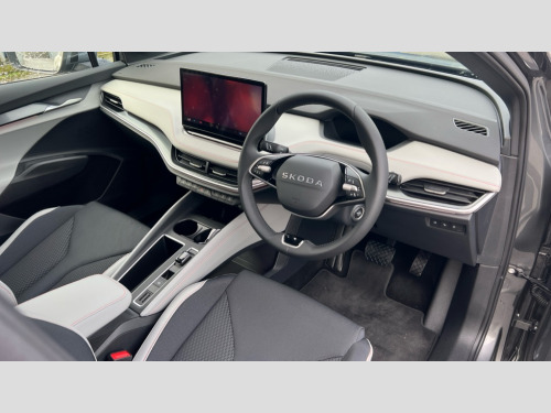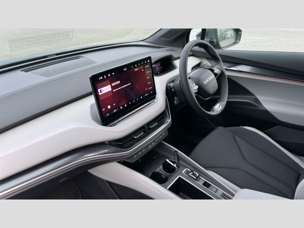 Skoda Elroq 210kW 85 Edition 82kWh 5dr Auto 13" touchscreen display, 15W wireless charging with cooling function, Blind spot detection, Bluetooth, Digital cockpit, Drive mode select, Driver alert control, eCall emergency system, Electronic engine sound, Emergency steering support with turn assist, Front parking sensors, Gesture control, Manual tailgate, Power assist steering, Predictive adaptive cruise control with traffic jam assist, Rear parking sensors, Rear view camera, Satellite navigation system, Skoda Connect iV remote services with charging, air conditioning and smart schedules, Speed assist, Traffic sign recognition, Travel assist plus - emergency assist, lane assist plus with narrow lane assist, urban evasive steering support, Voice control, Washer fluid level indicator, Wi-Fi hotspot, Wireless smartlink, 175 kW DC charging, 6m mode 3 cable (32A), 45W USB-C ports (charging + data) front and rear, 8 Speakers, DAB Digital radio, Auto dimming door mirrors, Electric adjustable heated folding door mirrors with boarding spots and welcome logo, Frameless auto dimming rear view mirror, Heat insulating glass windscreen, LED 3rd brake light, LED headlights with LED daytime running lights and headlight range control, Light and rain sensors, Light assistant including coming home and leaving function, Manually operated boot, Preparation for tow bar, Privacy glass and acoustic side windows, Rear LED lights, Rear side wing doors, Rear spoiler, Rear window wiper with washer system and intermittent control, Side and rear windows in heat insulating glass, Unique dark chrome roof rails, Unique dark chrome window trim, 12V socket in boot, 1x umbrella, 2-spoke leather heated multi-function steering wheel with paddles for recuperation level selection, 3 rear headrests, 3 seat bench in 2nd row, Boot lighting, Extended interior noise suspension, Folding boot cover, Front head restraints, Heated front seats, Isofix child seat fittings in outer rear seats with top tether, Isofix child seat preparation for front passenger seat, LED ambient lighting, Manual lumbar support for front seats, Manually adjustable front seats, Single front passenger seat, Lodge design pack - Elroq, 3 point rear seatbelts, Crew protect assist, Driver and front passenger airbag with passenger airbag deactivation, Electric child locks, ESC (incl. ABS+MSR+ASR+EDS+HBA+DSR+RBS+MKB), Front assist with braking reaction to vehicles, pedestrians and cyclists, Front disc brakes, Front side airbags with curtain airbags and central interaction airbag, Rear drum brakes, Three point seatbelt in front, with pretensioner, lap belt pretensioner and height adjustment, Two tone horn, Tyre pressure monitoring system, Visual and acoustic seat belt reminder, Anti theft alarm system with interior monitoring, backup horn and towing protection, Central locking system with SAFE system, Keyless entry and start/stop system advanced with walk away locking, Anti-theft wheel bolts protection, Tyre repair kit
