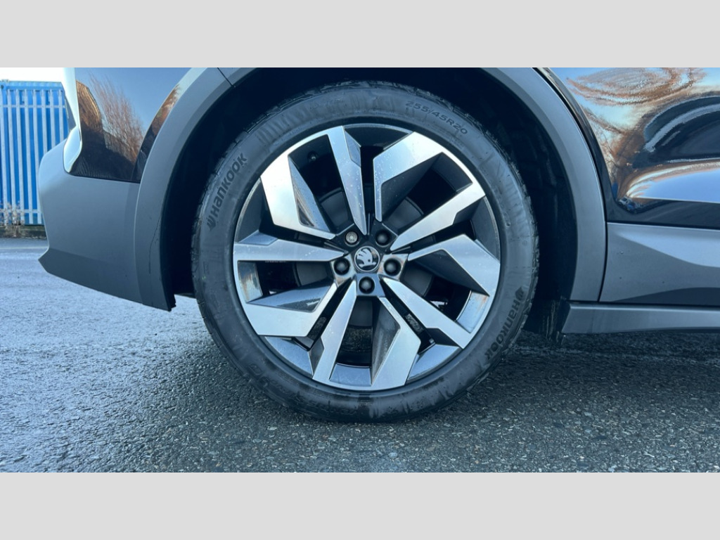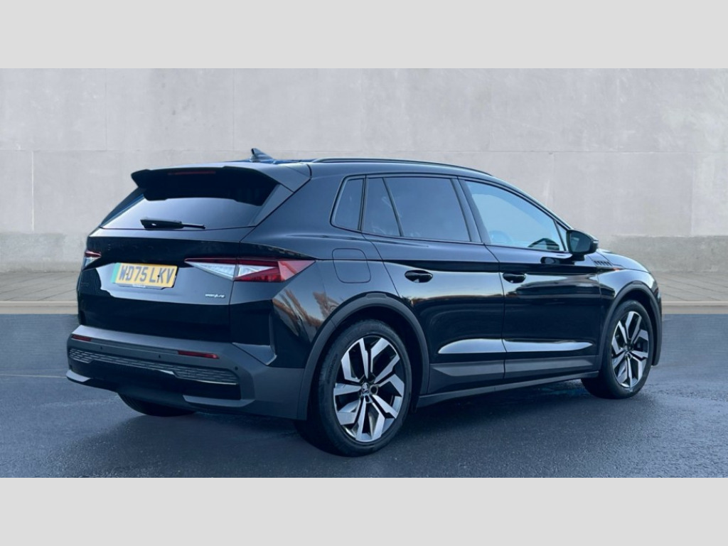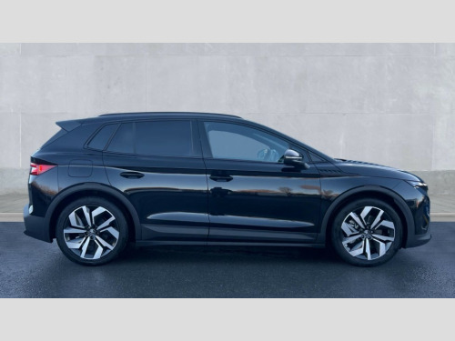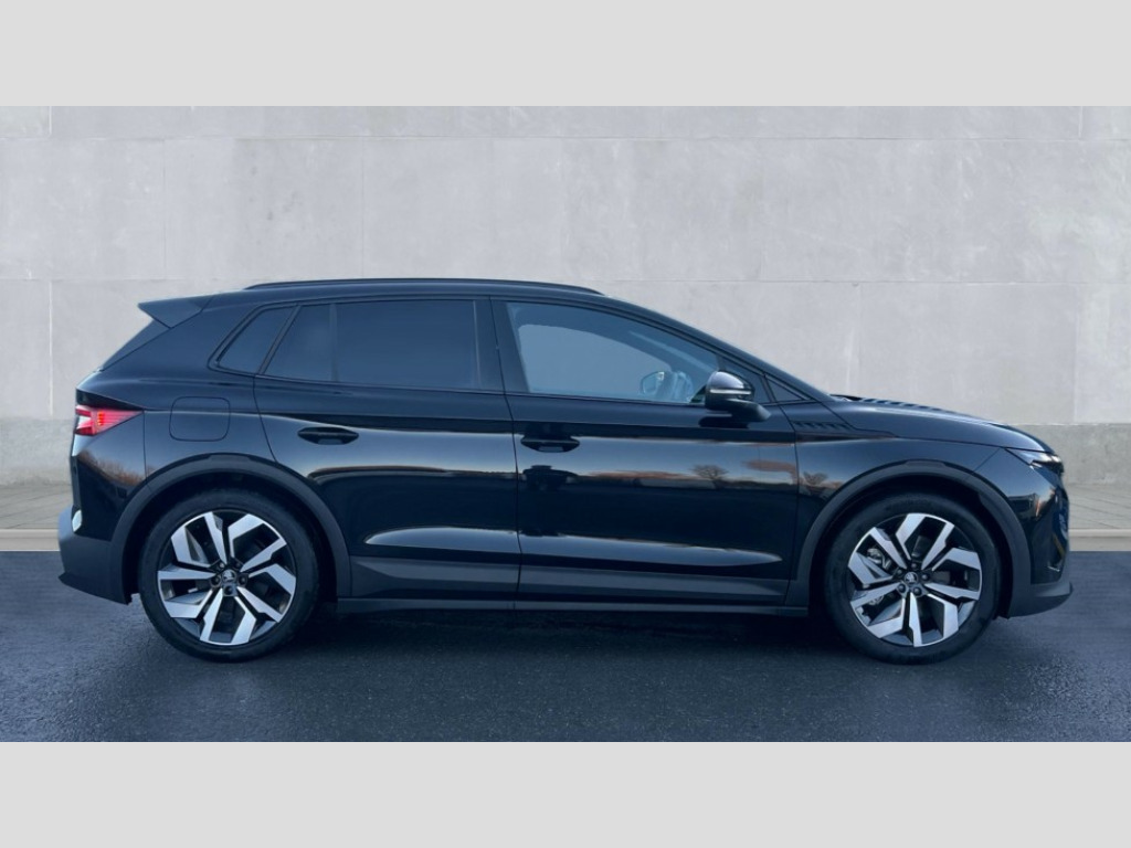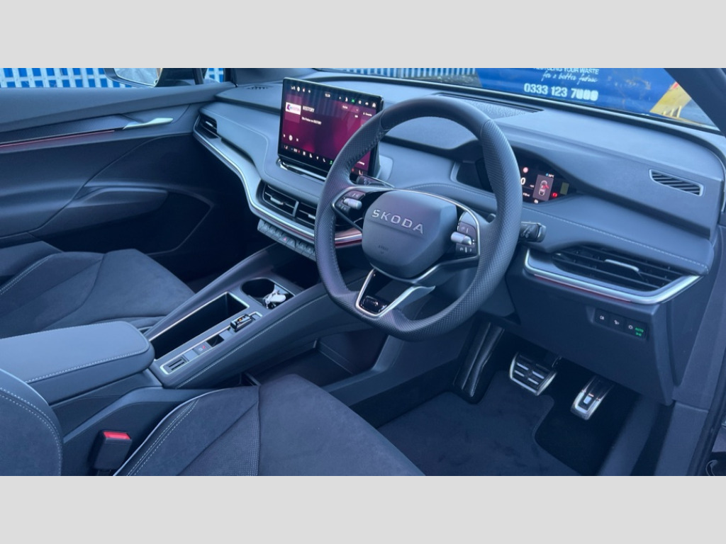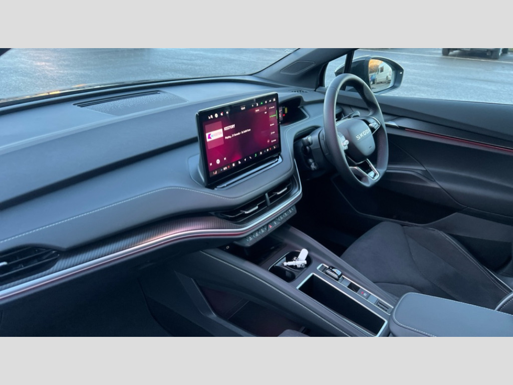 Skoda Elroq 210kW 85 SportLine 82kWh 5dr Auto 13" touchscreen display, 15W wireless charging with cooling function, Blind spot detection, Bluetooth, Digital cockpit, Drive mode select, Driver alert control, eCall emergency system, Electronic engine sound, Emergency steering support with turn assist, Front parking sensors, Gesture control, Predictive adaptive cruise control with traffic jam assist, Progressive dynamic steering, Rear parking sensors, Rear view camera, Satellite navigation system, Skoda Connect iV remote services with charging, air conditioning and smart schedules, Speed assist, Traffic sign recognition, Travel assist plus - emergency assist, lane assist plus with narrow lane assist, urban evasive steering support, Voice control, Washer fluid level indicator, Wi-Fi hotspot, Wireless smartlink, 175 kW DC charging, 6m mode 3 cable (32A), Sports suspension, 45W USB-C ports (charging + data) front and rear, 8 Speakers, DAB Digital radio, Black door mirrors heated, electrically adjustable, folding and auto dimming with boarding spots and welcome logo, Frameless auto dimming rear view mirror, Gloss black roof rails, Gloss black tailgate lettering, Gloss black window surround, Heat insulating glass windscreen, LED 3rd brake light, LED daytime running lights, Light and rain sensors, Light assistant including coming home and leaving function, Manually operated boot, Preparation for tow bar, Privacy glass and acoustic side windows, Rear side wing doors, Rear spoiler, Rear window wiper with washer system and intermittent control, Side and rear windows in heat insulating glass, Sportline bumpers, 12V socket in boot, 1x umbrella, 3 rear headrests, 3 seat bench in 2nd row, 3 spoke leather heated sports multifunction steering wheel with paddles for recuperation level selection, Aluminium pedals, Boot lighting, Extended interior noise suspension, Folding boot cover, Front sport seats, Heated front seats, Integrated head restraints, Isofix child seat fittings in outer rear seats with top tether, Isofix child seat preparation for front passenger seat, LED ambient lighting, Manual lumbar support for front seats, Manually adjustable front seats, Single front passenger seat, SportLine design pack - Elroq, 3 point rear seatbelts, Crew protect assist, Driver and front passenger airbag with passenger airbag deactivation, Electric child locks, ESC (incl. ABS+MSR+ASR+EDS+HBA+DSR+RBS+MKB), Front assist with braking reaction to vehicles, pedestrians and cyclists, Front disc brakes, Front side airbags with curtain airbags and central interaction airbag, Rear drum brakes, Three point seatbelt in front, with pretensioner, lap belt pretensioner and height adjustment, Two tone horn, Tyre pressure monitoring system, Visual and acoustic seat belt reminder, Anti theft alarm system with interior monitoring, backup horn and towing protection, Central locking system with SAFE system, Keyless entry and start/stop system advanced with walk away locking, Anti-theft wheel bolts protection, Tyre repair kit