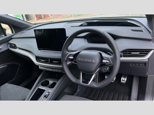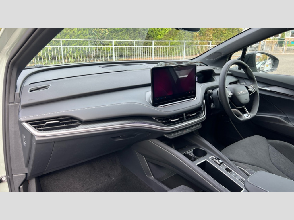 Skoda Elroq 210kW 85 SportLine 82kWh 5dr Auto 13" touchscreen display, 15W wireless charging with cooling function, Blind spot detection, Bluetooth, Digital cockpit, Drive mode select, Driver alert control, eCall emergency system, Electronic engine sound, Emergency steering support with turn assist, Front parking sensors, Gesture control, Predictive adaptive cruise control with traffic jam assist, Progressive dynamic steering, Rear parking sensors, Rear view camera, Satellite navigation system, Skoda Connect iV remote services with charging, air conditioning and smart schedules, Speed assist, Traffic sign recognition, Travel assist plus - emergency assist, lane assist plus with narrow lane assist, urban evasive steering support, Voice control, Washer fluid level indicator, Wi-Fi hotspot, Wireless smartlink, 175 kW DC charging, 6m mode 3 cable (32A), Sports suspension, 45W USB-C ports (charging + data) front and rear, 8 Speakers, DAB Digital radio, Black door mirrors heated, electrically adjustable, folding and auto dimming with boarding spots and welcome logo, Frameless auto dimming rear view mirror, Gloss black roof rails, Gloss black tailgate lettering, Gloss black window surround, Heat insulating glass windscreen, LED 3rd brake light, LED daytime running lights, Light and rain sensors, Light assistant including coming home and leaving function, Manually operated boot, Preparation for tow bar, Privacy glass and acoustic side windows, Rear side wing doors, Rear spoiler, Rear window wiper with washer system and intermittent control, Side and rear windows in heat insulating glass, Sportline bumpers, 12V socket in boot, 1x umbrella, 3 rear headrests, 3 seat bench in 2nd row, 3 spoke leather heated sports multifunction steering wheel with paddles for recuperation level selection, Aluminium pedals, Boot lighting, Extended interior noise suspension, Folding boot cover, Front sport seats, Heated front seats, Integrated head restraints, Isofix child seat fittings in outer rear seats with top tether, Isofix child seat preparation for front passenger seat, LED ambient lighting, Manual lumbar support for front seats, Manually adjustable front seats, Single front passenger seat, Plus package - Elroq, SportLine design pack - Elroq, 3 point rear seatbelts, Crew protect assist, Driver and front passenger airbag with passenger airbag deactivation, Electric child locks, ESC (incl. ABS+MSR+ASR+EDS+HBA+DSR+RBS+MKB), Front assist with braking reaction to vehicles, pedestrians and cyclists, Front disc brakes, Front side airbags with curtain airbags and central interaction airbag, Rear drum brakes, Three point seatbelt in front, with pretensioner, lap belt pretensioner and height adjustment, Two tone horn, Tyre pressure monitoring system, Visual and acoustic seat belt reminder, Anti theft alarm system with interior monitoring, backup horn and towing protection, Central locking system with SAFE system, Keyless entry and start/stop system advanced with walk away locking, Anti-theft wheel bolts protection, Tyre repair kit