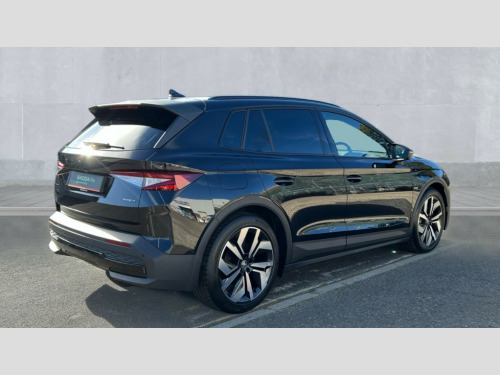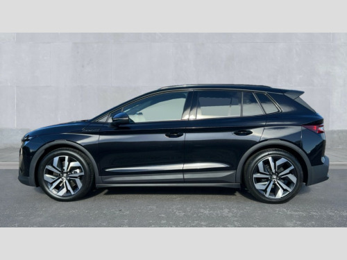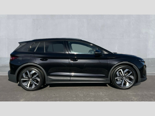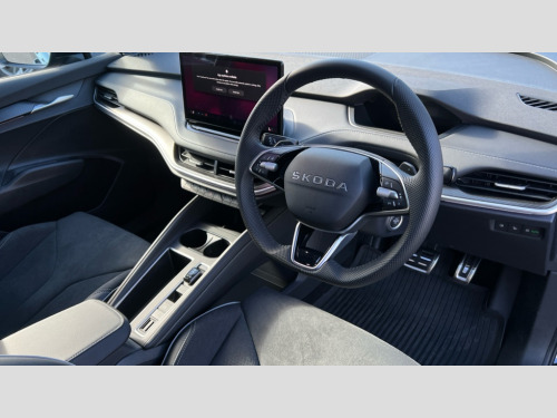 Skoda Elroq 210kW 85 SportLine 82kWh 5dr Auto 13" touchscreen display, 15W wireless charging with cooling function, Blind spot detection, Bluetooth, Digital cockpit, Drive mode select, Driver alert control, eCall emergency system, Electronic engine sound, Emergency steering support with turn assist, Front parking sensors, Gesture control, Predictive adaptive cruise control with traffic jam assist, Progressive dynamic steering, Rear parking sensors, Rear view camera, Satellite navigation system, Skoda Connect iV remote services with charging, air conditioning and smart schedules, Speed assist, Traffic sign recognition, Travel assist plus - emergency assist, lane assist plus with narrow lane assist, urban evasive steering support, Voice control, Washer fluid level indicator, Wi-Fi hotspot, Wireless smartlink, 175 kW DC charging, 6m mode 3 cable (32A), Sports suspension, 45W USB-C ports (charging + data) front and rear, 8 Speakers, DAB Digital radio, Black door mirrors heated, electrically adjustable, folding and auto dimming with boarding spots and welcome logo, Frameless auto dimming rear view mirror, Gloss black roof rails, Gloss black tailgate lettering, Gloss black window surround, Heat insulating glass windscreen, LED 3rd brake light, LED daytime running lights, Light and rain sensors, Light assistant including coming home and leaving function, Manually operated boot, Preparation for tow bar, Privacy glass and acoustic side windows, Rear side wing doors, Rear spoiler, Rear window wiper with washer system and intermittent control, Side and rear windows in heat insulating glass, Sportline bumpers, 12V socket in boot, 1x umbrella, 3 rear headrests, 3 seat bench in 2nd row, 3 spoke leather heated sports multifunction steering wheel with paddles for recuperation level selection, Aluminium pedals, Boot lighting, Extended interior noise suspension, Folding boot cover, Front sport seats, Heated front seats, Integrated head restraints, Isofix child seat fittings in outer rear seats with top tether, Isofix child seat preparation for front passenger seat, LED ambient lighting, Manual lumbar support for front seats, Manually adjustable front seats, Single front passenger seat, Plus package - Elroq, SportLine design pack - Elroq, 3 point rear seatbelts, Crew protect assist, Driver and front passenger airbag with passenger airbag deactivation, Electric child locks, ESC (incl. ABS+MSR+ASR+EDS+HBA+DSR+RBS+MKB), Front assist with braking reaction to vehicles, pedestrians and cyclists, Front disc brakes, Front side airbags with curtain airbags and central interaction airbag, Rear drum brakes, Three point seatbelt in front, with pretensioner, lap belt pretensioner and height adjustment, Two tone horn, Tyre pressure monitoring system, Visual and acoustic seat belt reminder, Anti theft alarm system with interior monitoring, backup horn and towing protection, Central locking system with SAFE system, Keyless entry and start/stop system advanced with walk away locking, Anti-theft wheel bolts protection, Tyre repair kit