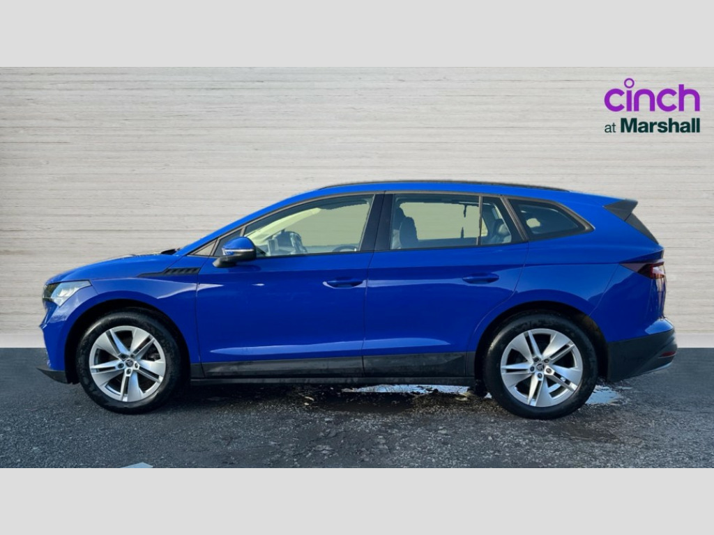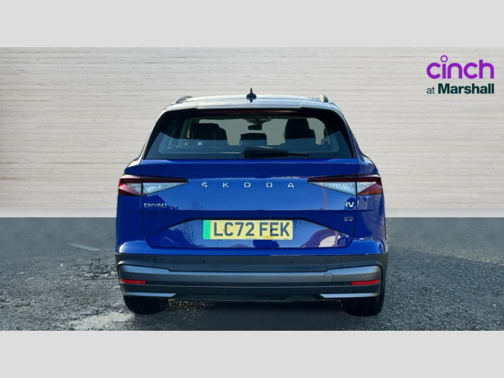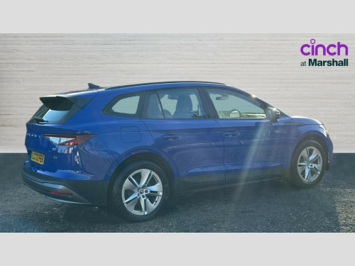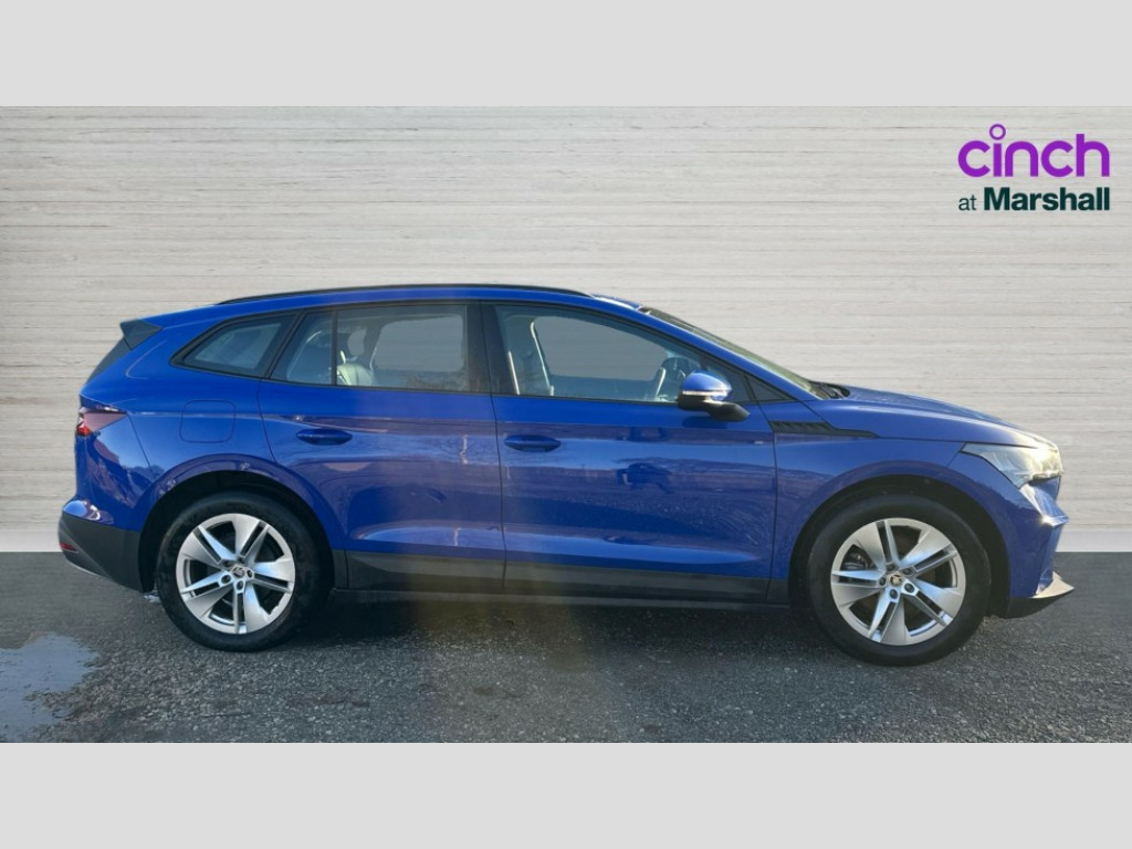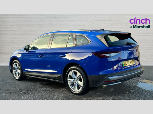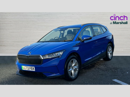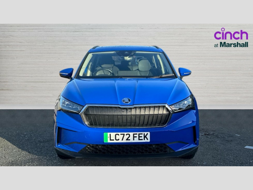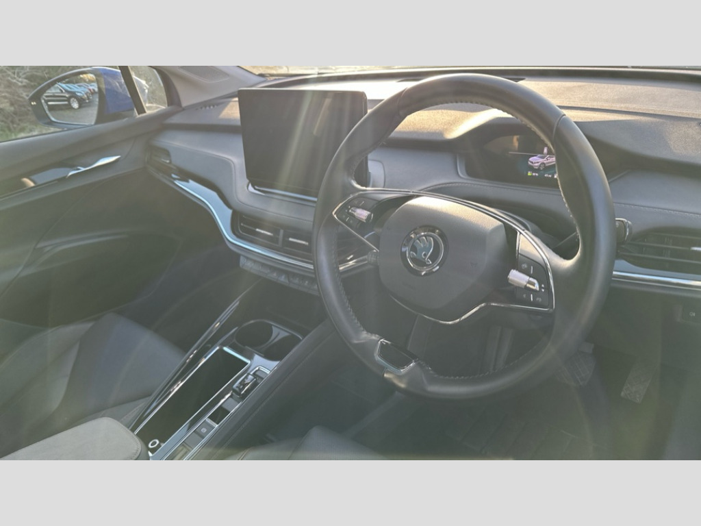 Skoda Enyaq 132kW 60 ecoSuite 62kWh 5dr Auto [120kW] 13" touchscreen display, Bluetooth system, E-call, Electronic engine sound, Exterior temperature indicator, Gesture control, Power assist steering, Rear parking sensors, Satellite navigation system, Skoda Connect iV remote services with charging, air conditioning and smart schedules, Smartlink wireless for apple carplay and wired for android auto, Speed limiter, Tailgate unlocking from outside, Virtual cockpit, Voice control system, Washer fluid level indicator, Wi-Fi hotspot, 120 kW DC charging, 6m mode 3 cable (32A), 8 Speakers, DAB Digital radio, USB-C ports (charging + data), Auto dimming rear view mirror, Black roof rails, Body colour bumpers, Body colour door mirrors and handles, Door moulding light in multiple colours, Electric adjustable heated folding door mirrors with boarding spots and welcome logo, Electric front and rear windows, Heat insulating darkened glass in side and rear windows, Heat insulating glass in windshield, Heated rear window, LED third brake light, Light assistant (coming home/tunnel light), Radiator grille frame in matt black with chrome strip, Rain and light sensors, Rear side wing doors, Rear spoiler, Rear window wiper with washer system and intermittent control, Safety reflectors on front and rear doors, Variable front intermittent wipers, 12V socket in boot, 3 rear headrests, 3 seat bench in 2nd row, 4 foldable roof handles with rear coat hooks, 60:40 foldable rear seat with sliding adjustment and backrest angle adjustment, Boot lighting, Coat hooks on B pillar, Front and rear footwell lighting, Front and rear height adjustable headrests, Front courtesy lights, Front reading lights, Height adjustable front passenger seat, High centre console, Illuminated and cooled glovebox, Interior door handle lighting in front and rear, Isofix child seat fittings in outer rear seats with top tether, Isofix child seat preparation for front passenger seat, Laminated soft-touch plastic knee rest, LED ambient lighting, Manual lumbar support for front passenger seat, Manually adjustable steering column, Pollen filter, Rear reading lights, Single front passenger seat, Sliding boot cover, Sunvisors with illuminated vanity mirrors, Umbrella in door panel, ECO Suite design pack - Enyaq, 3 point height adj front seatbelts + pretensioners, Auto door release and activation of warning lights in the event of an accident, Central interaction airbag, Driver and front passenger airbags, ESC (incl. ABS+MSR+ASR+EDS+HBA+DSR+RBS+MKB), Front and rear three point safety belt on all seats, Front assist with assisted automatic braking, Front disc brakes, Front passenger airbag deactivation switch, Front side airbags with curtain airbags, Rear drum brakes, Single tone horn, Tyre pressure monitor, Visual and acoustic seat belt reminder, Warning lights in front doors, Anti theft alarm system with interior monitoring, backup horn and towing protection, Remote central locking with SAFE system, Anti-theft wheel bolts protection, Tyre repair kit with compressor