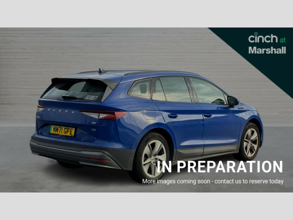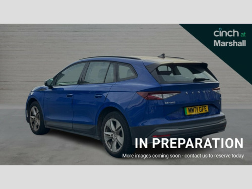 Skoda Enyaq 132kW 60 ecoSuite 62kWh 5dr Auto 13" touchscreen display, Bluetooth system, E-call, Electronic engine sound, Exterior temperature indicator, Gesture control, Rear parking sensor, Satellite navigation system, Skoda Connect iV remote services with charging, air conditioning and smart schedules, Smartlink wireless for apple carplay and wired for android auto, Speed limiter, Tailgate, Tailgate unlocking from outside, Virtual cockpit, Voice control system, Washer fluid level indicator, Wi-Fi hotspot, 50 kW DC battery charging, 6m mode 3 cable (32A), 8 Speakers, DAB Digital radio, USB-C ports (charging + data), Auto dimming rear view mirror, Body colour bumpers, Body colour door mirrors and handles, Door moulding light in multiple colours, Electric adjustable heated folding door mirrors with boarding spots and welcome logo, Electric front and rear windows, Heat insulating darkened glass in side and rear windows, Heat insulating glass in windshield, Heated rear window, LED third brake light, Light assistant (coming home/tunnel light), Rain and light sensors, Rear side wing doors, Rear spoiler, Rear window wiper with washer system and intermittent control, Safety reflectors on front and rear doors, 12V socket in boot, 3 seat bench in 2nd row, 4 foldable roof handles with rear coat hooks, 60:40 foldable rear seat with sliding adjustment and backrest angle adjustment, Boot lighting, Coat hooks on B pillar, Front and rear height adjustable headrests, Front courtesy lights, Front reading lights, High centre console with armrest, Illuminated and cooled glovebox, Interior door handle lighting in front and rear, Isofix attachment on front passenger seat, Isofix child seat fittings in outer rear seats with top tether, Laminated soft-touch plastic knee rest, LED ambient lighting, Manually adjustable steering column, Pollen filter, Rear reading lights, Single front passenger seat, Sliding boot cover, Sunvisors with illuminated vanity mirrors, Umbrella in door panel, ECO Suite design pack - Enyaq, 3 point height adj front seatbelts + pretensioners, Auto door release and activation of warning lights in the event of an accident, Central interaction airbag, Child safety lock, Driver and front passenger airbags, ESC (incl. ABS+MSR+ASR+EDS+HBA+DSR+RBS+MKB), Front and rear three point safety belt on all seats, Front assist includes AEB city/urban, Front disc brakes, Front passenger airbag deactivation switch, Front side airbags with curtain airbags, Rear drum brakes, Single tone horn, Tyre pressure monitor, Visual and acoustic seat belt reminder, Warning lights in front doors, Anti theft alarm system (ATA) with interior monitoring and tow away protection, Remote central locking with SAFE system, Anti-theft wheel bolts protection, Tyre repair kit with compressor