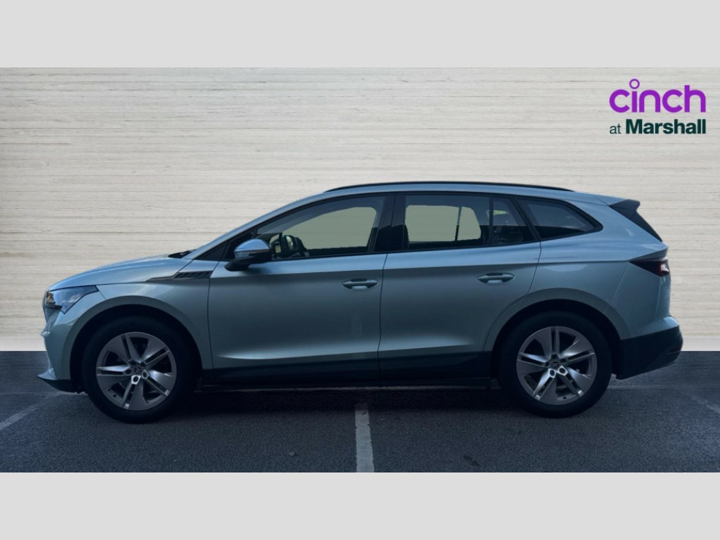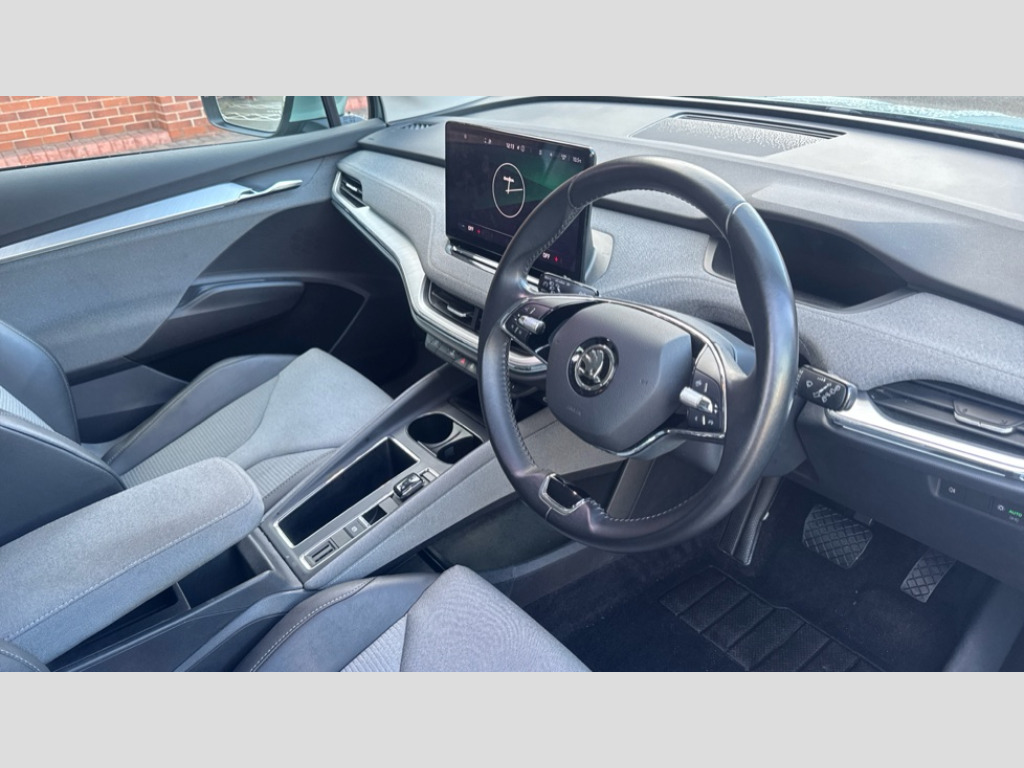 Parking Package 13" touchscreen display, Bluetooth system, E-call, Electronic engine sound, Exterior temperature indicator, Gesture control, Rear parking sensor, Satellite navigation system, Skoda Connect iV remote services with charging, air conditioning and smart schedules, Smartlink wireless for apple carplay and wired for android auto, Speed limiter, Tailgate, Tailgate unlocking from outside, Virtual cockpit, Voice control system, Washer fluid level indicator, Wi-Fi hotspot, 50 kW DC battery charging, 6m mode 3 cable (32A), 8 Speakers, DAB Digital radio, USB-C ports (charging + data), Auto dimming rear view mirror, Body colour bumpers, Body colour door mirrors and handles, Door moulding light in multiple colours, Electric adjustable heated folding door mirrors with boarding spots and welcome logo, Electric front and rear windows, Heat insulating darkened glass in side and rear windows, Heat insulating glass in windshield, Heated rear window, LED third brake light, Light assistant (coming home/tunnel light), Rain and light sensors, Rear side wing doors, Rear spoiler, Rear window wiper with washer system and intermittent control, Safety reflectors on front and rear doors, 12V socket in boot, 3 seat bench in 2nd row, 4 foldable roof handles with rear coat hooks, 60:40 foldable rear seat with sliding adjustment and backrest angle adjustment, Boot lighting, Coat hooks on B pillar, Front and rear height adjustable headrests, Front courtesy lights, Front reading lights, High centre console with armrest, Illuminated and cooled glovebox, Interior door handle lighting in front and rear, Isofix attachment on front passenger seat, Isofix child seat fittings in outer rear seats with top tether, Laminated soft-touch plastic knee rest, LED ambient lighting, Manually adjustable steering column, Pollen filter, Rear reading lights, Single front passenger seat, Sliding boot cover, Sunvisors with illuminated vanity mirrors, Umbrella in door panel, ECO Suite design pack - Enyaq, 3 point height adj front seatbelts + pretensioners, Auto door release and activation of warning lights in the event of an accident, Central interaction airbag, Child safety lock, Driver and front passenger airbags, ESC (incl. ABS+MSR+ASR+EDS+HBA+DSR+RBS+MKB), Front and rear three point safety belt on all seats, Front assist includes AEB city/urban, Front disc brakes, Front passenger airbag deactivation switch, Front side airbags with curtain airbags, Rear drum brakes, Single tone horn, Tyre pressure monitor, Visual and acoustic seat belt reminder, Warning lights in front doors, Anti theft alarm system (ATA) with interior monitoring and tow away protection, Remote central locking with SAFE system, Anti-theft wheel bolts protection, Tyre repair kit with compressor