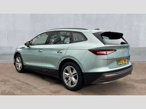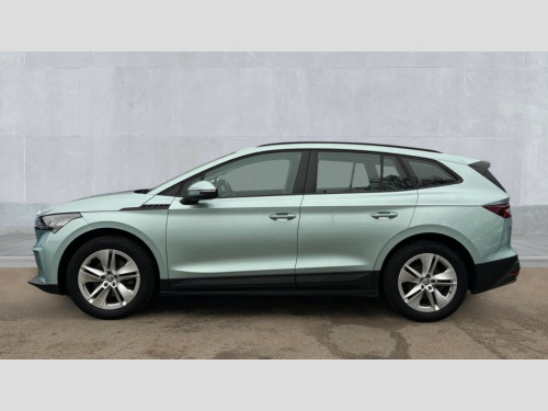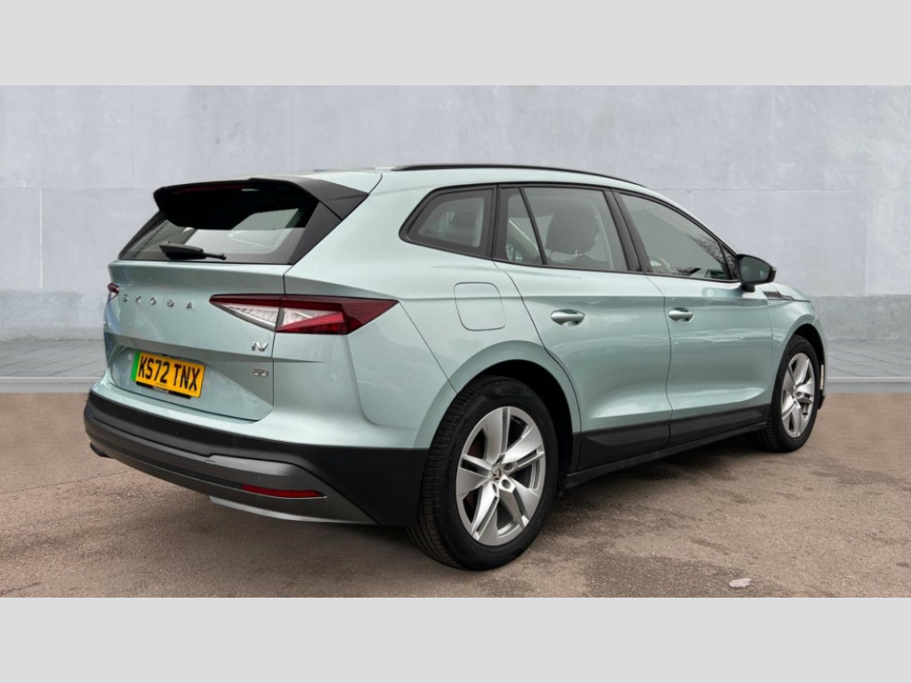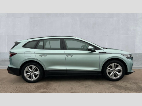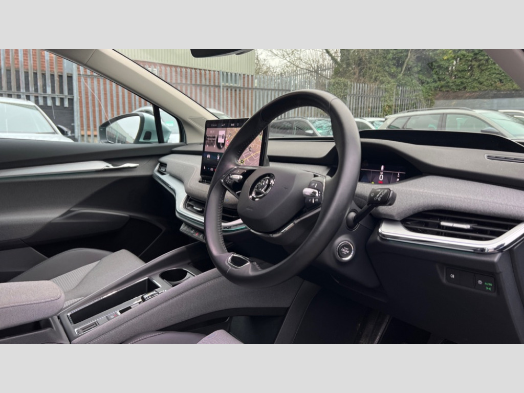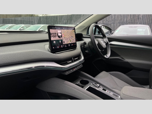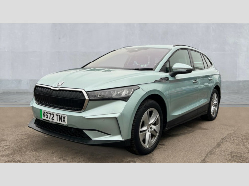 Skoda Enyaq 132kW 60 ecoSuite 62kWh 5dr Auto [120kW] 13" touchscreen display, Bluetooth system, Cruise control, E-call, Electronic engine sound, Exterior temperature indicator, Front parking sensors and rear view camera, Gesture control, Lane assist, Power assist steering, Rear parking sensors, Satellite navigation system, Skoda Connect iV remote services with charging, air conditioning and smart schedules, Smartlink wireless for apple carplay and wired for android auto, Speed limiter, Tailgate, Tailgate unlocking from outside, Virtual cockpit, Voice control system, Washer fluid level indicator, Wi-Fi hotspot, Wireless smartlink, 120 kW DC charging, 6m mode 3 cable (32A), 8 Speakers, DAB Digital radio, USB-C ports (charging + data), Auto dimming rear view mirror, Black roof rails, Body colour bumpers, Body colour door mirrors and handles, Door moulding light in multiple colours, Electric adjustable heated folding door mirrors with boarding spots and welcome logo, Electric front and rear windows, Heat insulating darkened glass in side and rear windows, Heat insulating glass in windshield, Heated rear window, LED headlights with LED daytime running lights and headlight range control, LED rear lights, LED third brake light, Light assistant (coming home/tunnel light), Radiator grille frame in matt black with chrome strip, Rain and light sensors, Rear side wing doors, Rear spoiler, Rear window wiper with washer system and intermittent control, Safety reflectors on front and rear doors, Variable front intermittent wipers, 12V socket in boot, 2-spoke black leather multifunction steering wheel with black stitching, 3 rear headrests, 3 seat bench in 2nd row, 4 foldable roof handles with rear coat hooks, 60:40 foldable rear seat with sliding adjustment and backrest angle adjustment, Boot lighting, Coat hooks on B pillar, Dual zone climate control, Front and rear footwell lighting, Front and rear height adjustable headrests, Front centre armrest, Front courtesy lights, Front headrests, Front reading lights, Front seat manual lumbar support for driver, Height adjustable drivers seat, Height adjustable front passenger seat, High centre console, Illuminated and cooled glovebox, Interior door handle lighting in front and rear, Isofix child seat fittings in outer rear seats with top tether, Isofix child seat preparation for front passenger seat, Laminated soft-touch plastic knee rest, LED ambient lighting, Manual lumbar support for front passenger seat, Manually adjustable steering column, Pollen filter, Rear reading lights, Single front passenger seat, Sliding boot cover, Sunvisors with illuminated vanity mirrors, Umbrella in door panel, Loft design pack - Enyaq, 3 point height adj front seatbelts + pretensioners, Auto door release and activation of warning lights in the event of an accident, Central interaction airbag, Child safety lock, Driver and front passenger airbags, ESC (incl. ABS+MSR+ASR+EDS+HBA+DSR+RBS+MKB), Front and rear three point safety belt on all seats, Front assist with assisted automatic braking, Front disc brakes, Front passenger airbag deactivation switch, Front side airbags with curtain airbags, Rear drum brakes, Single tone horn, Tyre pressure monitor, Visual and acoustic seat belt reminder, Warning lights in front doors, Anti theft alarm system with interior monitoring, backup horn and towing protection, Keyless start/stop, Remote central locking with SAFE system, Anti-theft wheel bolts protection, Tyre repair kit with compressor