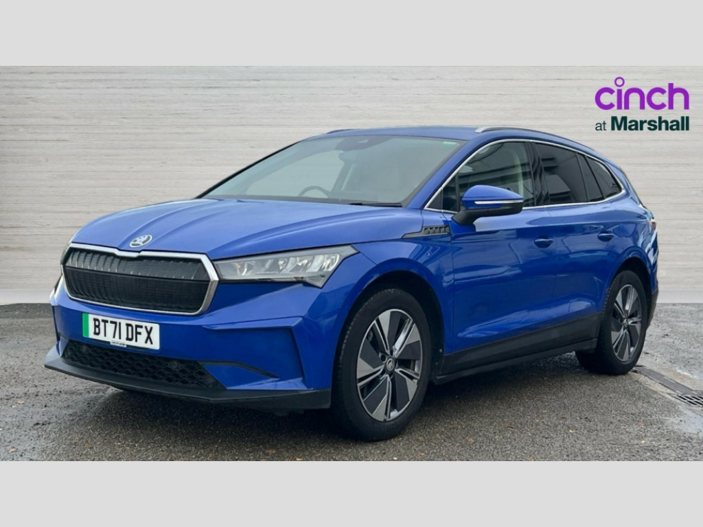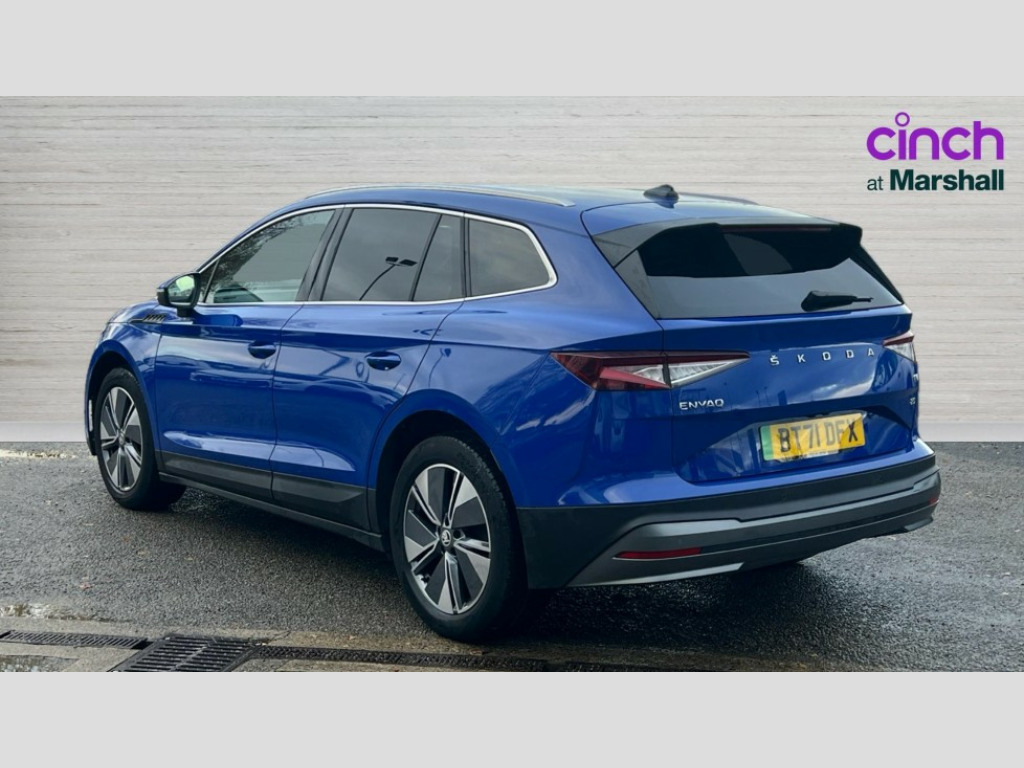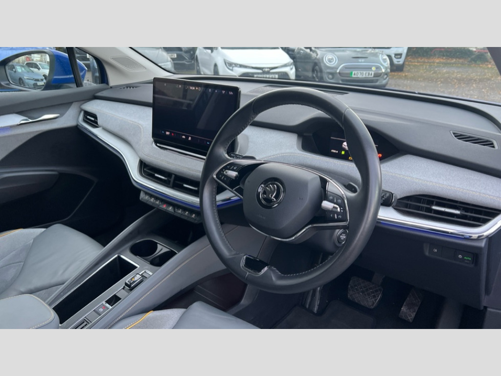 Skoda Enyaq 150kW 80 ecoSuite 82kWh 5dr Auto 13" touchscreen display, Bluetooth system, E-call, Electronic engine sound, Exterior temperature indicator, Gesture control, Rear parking sensor, Satellite navigation system, Skoda Connect iV remote services with charging, air conditioning and smart schedules, Smartlink wireless for apple carplay and wired for android auto, Speed limiter, Tailgate, Tailgate unlocking from outside, Virtual cockpit, Voice control system, Washer fluid level indicator, Wi-Fi hotspot, 50 kW DC battery charging, 6m mode 3 cable (32A), 8 Speakers, DAB Digital radio, USB-C ports (charging + data), Auto dimming rear view mirror, Body colour bumpers, Body colour door mirrors and handles, Dashboard and door moulding light in multiple colours, Electric adjustable heated folding door mirrors with boarding spots and welcome logo, Electric front and rear windows, Heat insulating darkened glass in side and rear windows, Heat insulating glass in windshield, Heated rear window, LED third brake light, Light assistant (coming home/tunnel light), Radiator grille frame in matt black with chrome strip, Rain and light sensors, Rear side wing doors, Rear spoiler, Rear window wiper with washer system and intermittent control, Safety reflectors on front and rear doors, 12V socket in boot, 3 seat bench in 2nd row, 4 foldable roof handles with rear coat hooks, 60:40 foldable rear seat with sliding adjustment and backrest angle adjustment, Boot lighting, Coat hooks on B pillar, Front and rear height adjustable headrests, Front courtesy lights, Front reading lights, High centre console with armrest, Illuminated and cooled glovebox, Interior door handle lighting in front and rear, Isofix attachment on front passenger seat, Isofix child seat fittings in outer rear seats with top tether, Laminated soft-touch plastic knee rest, LED ambient lighting, Manually adjustable steering column, Pollen filter, Rear reading lights, Single front passenger seat, Sliding boot cover, Sunvisors with illuminated vanity mirrors, Umbrella in door panel, Chrome pack - Enyaq, ECO Suite design pack - Enyaq, 3 point height adj front seatbelts + pretensioners, Auto door release and activation of warning lights in the event of an accident, Central interaction airbag, Child safety lock, Driver and front passenger airbags, ESC (incl. ABS+MSR+ASR+EDS+HBA+DSR+RBS+MKB), Front and rear three point safety belt on all seats, Front assist includes AEB city/urban, Front disc brakes, Front passenger airbag deactivation switch, Front side airbags with curtain airbags, Rear drum brakes, Single tone horn, Tyre pressure monitor, Visual and acoustic seat belt reminder, Warning lights in front doors, Anti theft alarm system (ATA) with interior monitoring and tow away protection, Remote central locking with SAFE system, Anti-theft wheel bolts protection, Tyre repair kit with compressor
