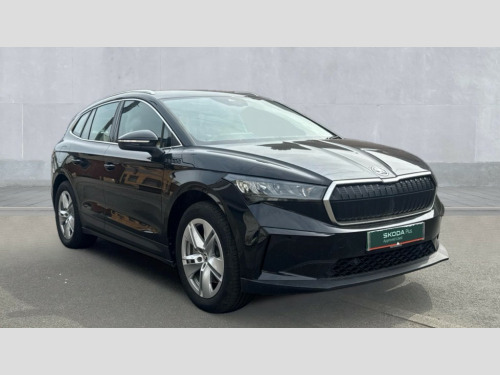 p to 2 years Servicing, 2 years Warranty, 2 years Roadside Assistance, 2 MOT's and up to £1000 deposit contribution for vehicles up to 12 months old at 11.4% APR Representative ** 13" touchscreen display, Adaptive cruise control, Blind Spot Detection (BAS), Bluetooth system, Digital cockpit, Drive mode selector, Driver alert system, E-call, Electrically operated tailgate with kick activation (virtual pedal), Electronic engine sound, Exterior temperature indicator, Front and rear parking sensors, Gesture control, Intelligent speed assist, Power assist steering, Rear view camera, Satellite navigation system, Skoda Connect iV remote services with charging, air conditioning and smart schedules, Speed limiter, Tailgate unlocking from outside, Traffic sign recognition, Travel assist with emergency assist, lane assist plus with narrow lane assist and urban evasive steering support, Voice control system, Washer fluid level indicator, Wi-Fi hotspot, Wireless charging, Wireless smartlink, 135 kW DC charging, 6m mode 3 cable (32A), 8 Speakers, DAB Digital radio, USB-C ports (charging + data) front and rear, Auto dimming rear view mirror, Body colour bumpers, Body colour door mirrors and handles, Chrome roof rails, Door mirror memory, Door moulding light in multiple colours, Dynamic headlight range control with cornering light function, Electric adjustable heated folding door mirrors with boarding spots and welcome logo, Electric front and rear windows, Front fog lights, Full LED Matrix beam headlights with variable light distribution, Full LED rear lights with variable lighting functions, Headlight washers, Heat insulating darkened glass in side and rear windows, Heat insulating glass in windshield, Heated rear window, Heated washer nozzles, LED daytime running lights, LED third brake light, Light assistant (coming home/tunnel light), Privacy glass and acoustic side windows, Radiator grille in matt black with chrome surround, Rain and light sensors, Rear side wing doors, Rear spoiler, Rear window wiper with washer system and intermittent control, Rear wiper, Safety reflectors on front and rear doors, Tow bar preparation, Variable front intermittent wipers, 12V socket in boot, 1x umbrella, 2 spoke black leather heated multi function steering wheel with paddles for recuperation level selection, 3 rear headrests, 3 seat bench in 2nd row, 4 foldable roof handles with rear coat hooks, 60:40 foldable rear seat with sliding adjustment and backrest angle adjustment, Boot lighting, Coat hooks on B pillar, Driver's electric adjustable lumbar support, Electrically adjustable driver seat with memory function, Front and rear footwell lighting, Front and rear height adjustable headrests, Front centre armrest, Front courtesy lights, Front headrests, Front reading lights, Heated front seats, Height adjustable front passenger seat, High centre console, Illuminated and cooled glovebox, Interior door handle lighting in front and rear, Isofix child seat fittings in outer rear seats with top tether, Isofix child seat preparation for front passenger seat, Laminated soft-touch plastic knee rest, LED ambient lighting, Manual lumbar support for front passenger seat, Manually adjustable steering column, Rear reading lights, Single front passenger seat, Sliding boot cover, Sunvisors with illuminated vanity mirrors, Tri zone climate control, Loft design pack - Enyaq, 3 point height adj front seatbelts + pretensioners, Auto door release and activation of warning lights in the event of an accident, Central interaction airbag, Crew protection assist, Driver and front passenger airbags, ESC (incl. ABS+MSR+ASR+EDS+HBA+DSR+RBS+MKB), Front and rear three point safety belt on all seats, Front assist with assisted automatic braking, Front disc brakes, Front passenger airbag deactivation switch, Front side airbags with curtain airbags, Power child locks, Rear drum brakes, Rear side airbags, Single tone horn, Tyre pressure monitor, Visual and acoustic seat belt reminder, Warning lights in front doors, Anti theft alarm system with interior monitoring, backup horn and towing protection, Central locking system with SAFE system, Keyless entry and start/stop system advanced, Anti-theft wheel bolts protection, Tyre repair kit with compressor