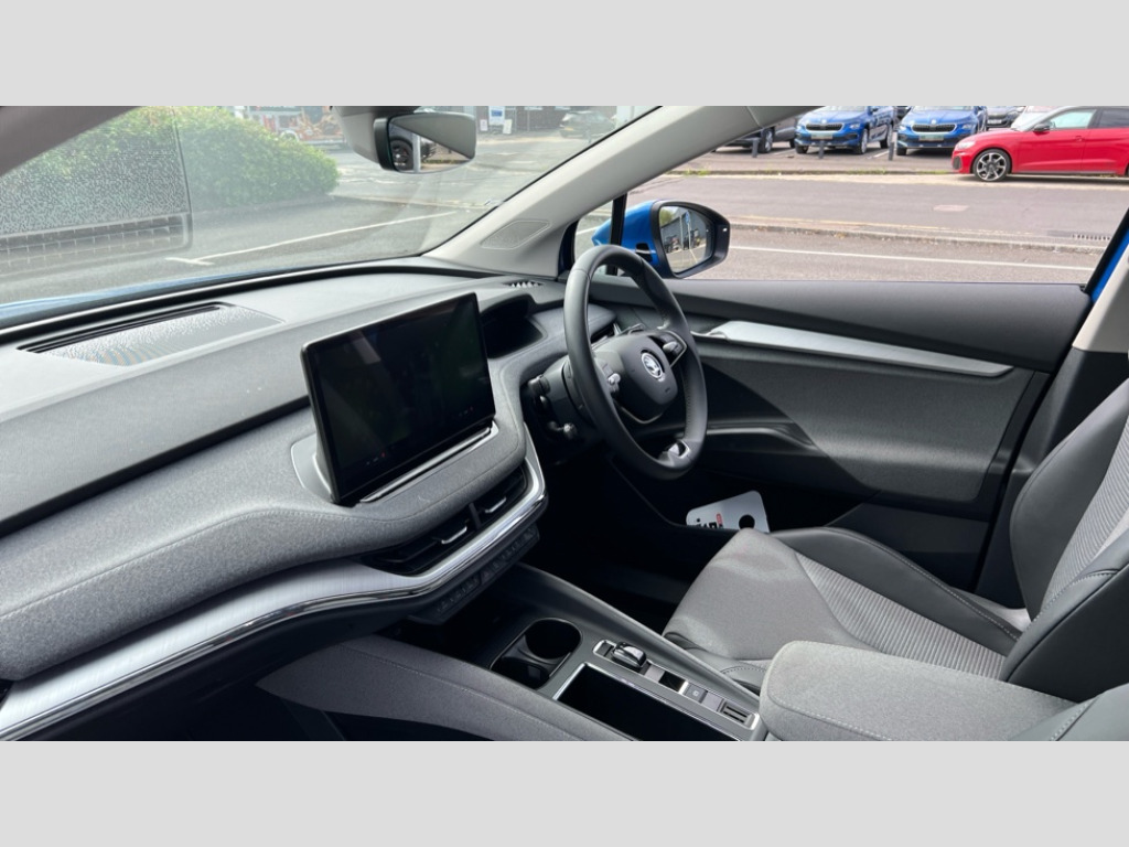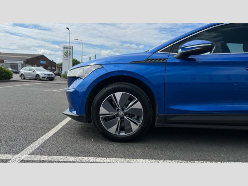 Skoda Enyaq 210kW 85 Edition 82kWh 5dr Auto 13" touchscreen display, Adaptive Cruise Control with traffic jam assist, Blind Spot Detection (BAS), Bluetooth system, Digital cockpit, Drive mode selector, Driver alert system, E-call, Electrically operated tailgate with kick activation (virtual pedal), Electronic engine sound, Exterior temperature indicator, Front and rear parking sensors, Gesture control, Power assist steering, Rear view camera, Satellite navigation system, Skoda Connect iV remote services with charging, air conditioning and smart schedules, Speed assist, Speed limiter, Tailgate unlocking from outside, Traffic sign recognition, Travel assist with emergency assist, lane assist plus with narrow lane assist and urban evasive steering support, Voice control system, Washer fluid level indicator, Wi-Fi hotspot, Wireless charging with cooling function, Wireless smartlink, 135 kW DC charging, 6m mode 3 cable (32A), 8 Speakers, DAB Digital radio, USB-C ports (charging + data) front and rear, Auto dimming rear view mirror, Body colour bumpers, Body colour door mirrors and handles, Chrome roof rails, Chrome side window surrounds, Door mirror memory, Door moulding light in multiple colours, Dynamic headlight range control with cornering light function, Electric adjustable heated folding door mirrors with boarding spots and welcome logo, Electric front and rear windows, Front fog lights, Full LED Matrix beam headlights with variable light distribution, Full LED rear lights with variable lighting functions, Headlight washers, Heat insulating darkened glass in side and rear windows, Heat insulating glass in windshield, Heated rear window, LED daytime running lights, LED third brake light, Light assistant (coming home/tunnel light), Privacy glass and acoustic side windows, Radiator grille in matt black with chrome surround, Rain and light sensors, Rear boot spoiler, Rear side wing doors, Rear window wiper with washer system and intermittent control, Rear wiper, Safety reflectors on front and rear doors, Tow bar preparation, Variable front intermittent wipers, 12V socket in boot, 1x umbrella, 2 spoke black leather heated multi function steering wheel with paddles for recuperation level selection, 3 rear headrests, 3 seat bench in 2nd row, 4 foldable roof handles with rear coat hooks, 60:40 foldable rear seat with sliding adjustment and backrest angle adjustment, Boot lighting, Coat hooks on B pillar, Driver's electric adjustable lumbar support, Electrically adjustable driver seat with memory function, Extended interior noise suspension, Front and rear footwell lighting, Front and rear height adjustable headrests, Front centre armrest, Front courtesy lights, Front headrests, Front reading lights, Glasses storage compartment in front centre armrest, Heated front seats, Height adjustable front passenger seat, High centre console, Interior door handle lighting in front and rear, Isofix child seat fittings in outer rear seats with top tether, Isofix child seat preparation for front passenger seat, Laminated soft-touch plastic knee rest, LED ambient lighting, Manual lumbar support for front passenger seat, Manual rear window blind, Manually adjustable steering column, Pollen filter, Rear reading lights, Rear storage compartment, Single front passenger seat, Sliding boot cover, Sunvisors with illuminated vanity mirrors, Tri zone climate control, Loft design pack - Enyaq, 3 point height adj front seatbelts + pretensioners, Auto door release and activation of warning lights in the event of an accident, Central interaction airbag, Crew protection assist, Driver and front passenger airbags, ESC (incl. ABS+MSR+ASR+EDS+HBA+DSR+RBS+MKB), Front and rear three point safety belt on all seats, Front assist with assisted automatic braking, Front disc brakes, Front passenger airbag deactivation switch, Front side airbags with curtain airbags, Height adjustable seatbelts, Power child locks, Rear drum brakes, Rear side airbags, Single tone horn, Tyre pressure monitor, Visual and acoustic seat belt reminder, Warning lights in front doors, Anti theft alarm system with interior monitoring, backup horn and towing protection, Central locking system with SAFE system, Keyless entry and start/stop system advanced with walk away locking, Anti-theft wheel bolts protection, Tyre repair kit with compressor