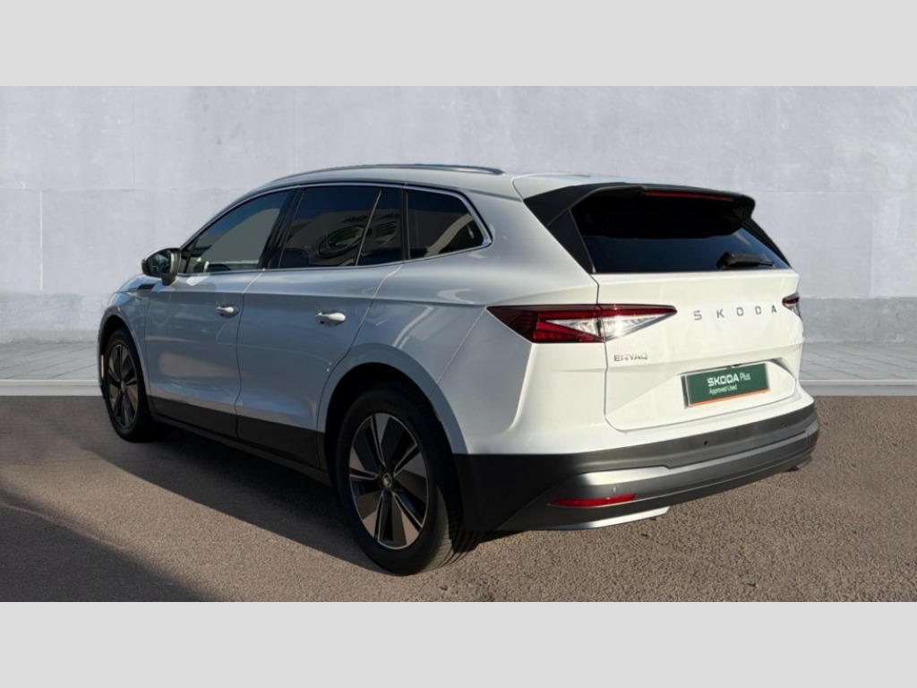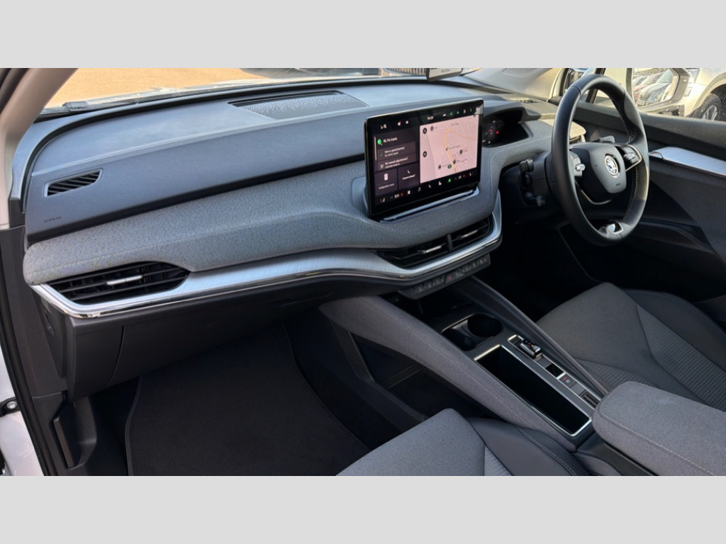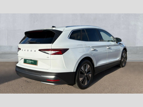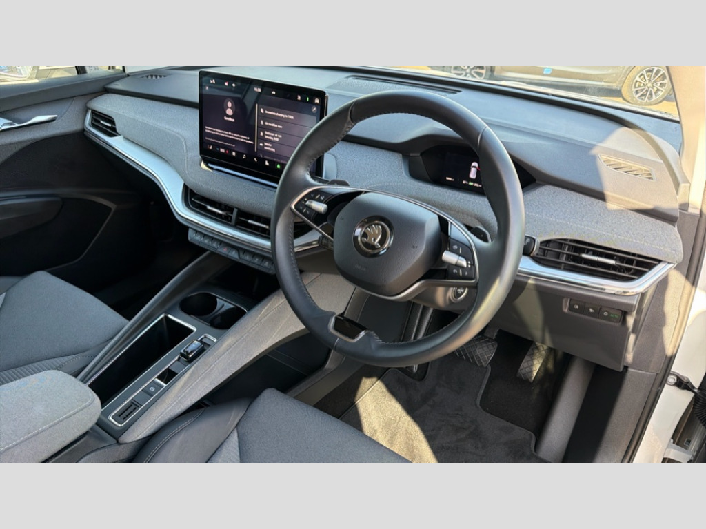 Skoda Enyaq 210kW 85 Edition 82kWh 5dr Auto 13" touchscreen display, Adaptive Cruise Control with traffic jam assist, Blind Spot Detection (BAS), Bluetooth system, Digital cockpit, Drive mode selector, Driver alert system, E-call, Electrically operated tailgate with kick activation (virtual pedal), Electronic engine sound, Exterior temperature indicator, Front and rear parking sensors, Gesture control, Power assist steering, Rear view camera, Satellite navigation system, Skoda Connect iV remote services with charging, air conditioning and smart schedules, Speed assist, Speed limiter, Tailgate unlocking from outside, Traffic sign recognition, Travel assist with emergency assist, lane assist plus with narrow lane assist and urban evasive steering support, Voice control system, Washer fluid level indicator, Wi-Fi hotspot, Wireless charging with cooling function, Wireless smartlink, 135 kW DC charging, 6m mode 3 cable (32A), 8 Speakers, DAB Digital radio, USB-C ports (charging + data) front and rear, Auto dimming rear view mirror, Body colour bumpers, Body colour door mirrors and handles, Chrome roof rails, Chrome side window surrounds, Door mirror memory, Door moulding light in multiple colours, Dynamic headlight range control with cornering light function, Electric adjustable heated folding door mirrors with boarding spots and welcome logo, Electric front and rear windows, Front fog lights, Full LED Matrix beam headlights with variable light distribution, Full LED rear lights with variable lighting functions, Headlight washers, Heat insulating darkened glass in side and rear windows, Heat insulating glass in windshield, Heated rear window, LED daytime running lights, LED third brake light, Light assistant (coming home/tunnel light), Privacy glass and acoustic side windows, Radiator grille in matt black with chrome surround, Rain and light sensors, Rear boot spoiler, Rear side wing doors, Rear window wiper with washer system and intermittent control, Rear wiper, Safety reflectors on front and rear doors, Tow bar preparation, Variable front intermittent wipers, 12V socket in boot, 1x umbrella, 2 spoke black leather heated multi function steering wheel with paddles for recuperation level selection, 3 rear headrests, 3 seat bench in 2nd row, 4 foldable roof handles with rear coat hooks, 60:40 foldable rear seat with sliding adjustment and backrest angle adjustment, Boot lighting, Coat hooks on B pillar, Driver's electric adjustable lumbar support, Electrically adjustable driver seat with memory function, Extended interior noise suspension, Front and rear footwell lighting, Front and rear height adjustable headrests, Front centre armrest, Front courtesy lights, Front headrests, Front reading lights, Glasses storage compartment in front centre armrest, Heated front seats, Height adjustable front passenger seat, High centre console, Interior door handle lighting in front and rear, Isofix child seat fittings in outer rear seats with top tether, Isofix child seat preparation for front passenger seat, Laminated soft-touch plastic knee rest, LED ambient lighting, Manual lumbar support for front passenger seat, Manual rear window blind, Manually adjustable steering column, Pollen filter, Rear reading lights, Rear storage compartment, Single front passenger seat, Sliding boot cover, Sunvisors with illuminated vanity mirrors, Tri zone climate control, Loft design pack - Enyaq, 3 point height adj front seatbelts + pretensioners, Auto door release and activation of warning lights in the event of an accident, Central interaction airbag, Crew protection assist, Driver and front passenger airbags, ESC (incl. ABS+MSR+ASR+EDS+HBA+DSR+RBS+MKB), Front and rear three point safety belt on all seats, Front assist with assisted automatic braking, Front disc brakes, Front passenger airbag deactivation switch, Front side airbags with curtain airbags, Height adjustable seatbelts, Power child locks, Rear drum brakes, Rear side airbags, Single tone horn, Tyre pressure monitor, Visual and acoustic seat belt reminder, Warning lights in front doors, Anti theft alarm system with interior monitoring, backup horn and towing protection, Central locking system with SAFE system, Keyless entry and start/stop system advanced with walk away locking, Anti-theft wheel bolts protection, Tyre repair kit with compressor