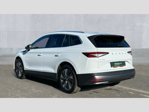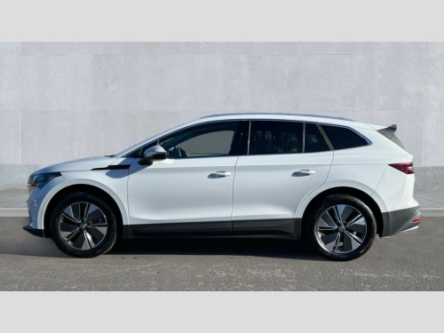 Skoda Enyaq 210kW 85 Edition 82kWh 5dr Auto 13" touchscreen display, Adaptive Cruise Control with traffic jam assist, Blind Spot Detection (BAS), Bluetooth system, Digital cockpit, Drive mode selector, Driver alert system, E-call, Electrically operated tailgate with kick activation (virtual pedal), Electronic engine sound, Exterior temperature indicator, Front and rear parking sensors, Gesture control, Power assist steering, Rear view camera, Satellite navigation system, Skoda Connect iV remote services with charging, air conditioning and smart schedules, Speed assist, Speed limiter, Tailgate unlocking from outside, Traffic sign recognition, Travel assist with emergency assist, lane assist plus with narrow lane assist and urban evasive steering support, Voice control system, Washer fluid level indicator, Wi-Fi hotspot, Wireless charging with cooling function, Wireless smartlink, 135 kW DC charging, 6m mode 3 cable (32A), 8 Speakers, DAB Digital radio, USB-C ports (charging + data) front and rear, Auto dimming rear view mirror, Body colour bumpers, Body colour door mirrors and handles, Chrome roof rails, Chrome side window surrounds, Door mirror memory, Door moulding light in multiple colours, Dynamic headlight range control with cornering light function, Electric adjustable heated folding door mirrors with boarding spots and welcome logo, Electric front and rear windows, Front fog lights, Full LED Matrix beam headlights with variable light distribution, Full LED rear lights with variable lighting functions, Headlight washers, Heat insulating darkened glass in side and rear windows, Heat insulating glass in windshield, Heated rear window, LED daytime running lights, LED third brake light, Light assistant (coming home/tunnel light), Privacy glass and acoustic side windows, Radiator grille in matt black with chrome surround, Rain and light sensors, Rear boot spoiler, Rear side wing doors, Rear window wiper with washer system and intermittent control, Rear wiper, Safety reflectors on front and rear doors, Tow bar preparation, Variable front intermittent wipers, 12V socket in boot, 1x umbrella, 2 spoke black leather heated multi function steering wheel with paddles for recuperation level selection, 3 rear headrests, 3 seat bench in 2nd row, 4 foldable roof handles with rear coat hooks, 60:40 foldable rear seat with sliding adjustment and backrest angle adjustment, Boot lighting, Coat hooks on B pillar, Driver's electric adjustable lumbar support, Electrically adjustable driver seat with memory function, Extended interior noise suspension, Front and rear footwell lighting, Front and rear height adjustable headrests, Front centre armrest, Front courtesy lights, Front headrests, Front reading lights, Glasses storage compartment in front centre armrest, Heated front seats, Height adjustable front passenger seat, High centre console, Interior door handle lighting in front and rear, Isofix child seat fittings in outer rear seats with top tether, Isofix child seat preparation for front passenger seat, Laminated soft-touch plastic knee rest, LED ambient lighting, Manual lumbar support for front passenger seat, Manual rear window blind, Manually adjustable steering column, Pollen filter, Rear reading lights, Rear storage compartment, Single front passenger seat, Sliding boot cover, Sunvisors with illuminated vanity mirrors, Tri zone climate control, Loft design pack - Enyaq, 3 point height adj front seatbelts + pretensioners, Auto door release and activation of warning lights in the event of an accident, Central interaction airbag, Crew protection assist, Driver and front passenger airbags, ESC (incl. ABS+MSR+ASR+EDS+HBA+DSR+RBS+MKB), Front and rear three point safety belt on all seats, Front assist with assisted automatic braking, Front disc brakes, Front passenger airbag deactivation switch, Front side airbags with curtain airbags, Height adjustable seatbelts, Power child locks, Rear drum brakes, Rear side airbags, Single tone horn, Tyre pressure monitor, Visual and acoustic seat belt reminder, Warning lights in front doors, Anti theft alarm system with interior monitoring, backup horn and towing protection, Central locking system with SAFE system, Keyless entry and start/stop system advanced with walk away locking, Anti-theft wheel bolts protection, Tyre repair kit with compressor