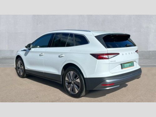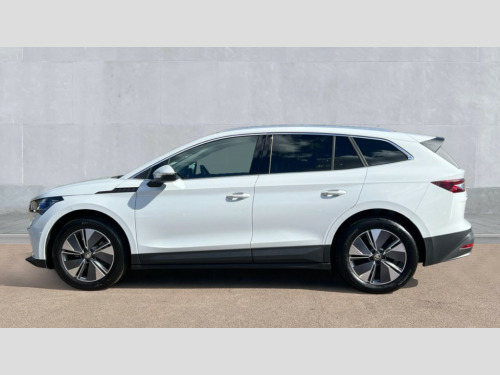 Skoda Enyaq 210kW 85 Edition 82kWh 5dr Auto 13" touchscreen display, Adaptive Cruise Control with traffic jam assist, Blind Spot Detection (BAS), Bluetooth system, Digital cockpit, Drive mode selector, Driver alert system, E-call, Electrically operated tailgate with kick activation (virtual pedal), Electronic engine sound, Exterior temperature indicator, Front and rear parking sensors, Gesture control, Power assist steering, Rear view camera, Satellite navigation system, Skoda Connect iV remote services with charging, air conditioning and smart schedules, Speed assist, Speed limiter, Tailgate unlocking from outside, Traffic sign recognition, Travel assist with emergency assist, lane assist plus with narrow lane assist and urban evasive steering support, Voice control system, Washer fluid level indicator, Wi-Fi hotspot, Wireless charging with cooling function, Wireless smartlink, 135 kW DC charging, 6m mode 3 cable (32A), 8 Speakers, DAB Digital radio, USB-C ports (charging + data) front and rear, Auto dimming rear view mirror, Body colour bumpers, Body colour door mirrors and handles, Chrome roof rails, Chrome side window surrounds, Door mirror memory, Door moulding light in multiple colours, Dynamic headlight range control with cornering light function, Electric adjustable heated folding door mirrors with boarding spots and welcome logo, Electric front and rear windows, Front fog lights, Full LED Matrix beam headlights with variable light distribution, Full LED rear lights with variable lighting functions, Headlight washers, Heat insulating darkened glass in side and rear windows, Heat insulating glass in windshield, Heated rear window, LED daytime running lights, LED third brake light, Light assistant (coming home/tunnel light), Privacy glass and acoustic side windows, Radiator grille in matt black with chrome surround, Rain and light sensors, Rear boot spoiler, Rear side wing doors, Rear window wiper with washer system and intermittent control, Rear wiper, Safety reflectors on front and rear doors, Tow bar preparation, Variable front intermittent wipers, 12V socket in boot, 1x umbrella, 2 spoke black leather heated multi function steering wheel with paddles for recuperation level selection, 3 rear headrests, 3 seat bench in 2nd row, 4 foldable roof handles with rear coat hooks, 60:40 foldable rear seat with sliding adjustment and backrest angle adjustment, Boot lighting, Coat hooks on B pillar, Driver's electric adjustable lumbar support, Electrically adjustable driver seat with memory function, Extended interior noise suspension, Front and rear footwell lighting, Front and rear height adjustable headrests, Front centre armrest, Front courtesy lights, Front headrests, Front reading lights, Glasses storage compartment in front centre armrest, Heated front seats, Height adjustable front passenger seat, High centre console, Interior door handle lighting in front and rear, Isofix child seat fittings in outer rear seats with top tether, Isofix child seat preparation for front passenger seat, Laminated soft-touch plastic knee rest, LED ambient lighting, Manual lumbar support for front passenger seat, Manual rear window blind, Manually adjustable steering column, Pollen filter, Rear reading lights, Rear storage compartment, Single front passenger seat, Sliding boot cover, Sunvisors with illuminated vanity mirrors, Tri zone climate control, Loft design pack - Enyaq, 3 point height adj front seatbelts + pretensioners, Auto door release and activation of warning lights in the event of an accident, Central interaction airbag, Crew protection assist, Driver and front passenger airbags, ESC (incl. ABS+MSR+ASR+EDS+HBA+DSR+RBS+MKB), Front and rear three point safety belt on all seats, Front assist with assisted automatic braking, Front disc brakes, Front passenger airbag deactivation switch, Front side airbags with curtain airbags, Height adjustable seatbelts, Power child locks, Rear drum brakes, Rear side airbags, Single tone horn, Tyre pressure monitor, Visual and acoustic seat belt reminder, Warning lights in front doors, Anti theft alarm system with interior monitoring, backup horn and towing protection, Central locking system with SAFE system, Keyless entry and start/stop system advanced with walk away locking, Anti-theft wheel bolts protection, Tyre repair kit with compressor
