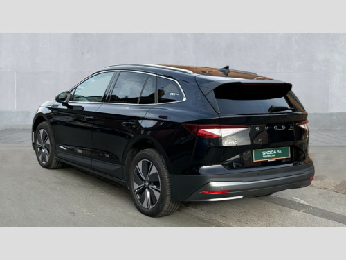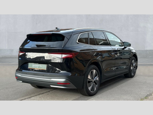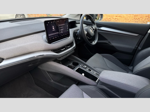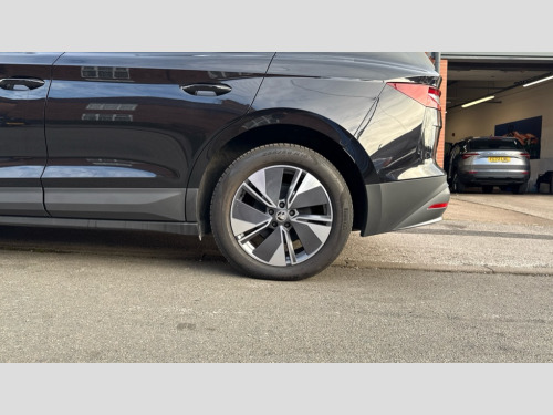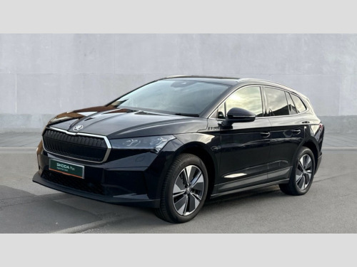 Up to 2 years Servicing, 2 years Warranty, 2 years Roadside Assistance, 2 MOT's and up to £1000 deposit contribution for vehicles up to 12 months old at 11.4% APR Representative ** 13" touchscreen display, Adaptive Cruise Control with traffic jam assist, Blind Spot Detection (BAS), Bluetooth system, Digital cockpit, Drive mode selector, Driver alert system, E-call, Electrically operated tailgate with kick activation (virtual pedal), Electronic engine sound, Exterior temperature indicator, Front and rear parking sensors, Gesture control, Power assist steering, Rear view camera, Satellite navigation system, Skoda Connect iV remote services with charging, air conditioning and smart schedules, Speed assist, Speed limiter, Tailgate unlocking from outside, Traffic sign recognition, Travel assist with emergency assist, lane assist plus with narrow lane assist and urban evasive steering support, Voice control system, Washer fluid level indicator, Wi-Fi hotspot, Wireless charging with cooling function, Wireless smartlink, 135 kW DC charging, 6m mode 3 cable (32A), 8 Speakers, DAB Digital radio, USB-C ports (charging + data) front and rear, Auto dimming rear view mirror, Body colour bumpers, Body colour door mirrors and handles, Chrome roof rails, Chrome side window surrounds, Door mirror memory, Door moulding light in multiple colours, Dynamic headlight range control with cornering light function, Electric adjustable heated folding door mirrors with boarding spots and welcome logo, Electric front and rear windows, Front fog lights, Full LED Matrix beam headlights with variable light distribution, Full LED rear lights with variable lighting functions, Headlight washers, Heat insulating darkened glass in side and rear windows, Heat insulating glass in windshield, Heated rear window, LED daytime running lights, LED third brake light, Light assistant (coming home/tunnel light), Privacy glass and acoustic side windows, Radiator grille in matt black with chrome surround, Rain and light sensors, Rear boot spoiler, Rear side wing doors, Rear window wiper with washer system and intermittent control, Rear wiper, Safety reflectors on front and rear doors, Tow bar preparation, Variable front intermittent wipers, 12V socket in boot, 1x umbrella, 2 spoke black leather heated multi function steering wheel with paddles for recuperation level selection, 3 rear headrests, 3 seat bench in 2nd row, 4 foldable roof handles with rear coat hooks, 60:40 foldable rear seat with sliding adjustment and backrest angle adjustment, Boot lighting, Coat hooks on B pillar, Driver's electric adjustable lumbar support, Electrically adjustable driver seat with memory function, Extended interior noise suspension, Front and rear footwell lighting, Front and rear height adjustable headrests, Front centre armrest, Front courtesy lights, Front headrests, Front reading lights, Glasses storage compartment in front centre armrest, Heated front seats, Height adjustable front passenger seat, High centre console, Interior door handle lighting in front and rear, Isofix child seat fittings in outer rear seats with top tether, Isofix child seat preparation for front passenger seat, Laminated soft-touch plastic knee rest, LED ambient lighting, Manual lumbar support for front passenger seat, Manual rear window blind, Manually adjustable steering column, Pollen filter, Rear reading lights, Rear storage compartment, Single front passenger seat, Sliding boot cover, Sunvisors with illuminated vanity mirrors, Tri zone climate control, Loft design pack - Enyaq, 3 point height adj front seatbelts + pretensioners, Auto door release and activation of warning lights in the event of an accident, Central interaction airbag, Crew protection assist, Driver and front passenger airbags, ESC (incl. ABS+MSR+ASR+EDS+HBA+DSR+RBS+MKB), Front and rear three point safety belt on all seats, Front assist with assisted automatic braking, Front disc brakes, Front passenger airbag deactivation switch, Front side airbags with curtain airbags, Height adjustable seatbelts, Power child locks, Rear drum brakes, Rear side airbags, Single tone horn, Tyre pressure monitor, Visual and acoustic seat belt reminder, Warning lights in front doors, Anti theft alarm system with interior monitoring, backup horn and towing protection, Central locking system with SAFE system, Keyless entry and start/stop system advanced with walk away locking, Anti-theft wheel bolts protection, Tyre repair kit with compressor
