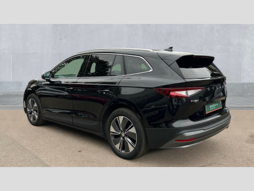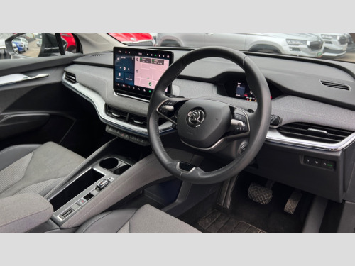 Skoda Enyaq 210kW 85 Edition 82kWh 5dr Auto 13" touchscreen display, Adaptive Cruise Control with traffic jam assist, Blind Spot Detection (BAS), Bluetooth system, Digital cockpit, Drive mode selector, Driver alert system, E-call, Electrically operated tailgate with kick activation (virtual pedal), Electronic engine sound, Exterior temperature indicator, Front and rear parking sensors, Gesture control, Power assist steering, Rear view camera, Satellite navigation system, Skoda Connect iV remote services with charging, air conditioning and smart schedules, Speed assist, Speed limiter, Tailgate unlocking from outside, Traffic sign recognition, Travel assist with emergency assist, lane assist plus with narrow lane assist and urban evasive steering support, Voice control system, Washer fluid level indicator, Wi-Fi hotspot, Wireless charging with cooling function, Wireless smartlink, 135 kW DC charging, 6m mode 3 cable (32A), 8 Speakers, DAB Digital radio, USB-C ports (charging + data) front and rear, Auto dimming rear view mirror, Body colour bumpers, Body colour door mirrors and handles, Chrome roof rails, Chrome side window surrounds, Door mirror memory, Door moulding light in multiple colours, Dynamic headlight range control with cornering light function, Electric adjustable heated folding door mirrors with boarding spots and welcome logo, Electric front and rear windows, Front fog lights, Full LED Matrix beam headlights with variable light distribution, Full LED rear lights with variable lighting functions, Headlight washers, Heat insulating darkened glass in side and rear windows, Heat insulating glass in windshield, Heated rear window, LED daytime running lights, LED third brake light, Light assistant (coming home/tunnel light), Privacy glass and acoustic side windows, Radiator grille in matt black with chrome surround, Rain and light sensors, Rear boot spoiler, Rear side wing doors, Rear window wiper with washer system and intermittent control, Rear wiper, Safety reflectors on front and rear doors, Tow bar preparation, Variable front intermittent wipers, 12V socket in boot, 1x umbrella, 2 spoke black leather heated multi function steering wheel with paddles for recuperation level selection, 3 rear headrests, 3 seat bench in 2nd row, 4 foldable roof handles with rear coat hooks, 60:40 foldable rear seat with sliding adjustment and backrest angle adjustment, Boot lighting, Coat hooks on B pillar, Driver's electric adjustable lumbar support, Electrically adjustable driver seat with memory function, Extended interior noise suspension, Front and rear footwell lighting, Front and rear height adjustable headrests, Front centre armrest, Front courtesy lights, Front headrests, Front reading lights, Glasses storage compartment in front centre armrest, Heated front seats, Height adjustable front passenger seat, High centre console, Interior door handle lighting in front and rear, Isofix child seat fittings in outer rear seats with top tether, Isofix child seat preparation for front passenger seat, Laminated soft-touch plastic knee rest, LED ambient lighting, Manual lumbar support for front passenger seat, Manual rear window blind, Manually adjustable steering column, Pollen filter, Rear reading lights, Rear storage compartment, Single front passenger seat, Sliding boot cover, Sunvisors with illuminated vanity mirrors, Tri zone climate control, Loft design pack - Enyaq, 3 point height adj front seatbelts + pretensioners, Auto door release and activation of warning lights in the event of an accident, Central interaction airbag, Crew protection assist, Driver and front passenger airbags, ESC (incl. ABS+MSR+ASR+EDS+HBA+DSR+RBS+MKB), Front and rear three point safety belt on all seats, Front assist with assisted automatic braking, Front disc brakes, Front passenger airbag deactivation switch, Front side airbags with curtain airbags, Height adjustable seatbelts, Power child locks, Rear drum brakes, Rear side airbags, Single tone horn, Tyre pressure monitor, Visual and acoustic seat belt reminder, Warning lights in front doors, Anti theft alarm system with interior monitoring, backup horn and towing protection, Central locking system with SAFE system, Keyless entry and start/stop system advanced with walk away locking, Anti-theft wheel bolts protection, Tyre repair kit with compressor