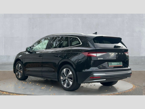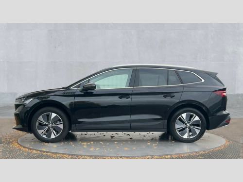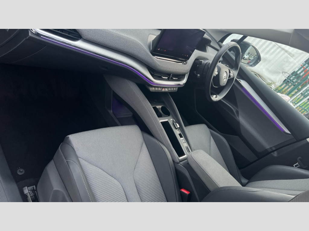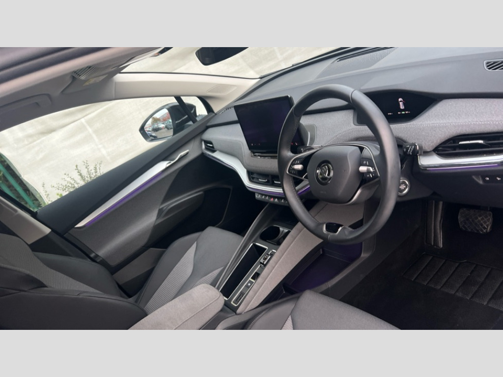 Skoda Enyaq 210kW 85 Edition 82kWh 5dr Auto 13" touchscreen display, Adaptive Cruise Control with traffic jam assist, Blind Spot Detection (BAS), Bluetooth system, Digital cockpit, Drive mode selector, Driver alert system, E-call, Electrically operated tailgate with kick activation (virtual pedal), Electronic engine sound, Exterior temperature indicator, Front and rear parking sensors, Gesture control, Power assist steering, Rear view camera, Satellite navigation system, Skoda Connect iV remote services with charging, air conditioning and smart schedules, Speed assist, Speed limiter, Tailgate unlocking from outside, Traffic sign recognition, Travel assist with emergency assist, lane assist plus with narrow lane assist and urban evasive steering support, Voice control system, Washer fluid level indicator, Wi-Fi hotspot, Wireless charging with cooling function, Wireless smartlink, 135 kW DC charging, 6m mode 3 cable (32A), 8 Speakers, DAB Digital radio, USB-C ports (charging + data) front and rear, Auto dimming rear view mirror, Body colour bumpers, Body colour door mirrors and handles, Chrome roof rails, Chrome side window surrounds, Door mirror memory, Door moulding light in multiple colours, Dynamic headlight range control with cornering light function, Electric adjustable heated folding door mirrors with boarding spots and welcome logo, Electric front and rear windows, Front fog lights, Full LED Matrix beam headlights with variable light distribution, Full LED rear lights with variable lighting functions, Headlight washers, Heat insulating darkened glass in side and rear windows, Heat insulating glass in windshield, Heated rear window, LED daytime running lights, LED third brake light, Light assistant (coming home/tunnel light), Privacy glass and acoustic side windows, Radiator grille in matt black with chrome surround, Rain and light sensors, Rear boot spoiler, Rear side wing doors, Rear window wiper with washer system and intermittent control, Rear wiper, Safety reflectors on front and rear doors, Tow bar preparation, Variable front intermittent wipers, 12V socket in boot, 1x umbrella, 2 spoke black leather heated multi function steering wheel with paddles for recuperation level selection, 3 rear headrests, 3 seat bench in 2nd row, 4 foldable roof handles with rear coat hooks, 60:40 foldable rear seat with sliding adjustment and backrest angle adjustment, Boot lighting, Coat hooks on B pillar, Driver's electric adjustable lumbar support, Electrically adjustable driver seat with memory function, Extended interior noise suspension, Front and rear footwell lighting, Front and rear height adjustable headrests, Front centre armrest, Front courtesy lights, Front headrests, Front reading lights, Glasses storage compartment in front centre armrest, Heated front seats, Height adjustable front passenger seat, High centre console, Interior door handle lighting in front and rear, Isofix child seat fittings in outer rear seats with top tether, Isofix child seat preparation for front passenger seat, Laminated soft-touch plastic knee rest, LED ambient lighting, Manual lumbar support for front passenger seat, Manual rear window blind, Manually adjustable steering column, Pollen filter, Rear reading lights, Rear storage compartment, Single front passenger seat, Sliding boot cover, Sunvisors with illuminated vanity mirrors, Tri zone climate control, Loft design pack - Enyaq, 3 point height adj front seatbelts + pretensioners, Auto door release and activation of warning lights in the event of an accident, Central interaction airbag, Crew protection assist, Driver and front passenger airbags, ESC (incl. ABS+MSR+ASR+EDS+HBA+DSR+RBS+MKB), Front and rear three point safety belt on all seats, Front assist with assisted automatic braking, Front disc brakes, Front passenger airbag deactivation switch, Front side airbags with curtain airbags, Height adjustable seatbelts, Power child locks, Rear drum brakes, Rear side airbags, Single tone horn, Tyre pressure monitor, Visual and acoustic seat belt reminder, Warning lights in front doors, Anti theft alarm system with interior monitoring, backup horn and towing protection, Central locking system with SAFE system, Keyless entry and start/stop system advanced with walk away locking, Anti-theft wheel bolts protection, Tyre repair kit with compressor