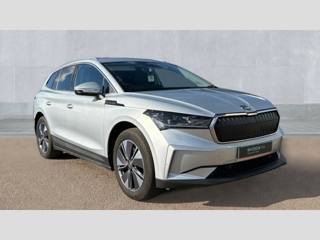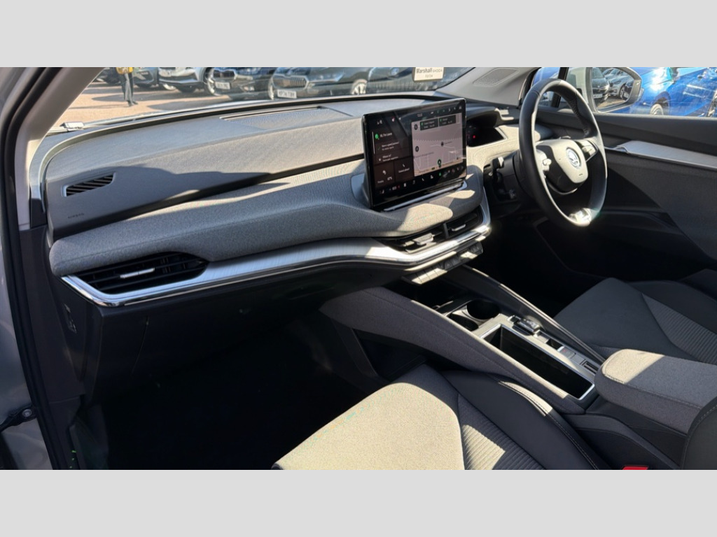 Skoda Enyaq 210kW 85 Edition 82kWh 5dr Auto 13" touchscreen display, Adaptive Cruise Control with traffic jam assist, Blind Spot Detection (BAS), Bluetooth system, Digital cockpit, Drive mode selector, Driver alert system, E-call, Electrically operated tailgate with kick activation (virtual pedal), Electronic engine sound, Exterior temperature indicator, Front and rear parking sensors, Gesture control, Power assist steering, Rear view camera, Satellite navigation system, Skoda Connect iV remote services with charging, air conditioning and smart schedules, Speed assist, Speed limiter, Tailgate unlocking from outside, Traffic sign recognition, Travel assist with emergency assist, lane assist plus with narrow lane assist and urban evasive steering support, Voice control system, Washer fluid level indicator, Wi-Fi hotspot, Wireless charging with cooling function, Wireless smartlink, 135 kW DC charging, 6m mode 3 cable (32A), 8 Speakers, DAB Digital radio, USB-C ports (charging + data) front and rear, Auto dimming rear view mirror, Body colour bumpers, Body colour door mirrors and handles, Chrome roof rails, Chrome side window surrounds, Door mirror memory, Door moulding light in multiple colours, Dynamic headlight range control with cornering light function, Electric adjustable heated folding door mirrors with boarding spots and welcome logo, Electric front and rear windows, Front fog lights, Full LED Matrix beam headlights with variable light distribution, Full LED rear lights with variable lighting functions, Headlight washers, Heat insulating darkened glass in side and rear windows, Heat insulating glass in windshield, Heated rear window, LED daytime running lights, LED third brake light, Light assistant (coming home/tunnel light), Privacy glass and acoustic side windows, Radiator grille in matt black with chrome surround, Rain and light sensors, Rear boot spoiler, Rear side wing doors, Rear window wiper with washer system and intermittent control, Rear wiper, Safety reflectors on front and rear doors, Tow bar preparation, Variable front intermittent wipers, 12V socket in boot, 1x umbrella, 2 spoke black leather heated multi function steering wheel with paddles for recuperation level selection, 3 rear headrests, 3 seat bench in 2nd row, 4 foldable roof handles with rear coat hooks, 60:40 foldable rear seat with sliding adjustment and backrest angle adjustment, Boot lighting, Coat hooks on B pillar, Driver's electric adjustable lumbar support, Electrically adjustable driver seat with memory function, Extended interior noise suspension, Front and rear footwell lighting, Front and rear height adjustable headrests, Front centre armrest, Front courtesy lights, Front headrests, Front reading lights, Glasses storage compartment in front centre armrest, Heated front seats, Height adjustable front passenger seat, High centre console, Interior door handle lighting in front and rear, Isofix child seat fittings in outer rear seats with top tether, Isofix child seat preparation for front passenger seat, Laminated soft-touch plastic knee rest, LED ambient lighting, Manual lumbar support for front passenger seat, Manual rear window blind, Manually adjustable steering column, Pollen filter, Rear reading lights, Rear storage compartment, Single front passenger seat, Sliding boot cover, Sunvisors with illuminated vanity mirrors, Tri zone climate control, Loft design pack - Enyaq, 3 point height adj front seatbelts + pretensioners, Auto door release and activation of warning lights in the event of an accident, Central interaction airbag, Crew protection assist, Driver and front passenger airbags, ESC (incl. ABS+MSR+ASR+EDS+HBA+DSR+RBS+MKB), Front and rear three point safety belt on all seats, Front assist with assisted automatic braking, Front disc brakes, Front passenger airbag deactivation switch, Front side airbags with curtain airbags, Height adjustable seatbelts, Power child locks, Rear drum brakes, Rear side airbags, Single tone horn, Tyre pressure monitor, Visual and acoustic seat belt reminder, Warning lights in front doors, Anti theft alarm system with interior monitoring, backup horn and towing protection, Central locking system with SAFE system, Keyless entry and start/stop system advanced with walk away locking, Anti-theft wheel bolts protection, Tyre repair kit with compressor