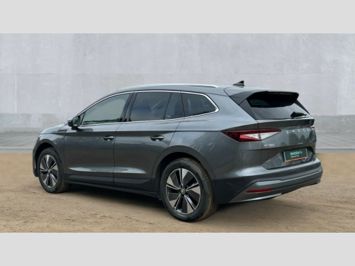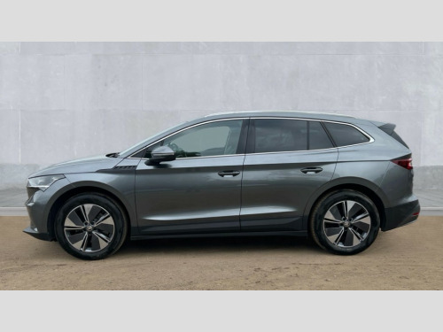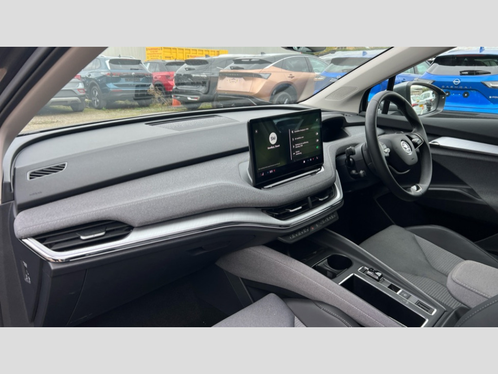 Skoda Enyaq 210kW 85 Edition 82kWh 5dr Auto 13" touchscreen display, Adaptive Cruise Control with traffic jam assist, Blind Spot Detection (BAS), Bluetooth system, Digital cockpit, Drive mode selector, Driver alert system, E-call, Electrically operated tailgate with kick activation (virtual pedal), Electronic engine sound, Exterior temperature indicator, Front and rear parking sensors, Gesture control, Power assist steering, Rear view camera, Satellite navigation system, Skoda Connect iV remote services with charging, air conditioning and smart schedules, Speed assist, Speed limiter, Tailgate unlocking from outside, Traffic sign recognition, Travel assist with emergency assist, lane assist plus with narrow lane assist and urban evasive steering support, Voice control system, Washer fluid level indicator, Wi-Fi hotspot, Wireless charging with cooling function, Wireless smartlink, 135 kW DC charging, 6m mode 3 cable (32A), 8 Speakers, DAB Digital radio, USB-C ports (charging + data) front and rear, Auto dimming rear view mirror, Body colour bumpers, Body colour door mirrors and handles, Chrome roof rails, Chrome side window surrounds, Door mirror memory, Door moulding light in multiple colours, Dynamic headlight range control with cornering light function, Electric adjustable heated folding door mirrors with boarding spots and welcome logo, Electric front and rear windows, Front fog lights, Full LED Matrix beam headlights with variable light distribution, Full LED rear lights with variable lighting functions, Headlight washers, Heat insulating darkened glass in side and rear windows, Heat insulating glass in windshield, Heated rear window, LED daytime running lights, LED third brake light, Light assistant (coming home/tunnel light), Privacy glass and acoustic side windows, Radiator grille in matt black with chrome surround, Rain and light sensors, Rear boot spoiler, Rear side wing doors, Rear window wiper with washer system and intermittent control, Rear wiper, Safety reflectors on front and rear doors, Tow bar preparation, Variable front intermittent wipers, 12V socket in boot, 1x umbrella, 2 spoke black leather heated multi function steering wheel with paddles for recuperation level selection, 3 rear headrests, 3 seat bench in 2nd row, 4 foldable roof handles with rear coat hooks, 60:40 foldable rear seat with sliding adjustment and backrest angle adjustment, Boot lighting, Coat hooks on B pillar, Driver's electric adjustable lumbar support, Electrically adjustable driver seat with memory function, Extended interior noise suspension, Front and rear footwell lighting, Front and rear height adjustable headrests, Front centre armrest, Front courtesy lights, Front headrests, Front reading lights, Glasses storage compartment in front centre armrest, Heated front seats, Height adjustable front passenger seat, High centre console, Interior door handle lighting in front and rear, Isofix child seat fittings in outer rear seats with top tether, Isofix child seat preparation for front passenger seat, Laminated soft-touch plastic knee rest, LED ambient lighting, Manual lumbar support for front passenger seat, Manual rear window blind, Manually adjustable steering column, Pollen filter, Rear reading lights, Rear storage compartment, Single front passenger seat, Sliding boot cover, Sunvisors with illuminated vanity mirrors, Tri zone climate control, Loft design pack - Enyaq, 3 point height adj front seatbelts + pretensioners, Auto door release and activation of warning lights in the event of an accident, Central interaction airbag, Crew protection assist, Driver and front passenger airbags, ESC (incl. ABS+MSR+ASR+EDS+HBA+DSR+RBS+MKB), Front and rear three point safety belt on all seats, Front assist with assisted automatic braking, Front disc brakes, Front passenger airbag deactivation switch, Front side airbags with curtain airbags, Height adjustable seatbelts, Power child locks, Rear drum brakes, Rear side airbags, Single tone horn, Tyre pressure monitor, Visual and acoustic seat belt reminder, Warning lights in front doors, Anti theft alarm system with interior monitoring, backup horn and towing protection, Central locking system with SAFE system, Keyless entry and start/stop system advanced with walk away locking, Anti-theft wheel bolts protection, Tyre repair kit with compressor