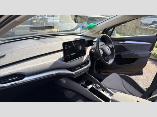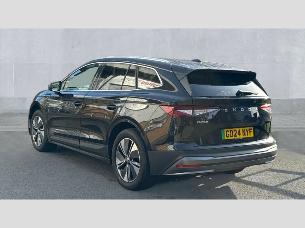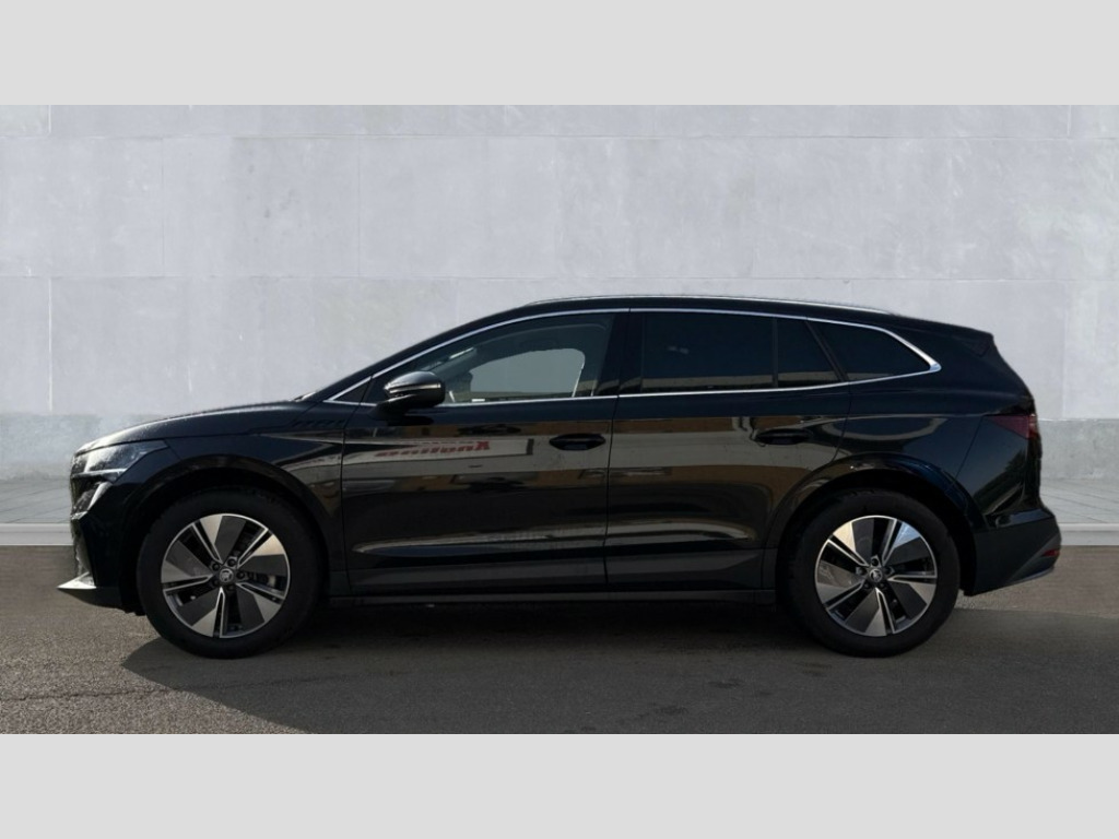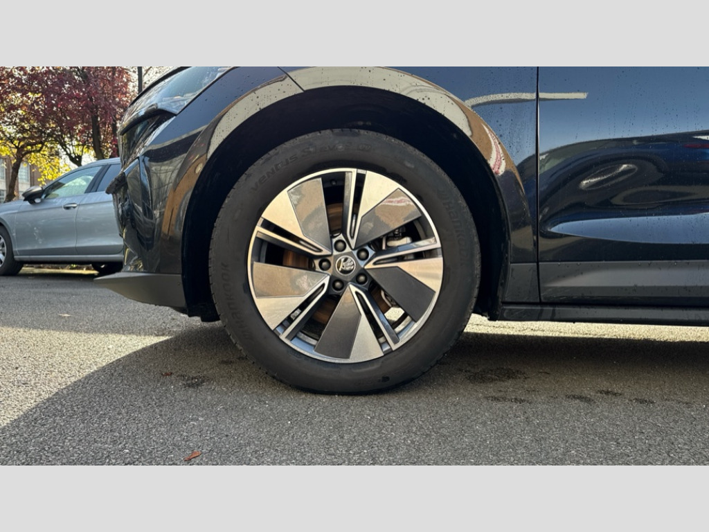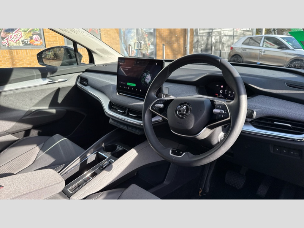 Plus Package 13" touchscreen display, Adaptive Cruise Control with traffic jam assist, Blind Spot Detection (BAS), Bluetooth system, Digital cockpit, Drive mode selector, Driver alert system, E-call, Electrically operated tailgate with kick activation (virtual pedal), Electronic engine sound, Exterior temperature indicator, Front and rear parking sensors, Gesture control, Power assist steering, Rear view camera, Satellite navigation system, Skoda Connect iV remote services with charging, air conditioning and smart schedules, Speed assist, Speed limiter, Tailgate unlocking from outside, Traffic sign recognition, Travel assist with emergency assist, lane assist plus with narrow lane assist and urban evasive steering support, Voice control system, Washer fluid level indicator, Wi-Fi hotspot, Wireless charging with cooling function, Wireless smartlink, 135 kW DC charging, 6m mode 3 cable (32A), 8 Speakers, DAB Digital radio, USB-C ports (charging + data) front and rear, Auto dimming rear view mirror, Body colour bumpers, Body colour door mirrors and handles, Chrome roof rails, Chrome side window surrounds, Door mirror memory, Door moulding light in multiple colours, Dynamic headlight range control with cornering light function, Electric adjustable heated folding door mirrors with boarding spots and welcome logo, Electric front and rear windows, Front fog lights, Full LED Matrix beam headlights with variable light distribution, Full LED rear lights with variable lighting functions, Headlight washers, Heat insulating darkened glass in side and rear windows, Heat insulating glass in windshield, Heated rear window, LED daytime running lights, LED third brake light, Light assistant (coming home/tunnel light), Privacy glass and acoustic side windows, Radiator grille in matt black with chrome surround, Rain and light sensors, Rear boot spoiler, Rear side wing doors, Rear window wiper with washer system and intermittent control, Rear wiper, Safety reflectors on front and rear doors, Tow bar preparation, Variable front intermittent wipers, 12V socket in boot, 1x umbrella, 2 spoke black leather heated multi function steering wheel with paddles for recuperation level selection, 3 rear headrests, 3 seat bench in 2nd row, 4 foldable roof handles with rear coat hooks, 60:40 foldable rear seat with sliding adjustment and backrest angle adjustment, Boot lighting, Coat hooks on B pillar, Driver's electric adjustable lumbar support, Electrically adjustable driver seat with memory function, Extended interior noise suspension, Front and rear footwell lighting, Front and rear height adjustable headrests, Front centre armrest, Front courtesy lights, Front headrests, Front reading lights, Glasses storage compartment in front centre armrest, Heated front seats, Height adjustable front passenger seat, High centre console, Interior door handle lighting in front and rear, Isofix child seat fittings in outer rear seats with top tether, Isofix child seat preparation for front passenger seat, Laminated soft-touch plastic knee rest, LED ambient lighting, Manual lumbar support for front passenger seat, Manual rear window blind, Manually adjustable steering column, Pollen filter, Rear reading lights, Rear storage compartment, Single front passenger seat, Sliding boot cover, Sunvisors with illuminated vanity mirrors, Tri zone climate control, Loft design pack - Enyaq, 3 point height adj front seatbelts + pretensioners, Auto door release and activation of warning lights in the event of an accident, Central interaction airbag, Crew protection assist, Driver and front passenger airbags, ESC (incl. ABS+MSR+ASR+EDS+HBA+DSR+RBS+MKB), Front and rear three point safety belt on all seats, Front assist with assisted automatic braking, Front disc brakes, Front passenger airbag deactivation switch, Front side airbags with curtain airbags, Height adjustable seatbelts, Power child locks, Rear drum brakes, Rear side airbags, Single tone horn, Tyre pressure monitor, Visual and acoustic seat belt reminder, Warning lights in front doors, Anti theft alarm system with interior monitoring, backup horn and towing protection, Central locking system with SAFE system, Keyless entry and start/stop system advanced with walk away locking, Anti-theft wheel bolts protection, Tyre repair kit with compressor