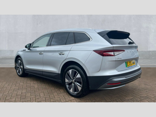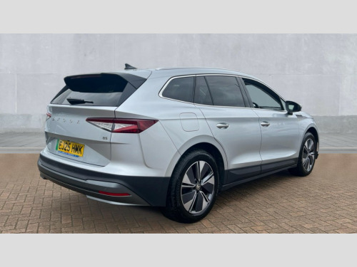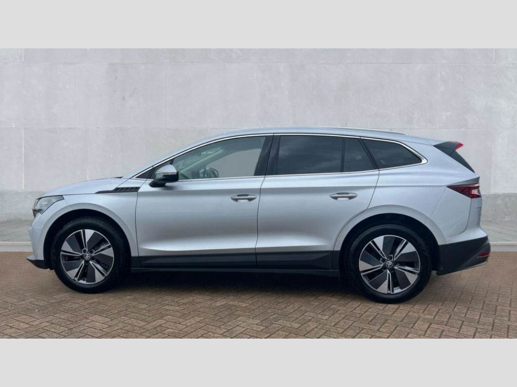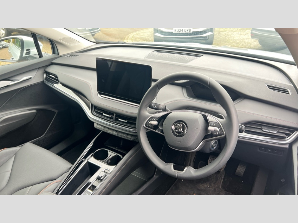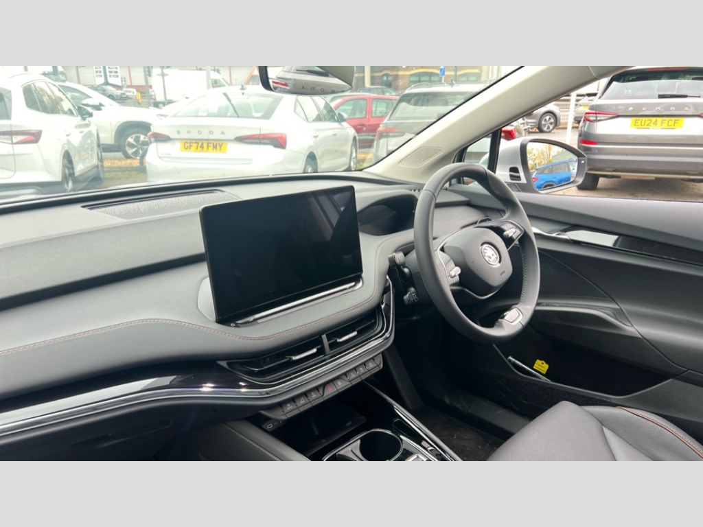 Skoda Enyaq 210kW 85 Edition 82kWh 5dr Auto 13" touchscreen display, Adaptive Cruise Control with traffic jam assist, Blind Spot Detection (BAS), Bluetooth system, Digital cockpit, Drive mode selector, Driver alert system, E-call, Electrically operated tailgate with kick activation (virtual pedal), Electronic engine sound, Exterior temperature indicator, Front and rear parking sensors, Gesture control, Power assist steering, Rear view camera, Satellite navigation system, Skoda Connect iV remote services with charging, air conditioning and smart schedules, Speed assist, Speed limiter, Tailgate unlocking from outside, Traffic sign recognition, Travel assist with emergency assist, lane assist plus with narrow lane assist and urban evasive steering support, Voice control system, Washer fluid level indicator, Wi-Fi hotspot, Wireless charging with cooling function, Wireless smartlink, 135 kW DC charging, 6m mode 3 cable (32A), 8 Speakers, DAB Digital radio, USB-C ports (charging + data) front and rear, Auto dimming rear view mirror, Body colour bumpers, Body colour door mirrors and handles, Chrome roof rails, Chrome side window surrounds, Door mirror memory, Door moulding light in multiple colours, Dynamic headlight range control with cornering light function, Electric adjustable heated folding door mirrors with boarding spots and welcome logo, Electric front and rear windows, Front fog lights, Full LED Matrix beam headlights with variable light distribution, Full LED rear lights with variable lighting functions, Headlight washers, Heat insulating darkened glass in side and rear windows, Heat insulating glass in windshield, Heated rear window, LED daytime running lights, LED third brake light, Light assistant (coming home/tunnel light), Privacy glass and acoustic side windows, Radiator grille in matt black with chrome surround, Rain and light sensors, Rear boot spoiler, Rear side wing doors, Rear window wiper with washer system and intermittent control, Rear wiper, Safety reflectors on front and rear doors, Tow bar preparation, Variable front intermittent wipers, 12V socket in boot, 1x umbrella, 2 spoke black leather heated multi function steering wheel with paddles for recuperation level selection, 3 rear headrests, 3 seat bench in 2nd row, 4 foldable roof handles with rear coat hooks, 60:40 foldable rear seat with sliding adjustment and backrest angle adjustment, Boot lighting, Coat hooks on B pillar, Driver's electric adjustable lumbar support, Electrically adjustable driver seat with memory function, Extended interior noise suspension, Front and rear footwell lighting, Front and rear height adjustable headrests, Front centre armrest, Front courtesy lights, Front headrests, Front reading lights, Glasses storage compartment in front centre armrest, Heated front seats, Height adjustable front passenger seat, High centre console, Interior door handle lighting in front and rear, Isofix child seat fittings in outer rear seats with top tether, Isofix child seat preparation for front passenger seat, Laminated soft-touch plastic knee rest, LED ambient lighting, Manual lumbar support for front passenger seat, Manual rear window blind, Manually adjustable steering column, Pollen filter, Rear reading lights, Rear storage compartment, Single front passenger seat, Sliding boot cover, Sunvisors with illuminated vanity mirrors, Tri zone climate control, Loft design pack - Enyaq, 3 point height adj front seatbelts + pretensioners, Auto door release and activation of warning lights in the event of an accident, Central interaction airbag, Crew protection assist, Driver and front passenger airbags, ESC (incl. ABS+MSR+ASR+EDS+HBA+DSR+RBS+MKB), Front and rear three point safety belt on all seats, Front assist with assisted automatic braking, Front disc brakes, Front passenger airbag deactivation switch, Front side airbags with curtain airbags, Height adjustable seatbelts, Power child locks, Rear drum brakes, Rear side airbags, Single tone horn, Tyre pressure monitor, Visual and acoustic seat belt reminder, Warning lights in front doors, Anti theft alarm system with interior monitoring, backup horn and towing protection, Central locking system with SAFE system, Keyless entry and start/stop system advanced with walk away locking, 19" Regulus alloy wheels, Anti-theft wheel bolts protection, Tyre repair kit with compressor