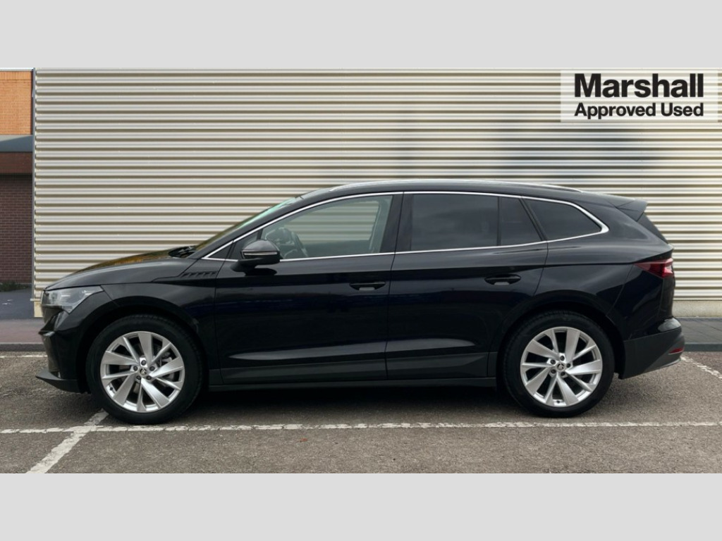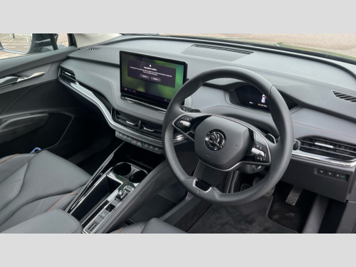 Skoda Enyaq 210kW 85 Edition 82kWh 5dr Auto 13" touchscreen display, Adaptive Cruise Control with traffic jam assist, Blind Spot Detection (BAS), Bluetooth system, Digital cockpit, Drive mode selector, Driver alert system, E-call, Electrically operated tailgate with kick activation (virtual pedal), Electronic engine sound, Exterior temperature indicator, Front and rear parking sensors, Gesture control, Power assist steering, Rear view camera, Satellite navigation system, Skoda Connect iV remote services with charging, air conditioning and smart schedules, Speed assist, Speed limiter, Tailgate unlocking from outside, Traffic sign recognition, Travel assist with emergency assist, lane assist plus with narrow lane assist and urban evasive steering support, Voice control system, Washer fluid level indicator, Wi-Fi hotspot, Wireless charging with cooling function, Wireless smartlink, 135 kW DC charging, 6m mode 3 cable (32A), 8 Speakers, DAB Digital radio, USB-C ports (charging + data) front and rear, Auto dimming rear view mirror, Body colour bumpers, Body colour door mirrors and handles, Chrome roof rails, Chrome side window surrounds, Door mirror memory, Door moulding light in multiple colours, Dynamic headlight range control with cornering light function, Electric adjustable heated folding door mirrors with boarding spots and welcome logo, Electric front and rear windows, Front fog lights, Full LED Matrix beam headlights with variable light distribution, Full LED rear lights with variable lighting functions, Headlight washers, Heat insulating darkened glass in side and rear windows, Heat insulating glass in windshield, Heated rear window, LED daytime running lights, LED third brake light, Light assistant (coming home/tunnel light), Privacy glass and acoustic side windows, Radiator grille in matt black with chrome surround, Rain and light sensors, Rear boot spoiler, Rear side wing doors, Rear window wiper with washer system and intermittent control, Rear wiper, Safety reflectors on front and rear doors, Tow bar preparation, Variable front intermittent wipers, 12V socket in boot, 1x umbrella, 2 spoke black leather heated multi function steering wheel with paddles for recuperation level selection, 3 rear headrests, 3 seat bench in 2nd row, 4 foldable roof handles with rear coat hooks, 60:40 foldable rear seat with sliding adjustment and backrest angle adjustment, Boot lighting, Coat hooks on B pillar, Driver's electric adjustable lumbar support, Electrically adjustable driver seat with memory function, Extended interior noise suspension, Front and rear footwell lighting, Front and rear height adjustable headrests, Front centre armrest, Front courtesy lights, Front headrests, Front reading lights, Glasses storage compartment in front centre armrest, Heated front seats, Height adjustable front passenger seat, High centre console, Interior door handle lighting in front and rear, Isofix child seat fittings in outer rear seats with top tether, Isofix child seat preparation for front passenger seat, Laminated soft-touch plastic knee rest, LED ambient lighting, Manual lumbar support for front passenger seat, Manual rear window blind, Manually adjustable steering column, Pollen filter, Rear reading lights, Rear storage compartment, Single front passenger seat, Sliding boot cover, Sunvisors with illuminated vanity mirrors, Tri zone climate control, Loft design pack - Enyaq, 3 point height adj front seatbelts + pretensioners, Auto door release and activation of warning lights in the event of an accident, Central interaction airbag, Crew protection assist, Driver and front passenger airbags, ESC (incl. ABS+MSR+ASR+EDS+HBA+DSR+RBS+MKB), Front and rear three point safety belt on all seats, Front assist with assisted automatic braking, Front disc brakes, Front passenger airbag deactivation switch, Front side airbags with curtain airbags, Height adjustable seatbelts, Power child locks, Rear drum brakes, Rear side airbags, Single tone horn, Tyre pressure monitor, Visual and acoustic seat belt reminder, Warning lights in front doors, Anti theft alarm system with interior monitoring, backup horn and towing protection, Central locking system with SAFE system, Keyless entry and start/stop system advanced with walk away locking, 19" Regulus alloy wheels, Anti-theft wheel bolts protection, Tyre repair kit with compressor