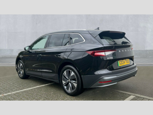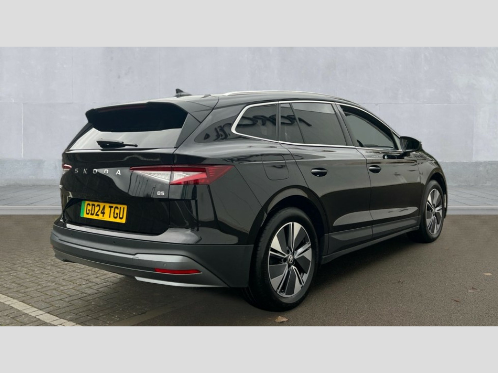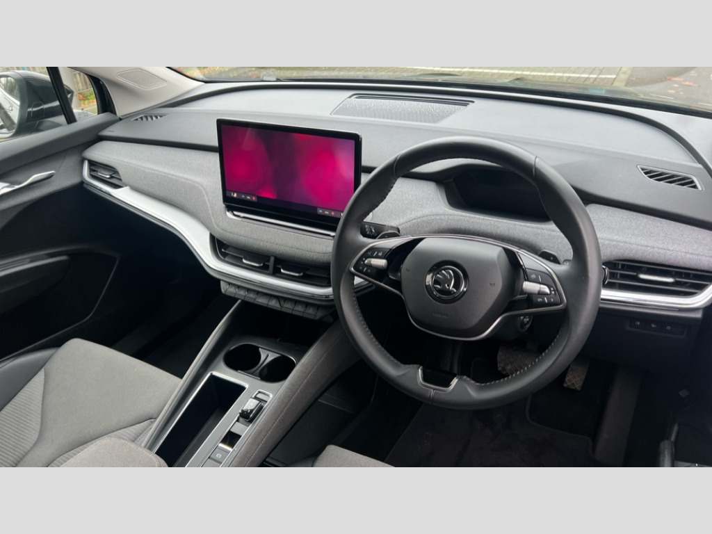Skoda Enyaq 210kW 85 Edition 82kWh 5dr Auto 13" touchscreen display, Adaptive Cruise Control with traffic jam assist, Blind Spot Detection (BAS), Bluetooth system, Digital cockpit, Drive mode selector, Driver alert system, E-call, Electrically operated tailgate with kick activation (virtual pedal), Electronic engine sound, Exterior temperature indicator, Front and rear parking sensors, Gesture control, Power assist steering, Rear view camera, Satellite navigation system, Skoda Connect iV remote services with charging, air conditioning and smart schedules, Speed assist, Speed limiter, Tailgate unlocking from outside, Traffic sign recognition, Travel assist with emergency assist, lane assist plus with narrow lane assist and urban evasive steering support, Voice control system, Washer fluid level indicator, Wi-Fi hotspot, Wireless charging with cooling function, Wireless smartlink, 135 kW DC charging, 6m mode 3 cable (32A), 8 Speakers, DAB Digital radio, USB-C ports (charging + data) front and rear, Auto dimming rear view mirror, Body colour bumpers, Body colour door mirrors and handles, Chrome roof rails, Chrome side window surrounds, Door mirror memory, Door moulding light in multiple colours, Dynamic headlight range control with cornering light function, Electric adjustable heated folding door mirrors with boarding spots and welcome logo, Electric front and rear windows, Front fog lights, Full LED Matrix beam headlights with variable light distribution, Full LED rear lights with variable lighting functions, Headlight washers, Heat insulating darkened glass in side and rear windows, Heat insulating glass in windshield, Heated rear window, LED daytime running lights, LED third brake light, Light assistant (coming home/tunnel light), Privacy glass and acoustic side windows, Radiator grille in matt black with chrome surround, Rain and light sensors, Rear boot spoiler, Rear side wing doors, Rear window wiper with washer system and intermittent control, Rear wiper, Safety reflectors on front and rear doors, Tow bar preparation, Variable front intermittent wipers, 12V socket in boot, 1x umbrella, 2 spoke black leather heated multi function steering wheel with paddles for recuperation level selection, 3 rear headrests, 3 seat bench in 2nd row, 4 foldable roof handles with rear coat hooks, 60:40 foldable rear seat with sliding adjustment and backrest angle adjustment, Boot lighting, Coat hooks on B pillar, Driver's electric adjustable lumbar support, Electrically adjustable driver seat with memory function, Extended interior noise suspension, Front and rear footwell lighting, Front and rear height adjustable headrests, Front centre armrest, Front courtesy lights, Front headrests, Front reading lights, Glasses storage compartment in front centre armrest, Heated front seats, Height adjustable front passenger seat, High centre console, Interior door handle lighting in front and rear, Isofix child seat fittings in outer rear seats with top tether, Isofix child seat preparation for front passenger seat, Laminated soft-touch plastic knee rest, LED ambient lighting, Manual lumbar support for front passenger seat, Manual rear window blind, Manually adjustable steering column, Pollen filter, Rear reading lights, Rear storage compartment, Single front passenger seat, Sliding boot cover, Sunvisors with illuminated vanity mirrors, Tri zone climate control, Loft design pack - Enyaq, 3 point height adj front seatbelts + pretensioners, Auto door release and activation of warning lights in the event of an accident, Central interaction airbag, Crew protection assist, Driver and front passenger airbags, ESC (incl. ABS+MSR+ASR+EDS+HBA+DSR+RBS+MKB), Front and rear three point safety belt on all seats, Front assist with assisted automatic braking, Front disc brakes, Front passenger airbag deactivation switch, Front side airbags with curtain airbags, Height adjustable seatbelts, Power child locks, Rear drum brakes, Rear side airbags, Single tone horn, Tyre pressure monitor, Visual and acoustic seat belt reminder, Warning lights in front doors, Anti theft alarm system with interior monitoring, backup horn and towing protection, Central locking system with SAFE system, Keyless entry and start/stop system advanced with walk away locking, Anti-theft wheel bolts protection, Tyre repair kit with compressor