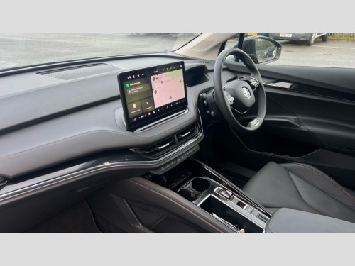 Skoda Enyaq 210kW 85 Edition 82kWh 5dr Auto 13" touchscreen display, Adaptive Cruise Control with traffic jam assist, Blind Spot Detection (BAS), Bluetooth system, Digital cockpit, Drive mode selector, Driver alert system, E-call, Electrically operated tailgate with kick activation (virtual pedal), Electronic engine sound, Exterior temperature indicator, Front and rear parking sensors, Gesture control, Power assist steering, Rear view camera, Satellite navigation system, Skoda Connect iV remote services with charging, air conditioning and smart schedules, Speed assist, Speed limiter, Tailgate unlocking from outside, Traffic sign recognition, Travel assist with emergency assist, lane assist plus with narrow lane assist and urban evasive steering support, Voice control system, Washer fluid level indicator, Wi-Fi hotspot, Wireless charging with cooling function, Wireless smartlink, 135 kW DC charging, 6m mode 3 cable (32A), 8 Speakers, DAB Digital radio, USB-C ports (charging + data) front and rear, Auto dimming rear view mirror, Body colour bumpers, Body colour door mirrors and handles, Chrome roof rails, Chrome side window surrounds, Door mirror memory, Door moulding light in multiple colours, Dynamic headlight range control with cornering light function, Electric adjustable heated folding door mirrors with boarding spots and welcome logo, Electric front and rear windows, Front fog lights, Full LED Matrix beam headlights with variable light distribution, Full LED rear lights with variable lighting functions, Headlight washers, Heat insulating darkened glass in side and rear windows, Heat insulating glass in windshield, Heated rear window, LED daytime running lights, LED third brake light, Light assistant (coming home/tunnel light), Privacy glass and acoustic side windows, Radiator grille in matt black with chrome surround, Rain and light sensors, Rear boot spoiler, Rear side wing doors, Rear window wiper with washer system and intermittent control, Rear wiper, Safety reflectors on front and rear doors, Tow bar preparation, Variable front intermittent wipers, 12V socket in boot, 1x umbrella, 2 spoke black leather heated multi function steering wheel with paddles for recuperation level selection, 3 rear headrests, 3 seat bench in 2nd row, 4 foldable roof handles with rear coat hooks, 60:40 foldable rear seat with sliding adjustment and backrest angle adjustment, Boot lighting, Coat hooks on B pillar, Driver's electric adjustable lumbar support, Electrically adjustable driver seat with memory function, Extended interior noise suspension, Front and rear footwell lighting, Front and rear height adjustable headrests, Front centre armrest, Front courtesy lights, Front headrests, Front reading lights, Glasses storage compartment in front centre armrest, Heated front seats, Height adjustable front passenger seat, High centre console, Interior door handle lighting in front and rear, Isofix child seat fittings in outer rear seats with top tether, Isofix child seat preparation for front passenger seat, Laminated soft-touch plastic knee rest, LED ambient lighting, Manual lumbar support for front passenger seat, Manual rear window blind, Manually adjustable steering column, Pollen filter, Rear reading lights, Rear storage compartment, Single front passenger seat, Sliding boot cover, Sunvisors with illuminated vanity mirrors, Tri zone climate control, Loft design pack - Enyaq, 3 point height adj front seatbelts + pretensioners, Auto door release and activation of warning lights in the event of an accident, Central interaction airbag, Crew protection assist, Driver and front passenger airbags, ESC (incl. ABS+MSR+ASR+EDS+HBA+DSR+RBS+MKB), Front and rear three point safety belt on all seats, Front assist with assisted automatic braking, Front disc brakes, Front passenger airbag deactivation switch, Front side airbags with curtain airbags, Height adjustable seatbelts, Power child locks, Rear drum brakes, Rear side airbags, Single tone horn, Tyre pressure monitor, Visual and acoustic seat belt reminder, Warning lights in front doors, Anti theft alarm system with interior monitoring, backup horn and towing protection, Central locking system with SAFE system, Keyless entry and start/stop system advanced with walk away locking, 19" Regulus alloy wheels, Anti-theft wheel bolts protection, Tyre repair kit with compressor