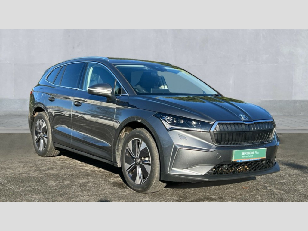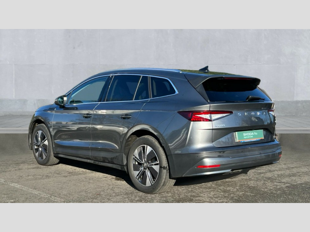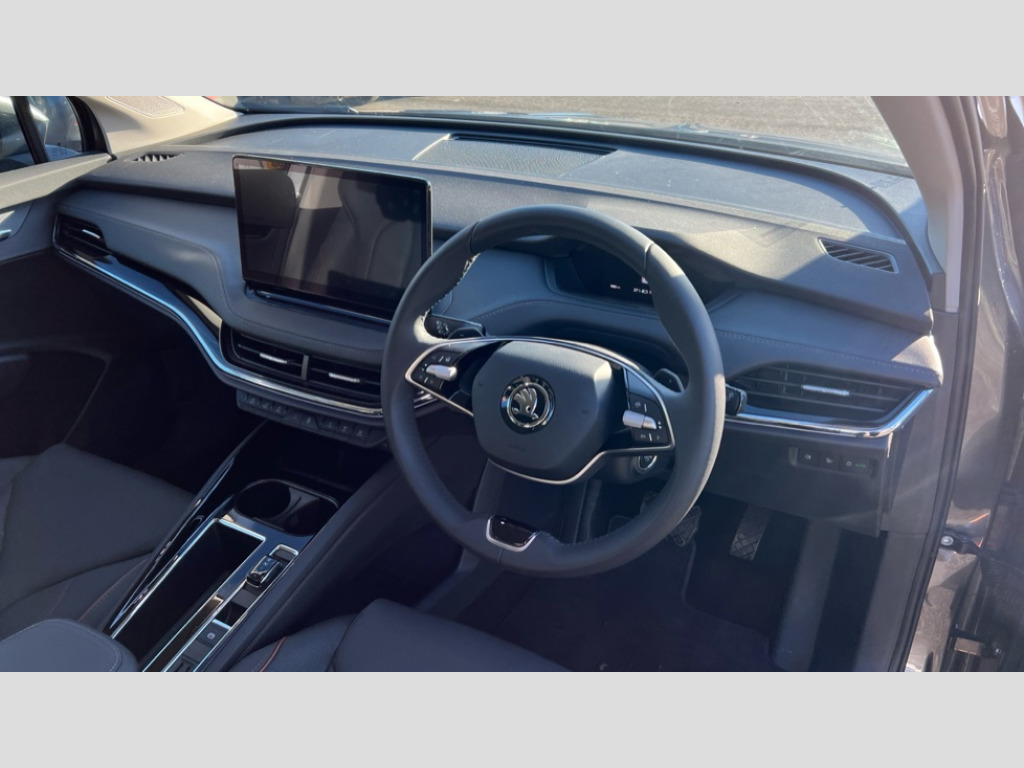 Skoda Enyaq 210kW 85 Edition 82kWh 5dr Auto 13" touchscreen display, Adaptive Cruise Control with traffic jam assist, Blind Spot Detection (BAS), Bluetooth system, Digital cockpit, Drive mode selector, Driver alert system, E-call, Electrically operated tailgate with kick activation (virtual pedal), Electronic engine sound, Exterior temperature indicator, Front and rear parking sensors, Gesture control, Power assist steering, Rear view camera, Satellite navigation system, Skoda Connect iV remote services with charging, air conditioning and smart schedules, Speed assist, Speed limiter, Tailgate unlocking from outside, Traffic sign recognition, Travel assist with emergency assist, lane assist plus with narrow lane assist and urban evasive steering support, Voice control system, Washer fluid level indicator, Wi-Fi hotspot, Wireless charging with cooling function, Wireless smartlink, 135 kW DC charging, 6m mode 3 cable (32A), 8 Speakers, DAB Digital radio, USB-C ports (charging + data) front and rear, Auto dimming rear view mirror, Body colour bumpers, Body colour door mirrors and handles, Chrome roof rails, Chrome side window surrounds, Door mirror memory, Door moulding light in multiple colours, Dynamic headlight range control with cornering light function, Electric adjustable heated folding door mirrors with boarding spots and welcome logo, Electric front and rear windows, Front fog lights, Full LED Matrix beam headlights with variable light distribution, Full LED rear lights with variable lighting functions, Headlight washers, Heat insulating darkened glass in side and rear windows, Heat insulating glass in windshield, Heated rear window, LED daytime running lights, LED third brake light, Light assistant (coming home/tunnel light), Privacy glass and acoustic side windows, Radiator grille in matt black with chrome surround, Rain and light sensors, Rear boot spoiler, Rear side wing doors, Rear window wiper with washer system and intermittent control, Rear wiper, Safety reflectors on front and rear doors, Tow bar preparation, Variable front intermittent wipers, 12V socket in boot, 1x umbrella, 2 spoke black leather heated multi function steering wheel with paddles for recuperation level selection, 3 rear headrests, 3 seat bench in 2nd row, 4 foldable roof handles with rear coat hooks, 60:40 foldable rear seat with sliding adjustment and backrest angle adjustment, Boot lighting, Coat hooks on B pillar, Driver's electric adjustable lumbar support, Electrically adjustable driver seat with memory function, Extended interior noise suspension, Front and rear footwell lighting, Front and rear height adjustable headrests, Front centre armrest, Front courtesy lights, Front headrests, Front reading lights, Glasses storage compartment in front centre armrest, Heated front seats, Height adjustable front passenger seat, High centre console, Interior door handle lighting in front and rear, Isofix child seat fittings in outer rear seats with top tether, Isofix child seat preparation for front passenger seat, Laminated soft-touch plastic knee rest, LED ambient lighting, Manual lumbar support for front passenger seat, Manual rear window blind, Manually adjustable steering column, Pollen filter, Rear reading lights, Rear storage compartment, Single front passenger seat, Sliding boot cover, Sunvisors with illuminated vanity mirrors, Tri zone climate control, Loft design pack - Enyaq, 3 point height adj front seatbelts + pretensioners, Auto door release and activation of warning lights in the event of an accident, Central interaction airbag, Crew protection assist, Driver and front passenger airbags, ESC (incl. ABS+MSR+ASR+EDS+HBA+DSR+RBS+MKB), Front and rear three point safety belt on all seats, Front assist with assisted automatic braking, Front disc brakes, Front passenger airbag deactivation switch, Front side airbags with curtain airbags, Height adjustable seatbelts, Power child locks, Rear drum brakes, Rear side airbags, Single tone horn, Tyre pressure monitor, Visual and acoustic seat belt reminder, Warning lights in front doors, Anti theft alarm system with interior monitoring, backup horn and towing protection, Central locking system with SAFE system, Keyless entry and start/stop system advanced with walk away locking, 19" Regulus alloy wheels, Anti-theft wheel bolts protection, Tyre repair kit with compressor