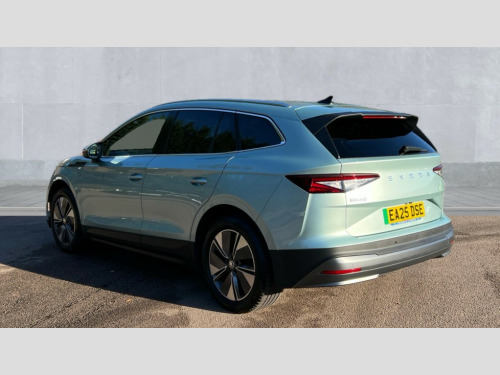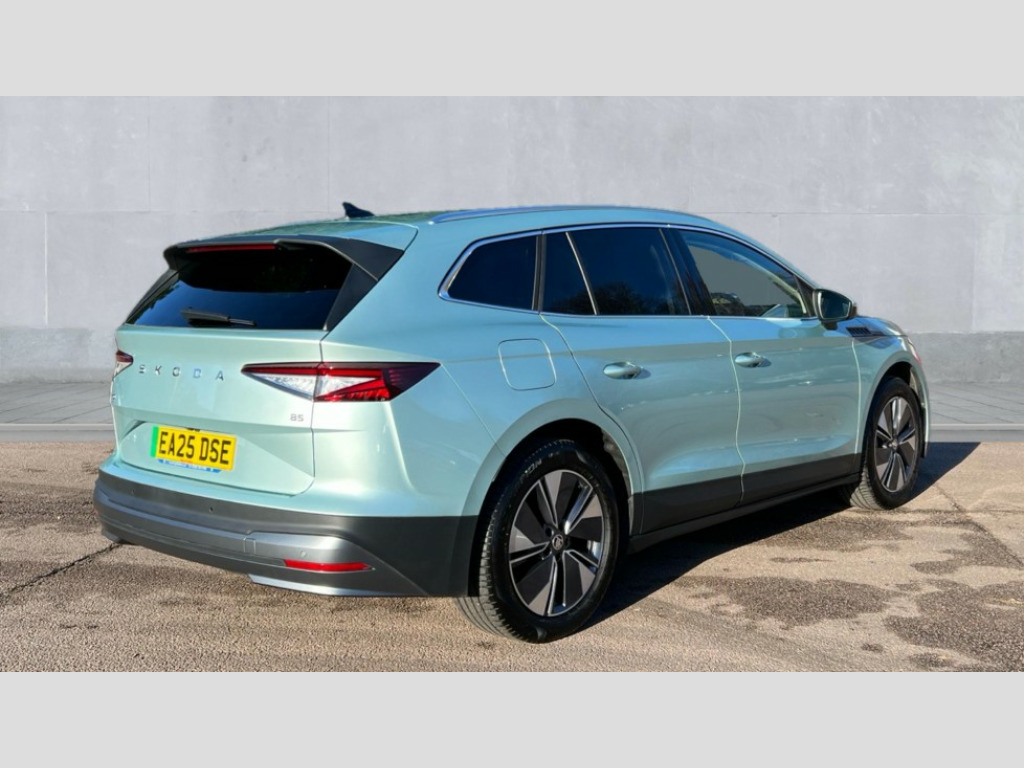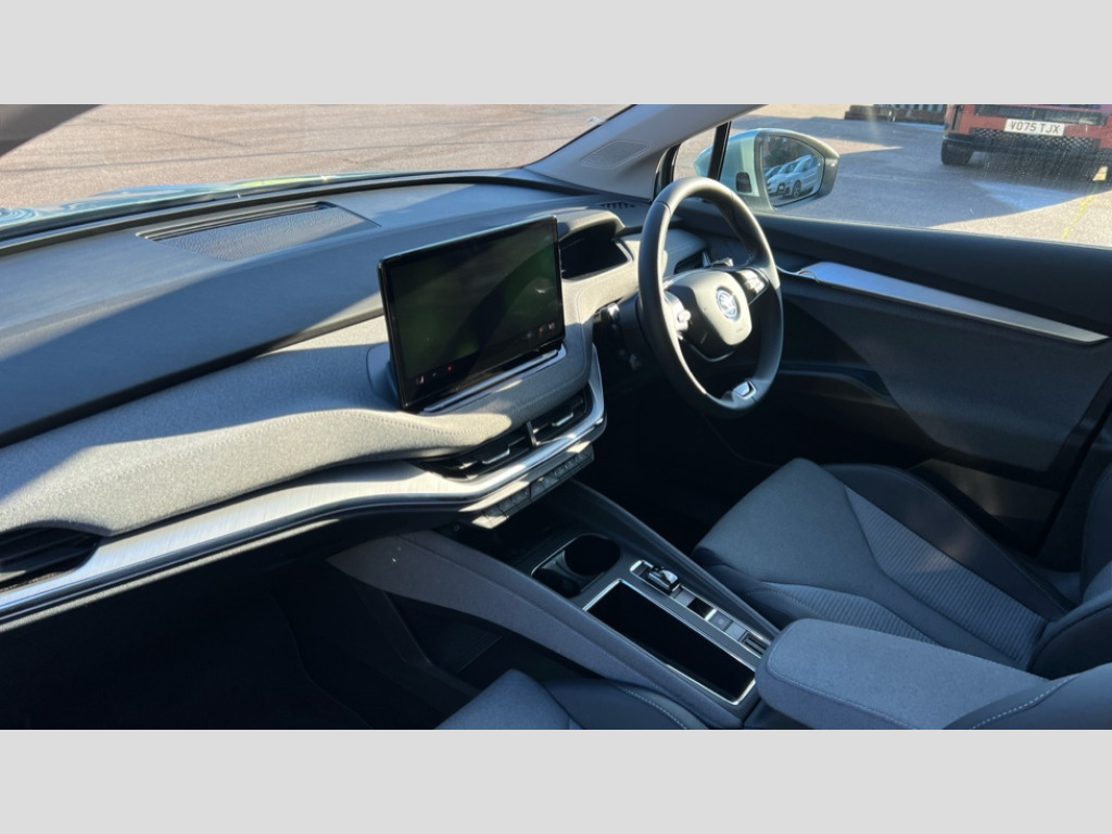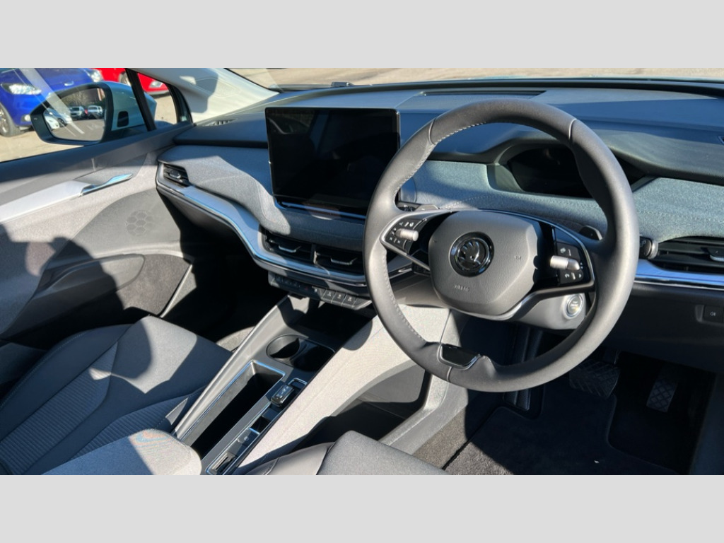 Skoda Enyaq 210kW 85 Edition 82kWh 5dr Auto 13" touchscreen display, Adaptive Cruise Control with traffic jam assist, Blind Spot Detection (BAS), Bluetooth system, Digital cockpit, Drive mode selector, Driver alert system, E-call, Electrically operated tailgate with kick activation (virtual pedal), Electronic engine sound, Exterior temperature indicator, Front and rear parking sensors, Gesture control, Power assist steering, Rear view camera, Satellite navigation system, Skoda Connect iV remote services with charging, air conditioning and smart schedules, Speed assist, Speed limiter, Tailgate unlocking from outside, Traffic sign recognition, Travel assist with emergency assist, lane assist plus with narrow lane assist and urban evasive steering support, Voice control system, Washer fluid level indicator, Wi-Fi hotspot, Wireless charging with cooling function, Wireless smartlink, 135 kW DC charging, 6m mode 3 cable (32A), 8 Speakers, DAB Digital radio, USB-C ports (charging + data) front and rear, Auto dimming rear view mirror, Body colour bumpers, Body colour door mirrors and handles, Chrome roof rails, Chrome side window surrounds, Door mirror memory, Door moulding light in multiple colours, Dynamic headlight range control with cornering light function, Electric adjustable heated folding door mirrors with boarding spots and welcome logo, Electric front and rear windows, Front fog lights, Full LED Matrix beam headlights with variable light distribution, Full LED rear lights with variable lighting functions, Headlight washers, Heat insulating darkened glass in side and rear windows, Heat insulating glass in windshield, Heated rear window, LED daytime running lights, LED third brake light, Light assistant (coming home/tunnel light), Privacy glass and acoustic side windows, Radiator grille in matt black with chrome surround, Rain and light sensors, Rear boot spoiler, Rear side wing doors, Rear window wiper with washer system and intermittent control, Rear wiper, Safety reflectors on front and rear doors, Tow bar preparation, Variable front intermittent wipers, 12V socket in boot, 1x umbrella, 2 spoke black leather heated multi function steering wheel with paddles for recuperation level selection, 3 rear headrests, 3 seat bench in 2nd row, 4 foldable roof handles with rear coat hooks, 60:40 foldable rear seat with sliding adjustment and backrest angle adjustment, Boot lighting, Coat hooks on B pillar, Driver's electric adjustable lumbar support, Electrically adjustable driver seat with memory function, Extended interior noise suspension, Front and rear footwell lighting, Front and rear height adjustable headrests, Front centre armrest, Front courtesy lights, Front headrests, Front reading lights, Glasses storage compartment in front centre armrest, Heated front seats, Height adjustable front passenger seat, High centre console, Interior door handle lighting in front and rear, Isofix child seat fittings in outer rear seats with top tether, Isofix child seat preparation for front passenger seat, Laminated soft-touch plastic knee rest, LED ambient lighting, Manual lumbar support for front passenger seat, Manual rear window blind, Manually adjustable steering column, Pollen filter, Rear reading lights, Rear storage compartment, Single front passenger seat, Sliding boot cover, Sunvisors with illuminated vanity mirrors, Tri zone climate control, Loft design pack - Enyaq, 3 point height adj front seatbelts + pretensioners, Auto door release and activation of warning lights in the event of an accident, Central interaction airbag, Crew protection assist, Driver and front passenger airbags, ESC (incl. ABS+MSR+ASR+EDS+HBA+DSR+RBS+MKB), Front and rear three point safety belt on all seats, Front assist with assisted automatic braking, Front disc brakes, Front passenger airbag deactivation switch, Front side airbags with curtain airbags, Height adjustable seatbelts, Power child locks, Rear drum brakes, Rear side airbags, Single tone horn, Tyre pressure monitor, Visual and acoustic seat belt reminder, Warning lights in front doors, Anti theft alarm system with interior monitoring, backup horn and towing protection, Central locking system with SAFE system, Keyless entry and start/stop system advanced with walk away locking, 19" Regulus alloy wheels, Anti-theft wheel bolts protection, Tyre repair kit with compressor