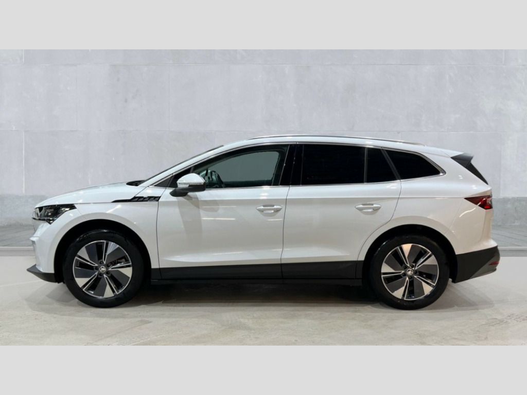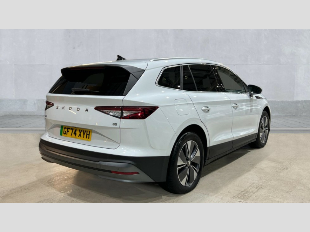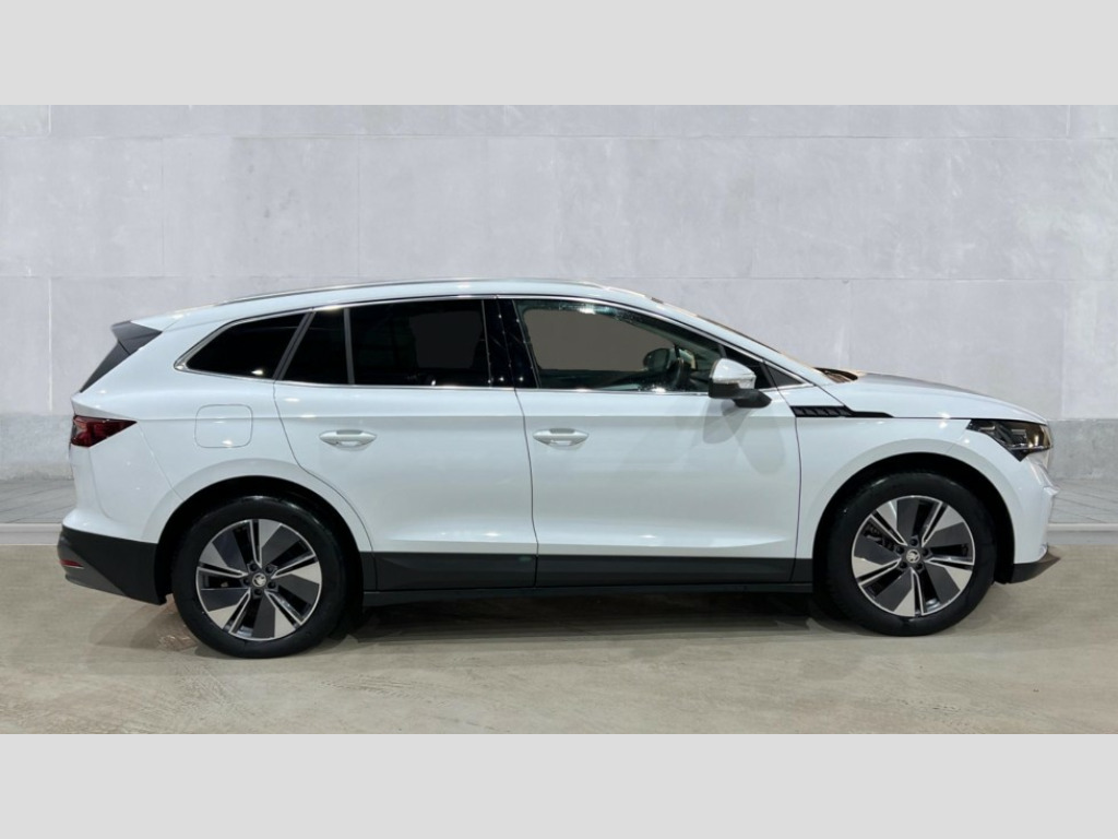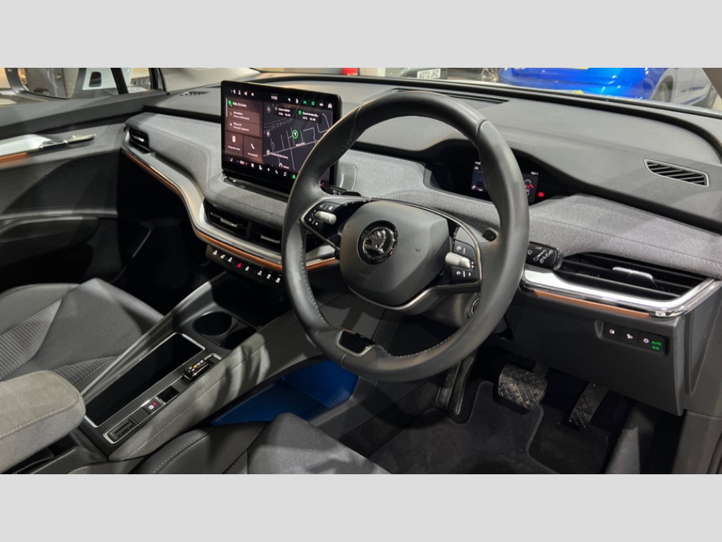 Skoda Enyaq 210kW 85 Edition 82kWh 5dr Auto 13" touchscreen display, Adaptive Cruise Control with traffic jam assist, Blind Spot Detection (BAS), Bluetooth system, Digital cockpit, Drive mode selector, Driver alert system, E-call, Electrically operated tailgate with kick activation (virtual pedal), Electronic engine sound, Exterior temperature indicator, Front and rear parking sensors, Gesture control, Power assist steering, Rear view camera, Satellite navigation system, Skoda Connect iV remote services with charging, air conditioning and smart schedules, Speed assist, Speed limiter, Tailgate unlocking from outside, Traffic sign recognition, Travel assist with emergency assist, lane assist plus with narrow lane assist and urban evasive steering support, Voice control system, Washer fluid level indicator, Wi-Fi hotspot, Wireless charging with cooling function, Wireless smartlink, 135 kW DC charging, 6m mode 3 cable (32A), 8 Speakers, DAB Digital radio, USB-C ports (charging + data) front and rear, Auto dimming rear view mirror, Body colour bumpers, Body colour door mirrors and handles, Chrome roof rails, Chrome side window surrounds, Door mirror memory, Door moulding light in multiple colours, Dynamic headlight range control with cornering light function, Electric adjustable heated folding door mirrors with boarding spots and welcome logo, Electric front and rear windows, Front fog lights, Full LED Matrix beam headlights with variable light distribution, Full LED rear lights with variable lighting functions, Headlight washers, Heat insulating darkened glass in side and rear windows, Heat insulating glass in windshield, Heated rear window, LED daytime running lights, LED third brake light, Light assistant (coming home/tunnel light), Privacy glass and acoustic side windows, Radiator grille in matt black with chrome surround, Rain and light sensors, Rear boot spoiler, Rear side wing doors, Rear window wiper with washer system and intermittent control, Rear wiper, Safety reflectors on front and rear doors, Tow bar preparation, Variable front intermittent wipers, 12V socket in boot, 1x umbrella, 2 spoke black leather heated multi function steering wheel with paddles for recuperation level selection, 3 rear headrests, 3 seat bench in 2nd row, 4 foldable roof handles with rear coat hooks, 60:40 foldable rear seat with sliding adjustment and backrest angle adjustment, Boot lighting, Coat hooks on B pillar, Driver's electric adjustable lumbar support, Electrically adjustable driver seat with memory function, Extended interior noise suspension, Front and rear footwell lighting, Front and rear height adjustable headrests, Front centre armrest, Front courtesy lights, Front headrests, Front reading lights, Glasses storage compartment in front centre armrest, Heated front seats, Height adjustable front passenger seat, High centre console, Interior door handle lighting in front and rear, Isofix child seat fittings in outer rear seats with top tether, Isofix child seat preparation for front passenger seat, Laminated soft-touch plastic knee rest, LED ambient lighting, Manual lumbar support for front passenger seat, Manual rear window blind, Manually adjustable steering column, Pollen filter, Rear reading lights, Rear storage compartment, Single front passenger seat, Sliding boot cover, Sunvisors with illuminated vanity mirrors, Tri zone climate control, Loft design pack - Enyaq, 3 point height adj front seatbelts + pretensioners, Auto door release and activation of warning lights in the event of an accident, Central interaction airbag, Crew protection assist, Driver and front passenger airbags, ESC (incl. ABS+MSR+ASR+EDS+HBA+DSR+RBS+MKB), Front and rear three point safety belt on all seats, Front assist with assisted automatic braking, Front disc brakes, Front passenger airbag deactivation switch, Front side airbags with curtain airbags, Height adjustable seatbelts, Power child locks, Rear drum brakes, Rear side airbags, Single tone horn, Tyre pressure monitor, Visual and acoustic seat belt reminder, Warning lights in front doors, Anti theft alarm system with interior monitoring, backup horn and towing protection, Central locking system with SAFE system, Keyless entry and start/stop system advanced with walk away locking, Anti-theft wheel bolts protection, Tyre repair kit with compressor