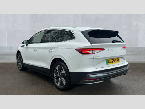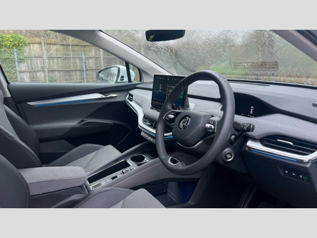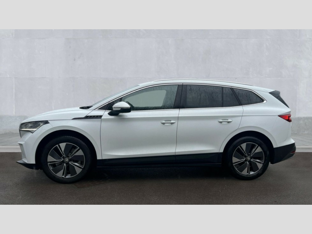 Skoda Enyaq 210kW 85 Edition 82kWh 5dr Auto 13" touchscreen display, Adaptive Cruise Control with traffic jam assist, Blind Spot Detection (BAS), Bluetooth system, Digital cockpit, Drive mode selector, Driver alert system, E-call, Electrically operated tailgate with kick activation (virtual pedal), Electronic engine sound, Exterior temperature indicator, Front and rear parking sensors, Gesture control, Power assist steering, Rear view camera, Satellite navigation system, Skoda Connect iV remote services with charging, air conditioning and smart schedules, Speed assist, Speed limiter, Tailgate unlocking from outside, Traffic sign recognition, Travel assist with emergency assist, lane assist plus with narrow lane assist and urban evasive steering support, Voice control system, Washer fluid level indicator, Wi-Fi hotspot, Wireless charging with cooling function, Wireless smartlink, 135 kW DC charging, 6m mode 3 cable (32A), 8 Speakers, DAB Digital radio, USB-C ports (charging + data) front and rear, Auto dimming rear view mirror, Body colour bumpers, Body colour door mirrors and handles, Chrome roof rails, Chrome side window surrounds, Door mirror memory, Door moulding light in multiple colours, Dynamic headlight range control with cornering light function, Electric adjustable heated folding door mirrors with boarding spots and welcome logo, Electric front and rear windows, Front fog lights, Full LED Matrix beam headlights with variable light distribution, Full LED rear lights with variable lighting functions, Headlight washers, Heat insulating darkened glass in side and rear windows, Heat insulating glass in windshield, Heated rear window, LED daytime running lights, LED third brake light, Light assistant (coming home/tunnel light), Privacy glass and acoustic side windows, Radiator grille in matt black with chrome surround, Rain and light sensors, Rear boot spoiler, Rear side wing doors, Rear window wiper with washer system and intermittent control, Rear wiper, Safety reflectors on front and rear doors, Tow bar preparation, Variable front intermittent wipers, 12V socket in boot, 1x umbrella, 2 spoke black leather heated multi function steering wheel with paddles for recuperation level selection, 3 rear headrests, 3 seat bench in 2nd row, 4 foldable roof handles with rear coat hooks, 60:40 foldable rear seat with sliding adjustment and backrest angle adjustment, Boot lighting, Coat hooks on B pillar, Driver's electric adjustable lumbar support, Electrically adjustable driver seat with memory function, Extended interior noise suspension, Front and rear footwell lighting, Front and rear height adjustable headrests, Front centre armrest, Front courtesy lights, Front headrests, Front reading lights, Glasses storage compartment in front centre armrest, Heated front seats, Height adjustable front passenger seat, High centre console, Interior door handle lighting in front and rear, Isofix child seat fittings in outer rear seats with top tether, Isofix child seat preparation for front passenger seat, Laminated soft-touch plastic knee rest, LED ambient lighting, Manual lumbar support for front passenger seat, Manual rear window blind, Manually adjustable steering column, Pollen filter, Rear reading lights, Rear storage compartment, Single front passenger seat, Sliding boot cover, Sunvisors with illuminated vanity mirrors, Tri zone climate control, Loft design pack - Enyaq, 3 point height adj front seatbelts + pretensioners, Auto door release and activation of warning lights in the event of an accident, Central interaction airbag, Crew protection assist, Driver and front passenger airbags, ESC (incl. ABS+MSR+ASR+EDS+HBA+DSR+RBS+MKB), Front and rear three point safety belt on all seats, Front assist with assisted automatic braking, Front disc brakes, Front passenger airbag deactivation switch, Front side airbags with curtain airbags, Height adjustable seatbelts, Power child locks, Rear drum brakes, Rear side airbags, Single tone horn, Tyre pressure monitor, Visual and acoustic seat belt reminder, Warning lights in front doors, Anti theft alarm system with interior monitoring, backup horn and towing protection, Central locking system with SAFE system, Keyless entry and start/stop system advanced with walk away locking, 19" Regulus alloy wheels, Anti-theft wheel bolts protection, Tyre repair kit with compressor
