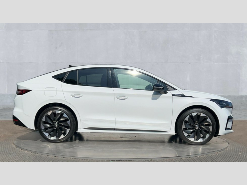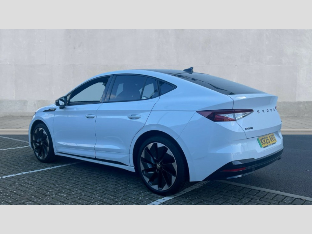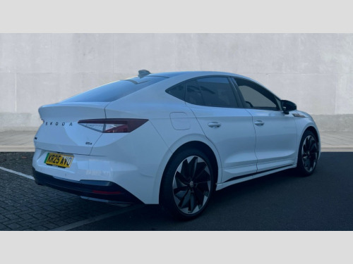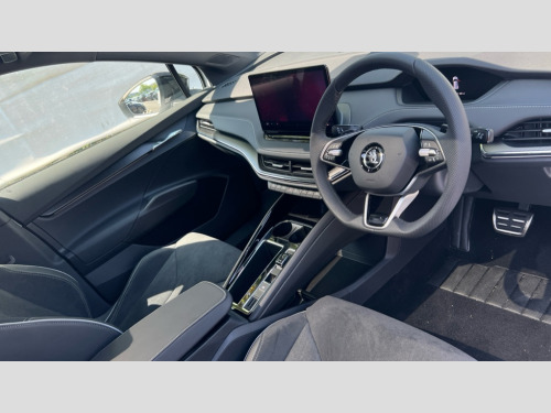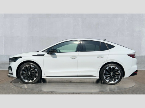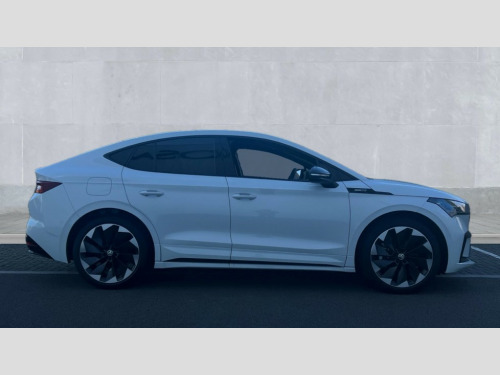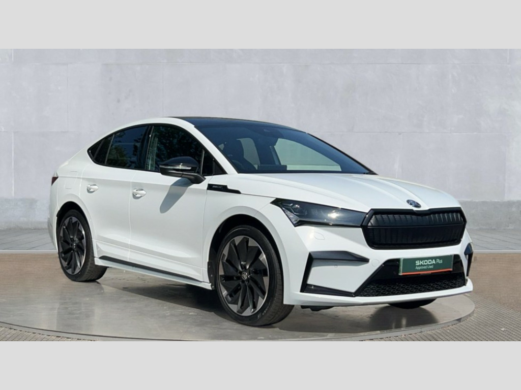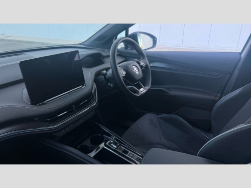 Skoda Enyaq 210kW 85x Sportline Plus 82kWh 4x4 5dr Auto 13" touchscreen display, Adaptive Cruise Control with traffic jam assist, Blind Spot Detection (BAS), Bluetooth system, Digital cockpit, Drive mode selector, Driver alert system, E-call, Electrically operated tailgate with kick activation (virtual pedal), Electronic engine sound, Exterior temperature indicator, Front and rear parking sensors, Gesture control, Progressive steering, Rear view camera, Satellite navigation system, Skoda Connect iV remote services with charging, air conditioning and smart schedules, Speed assist, Speed limiter, Tailgate unlocking from outside, Traffic sign recognition, Travel assist with emergency assist, lane assist plus with narrow lane assist and urban evasive steering support, Voice control system, Washer fluid level indicator, Wi-Fi hotspot, Wireless charging with cooling function, Wireless smartlink, 175 kW DC charging, 6m mode 3 cable (32A), Four wheel drive, Shock absorption in front, Shock absorption in rear, 8 Speakers, DAB Digital radio, USB-C ports (charging + data) front and rear, Auto dimming rear view mirror, Black decorative trims (including window and grille surround), Body colour bumpers, Body colour door mirrors and handles, Body colour door sills, Chrome side window surrounds, Dashboard and door moulding light in multiple colours, Door mirror memory, Dynamic headlight range control with cornering light function, Electric adjustable heated folding door mirrors with boarding spots and welcome logo, Electric front and rear windows, Front fog lights, Full LED Matrix beam headlights with variable light distribution, Full LED rear lights with variable lighting functions, Headlight washers, Heat insulating darkened glass in side and rear windows, Heat insulating glass in windshield, Heated rear window, LED daytime running lights, LED third brake light, Light assistant (coming home/tunnel light), Panoramic sunroof, Privacy glass and acoustic side windows, Radiator grille in gloss black, Rain and light sensors, Rear side wing doors, Safety reflectors on front and rear doors, Skoda lettering on tailgate in black, Sports bumpers, Tow bar preparation, 12V socket in boot, 1x umbrella, 3 rear headrests, 3 seat bench in 2nd row, 3-spoke black leather heated sports multifunction steering wheel with black stitching and paddles for recuperation level selection, 4 foldable roof handles with rear coat hooks, 60:40 foldable rear seat with sliding adjustment and backrest angle adjustment, Aluminium pedals, Boot lighting, Coat hooks on B pillar, Driver's electric adjustable lumbar support, Electrically adjustable driver seat with memory function, Extended interior noise suspension, Front and rear footwell lighting, Front and rear height adjustable headrests, Front courtesy lights, Front headrests, Front reading lights, Front sport seats, Glasses storage compartment in front centre armrest, Heated front seats, Height adjustable front passenger seat, High centre console with armrest, Illuminated and cooled glovebox, Interior door handle lighting in front and rear, Isofix child seat fittings in outer rear seats with top tether, Isofix child seat preparation for front passenger seat, Laminated soft-touch plastic knee rest, LED ambient lighting, Manual lumbar support for front passenger seat, Manual rear window blind, Manually adjustable steering column, Parcel shelf - folding, Pollen filter, Rear reading lights, Rear storage compartment, Single front passenger seat, Sunvisors with illuminated vanity mirrors, Tri zone climate control, SportLine design pack with Microsuede/leather - Enyaq, 3 point height adj front seatbelts + pretensioners, Auto door release and activation of warning lights in the event of an accident, Central interaction airbag, Crew protection assist, Driver and front passenger airbags, ESC (incl. ABS+MSR+ASR+EDS+HBA+DSR+RBS+MKB), Front and rear three point safety belt on all seats, Front assist with assisted automatic braking, Front disc brakes, Front passenger airbag deactivation switch, Front side airbags with curtain airbags, Height adjustable seatbelts, Power child locks, Rear drum brakes, Rear side airbags, Single tone horn, Tyre pressure monitor, Visual and acoustic seat belt reminder, Warning lights in front doors, Anti theft alarm system with interior monitoring, backup horn and towing protection, Central locking system with SAFE system, Keyless entry and start/stop system advanced with walk away locking, 20" Vega anthracite metallic alloy wheels, Anti-theft wheel bolts protection, Tyre repair kit with compressor