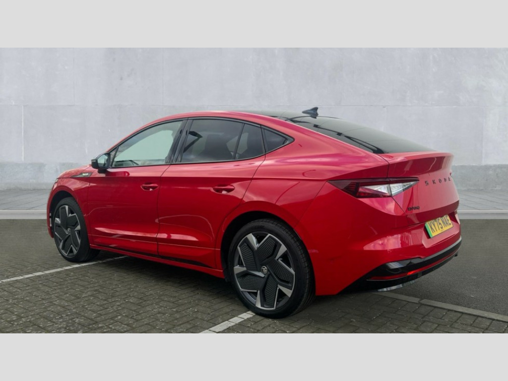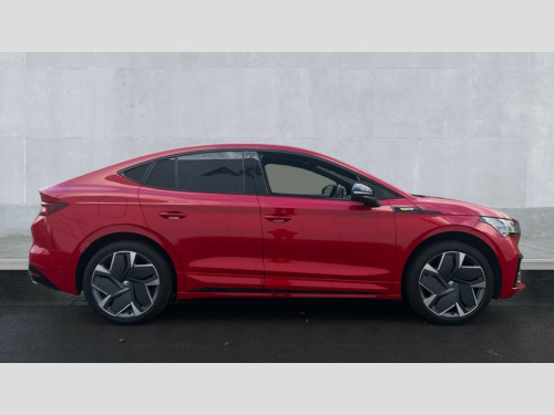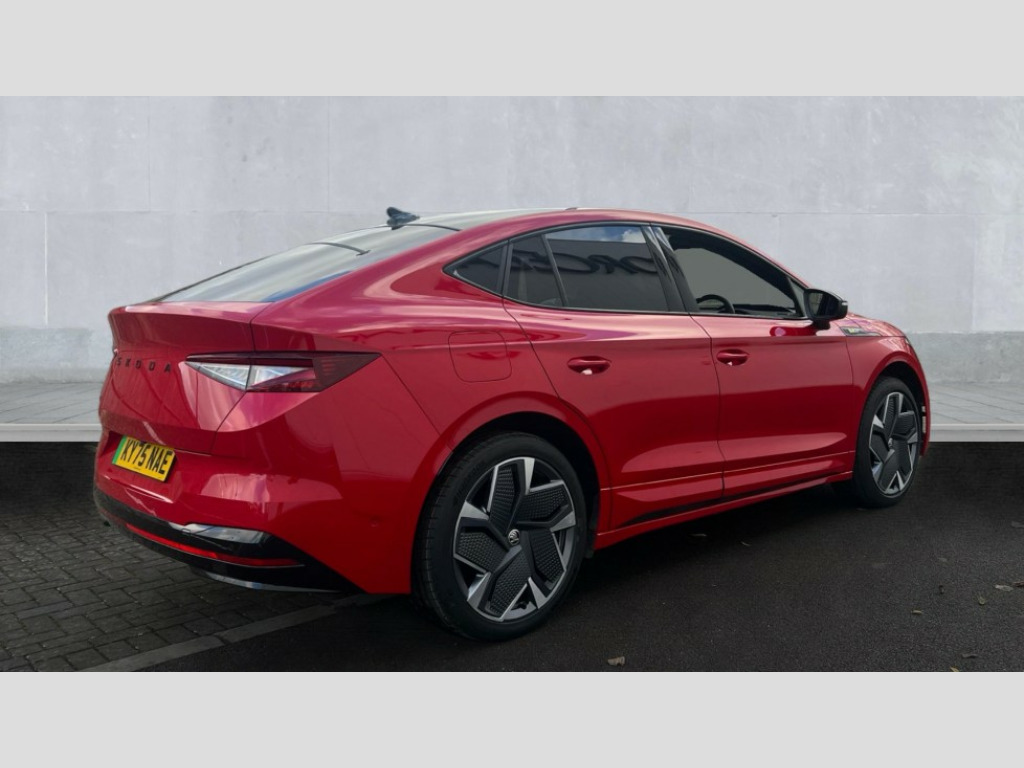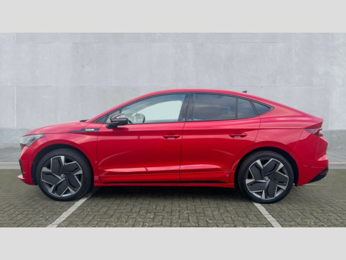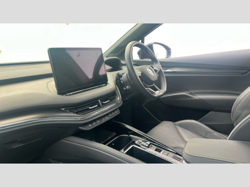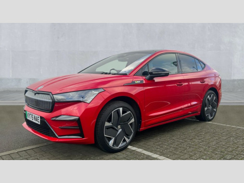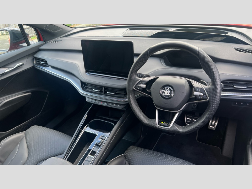 Skoda Enyaq 250kW vRS 82kWh 4x4 5dr Auto 13" touchscreen display, Adaptive Cruise Control with traffic jam assist, Blind Spot Detection (BAS), Bluetooth system, Digital cockpit, Drive mode selector, Driver alert system, E-call, Electrically operated tailgate with kick activation (virtual pedal), Electronic engine sound, Exterior temperature indicator, Front and rear parking sensors, Gesture control, Progressive steering, Rear view camera, Satellite navigation system, Skoda Connect iV remote services with charging, air conditioning and smart schedules, Speed assist, Speed limiter, Tailgate unlocking from outside, Traffic sign recognition, Travel assist with emergency assist, lane assist plus with narrow lane assist and urban evasive steering support, Voice control system, Washer fluid level indicator, Wi-Fi hotspot, Wireless charging with cooling function, Wireless smartlink, 175 kW DC charging, 6m mode 3 cable (32A), Four wheel drive, Shock absorption in front, Shock absorption in rear, 8 Speakers, DAB Digital radio, USB-C ports (charging + data) front and rear, Auto dimming rear view mirror, Black decorative trims (including window and grille surround), Body colour bumpers, Body colour door mirrors and handles, Body colour door sills, Chrome side window surrounds, Crystal face, Dashboard and door moulding light in multiple colours, Door mirror memory, Dynamic headlight range control with cornering light function, Electric adjustable heated folding door mirrors with boarding spots and welcome logo, Electric front and rear windows, Front fog lights, Full LED Matrix beam headlights with variable light distribution, Full LED rear lights with variable lighting functions, Headlight washers, Heat insulating darkened glass in side and rear windows, Heat insulating glass in windshield, Heated rear window, LED daytime running lights, LED third brake light, Light assistant (coming home/tunnel light), Panoramic sunroof, Privacy glass and acoustic side windows, Radiator grille in gloss black, Rain and light sensors, Rear side wing doors, Safety reflectors on front and rear doors, Skoda lettering on tailgate in black, Tow bar preparation, vRS sports bumpers, 12V socket in boot, 1x umbrella, 3 rear headrests, 3 seat bench in 2nd row, 3-spoke black leather heated sports multifunction steering wheel with black stitching and paddles for recuperation level selection, 4 foldable roof handles with rear coat hooks, Aluminium pedals, Boot lighting, Coat hooks on B pillar, Driver's electric adjustable lumbar support, Electrically adjustable driver seat with memory function, Extended interior noise suspension, Front and rear footwell lighting, Front and rear height adjustable headrests, Front courtesy lights, Front reading lights, Front seat head restraints, Front sport seats, Glasses storage compartment in front centre armrest, Heated front seats, Height adjustable front passenger seat, High centre console with armrest, Illuminated and cooled glovebox, Interior door handle lighting in front and rear, Isofix child seat fittings in outer rear seats with top tether, Isofix child seat preparation for front passenger seat, Laminated soft-touch plastic knee rest, LED ambient lighting, Luggage compartment lighting, Manual lumbar support for front passenger seat, Manual rear window blind, Manually adjustable steering column, Parcel shelf - folding, Pollen filter, Rear reading lights, Rear seat bench unsplit folding with center armrest, Rear storage compartment, Single front passenger seat, Sunvisors with illuminated vanity mirrors, Tri zone climate control, 3 point height adj front seatbelts + pretensioners, Auto door release and activation of warning lights in the event of an accident, Central interaction airbag, Crew protection assist, Driver and front passenger airbags, ESC (incl. ABS+MSR+ASR+EDS+HBA+DSR+RBS+MKB), Front and rear three point safety belt on all seats, Front assist with assisted automatic braking, Front disc brakes, Front passenger airbag deactivation switch, Front side airbags with curtain airbags, Height adjustable seatbelts, Power child locks, Rear drum brakes, Rear side airbags, Single tone horn, Tyre pressure monitor, Visual and acoustic seat belt reminder, Warning lights in front doors, Anti theft alarm system with interior monitoring, backup horn and towing protection, Central locking system with SAFE system, Keyless entry and start/stop system advanced with walk away locking, Anti-theft wheel bolts protection, Tyre repair kit with compressor