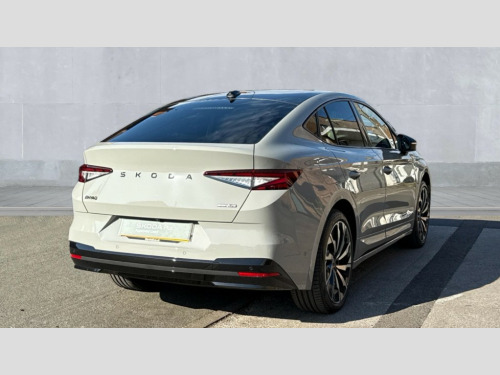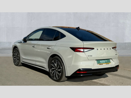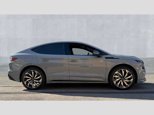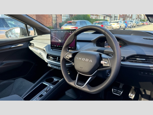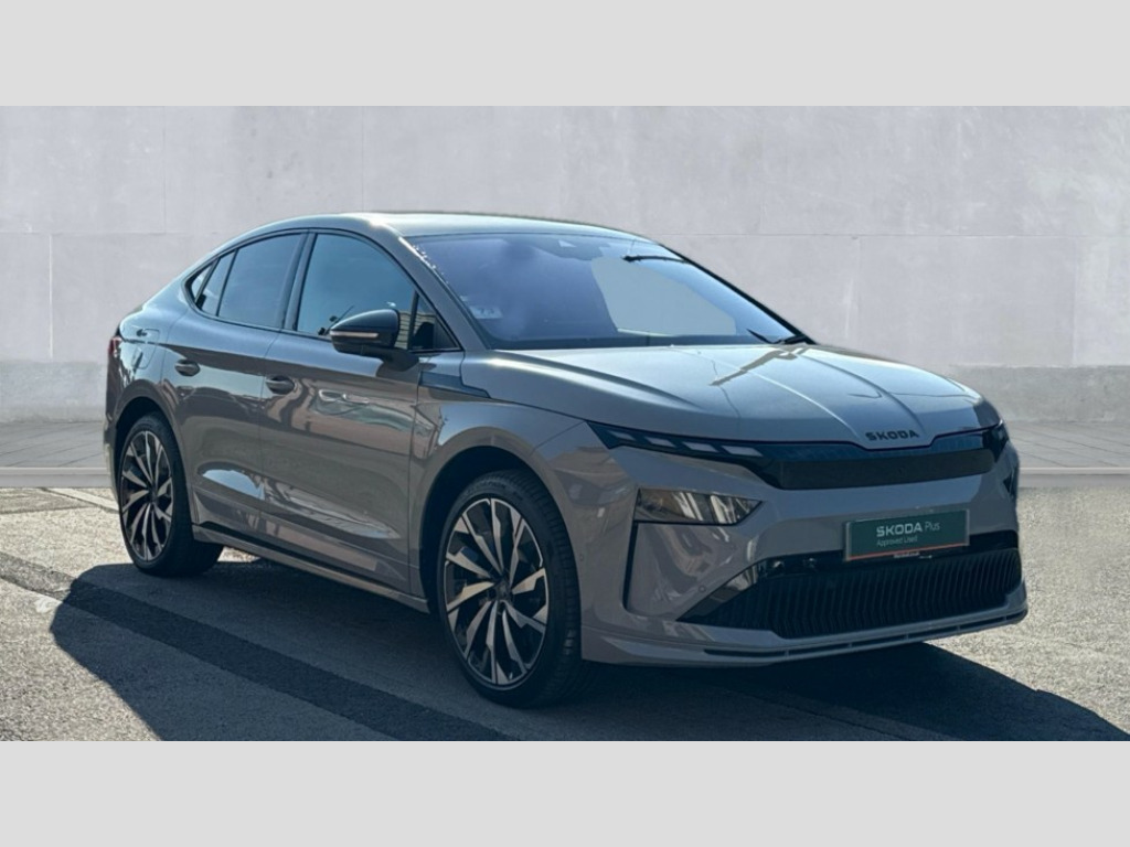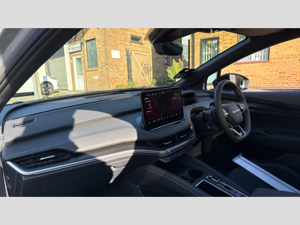 Up to 2 years Servicing, 2 years Warranty, 2 years Roadside Assistance, 2 MOT's and up to £1000 deposit contribution for vehicles up to 12 months old at 11.4% APR Representative ** 13" touchscreen display, 15W wireless charging with cooling function, 5" Digital cockpit, Blind Spot Detection (BAS), Bluetooth system, Drive mode selector, Driver alert system, E-call, Electrically operated tailgate with kick activation (virtual pedal), Electronic engine sound, Emergency steering support with turn assist, Exterior temperature indicator, Front and rear parking sensors, Front assist with assisted automatic braking to vehicles, pedestrians and cyclists, Gesture control, Predictive adaptive cruise control with traffic jam assist, Progressive steering, Satellite navigation system, Skoda Connect iV remote services with charging, air conditioning and smart schedules, Speed assist, Speed limiter, Traffic sign recognition, Travel assist plus with emergency assist, lane assist plus with narrow lane assist and urban evasive steering support, Voice control system, Washer fluid level indicator, Wi-Fi hotspot, Wireless smartlink, 135 kW DC charging, 6m mode 3 cable (32A), Sports suspension, 45W USB-C ports (charging + data) front and rear, DAB Digital radio, Auto dimming rear view mirror, Body colour door mirrors and handles, Body colour door sills, Dashboard and door moulding light in multiple colours, Door mirror memory, Dynamic headlight range control with cornering light function, Electric adjustable heated folding door mirrors with boarding spots and welcome logo, Electric front and rear windows, Full LED Matrix beam headlights with variable light distribution, Gloss black tailgate lettering, Gloss black window surround, Heat insulating darkened glass in side and rear windows, Heat insulating glass in windshield, Integrated fog light with all-weather function, LED daytime running lights, LED rear lights with animated indicators, LED third brake light, Light assistant (coming and leaving home), Panoramic opening glass sunroof, Privacy glass and acoustic side windows, Radiator grille in gloss black, Rain and light sensors, Rear side wing doors, Rear wiper, Safety reflectors on front and rear doors, Sports bumpers, Variable front intermittent wipers, 12V socket in boot, 1x umbrella, 3 rear headrests, 3 seat bench in 2nd row, 3-spoke leather heated sports multifunction steering wheel with paddles for recuperation level selection, 60:40 foldable rear seat with sliding adjustment and backrest angle adjustment, Aluminium pedals, Black artificial leather dashboard with grey stitching, Black textile floor mats with grey stitching, Boot lighting, Electrically adjustable driver seat with memory function, Extended interior noise suppression, Folding boot cover, Front courtesy lights, Front reading lights, Front sport seats, Front sports head restraints, Heated front seats, Height adjustable drivers seat, Height adjustable front passenger seat, High centre console with armrest, Isofix child seat fittings in outer rear seats with top tether, Isofix child seat preparation for front passenger seat, Laminated soft-touch plastic knee rest, LED ambient lighting, Manual rear window blind, Manually adjustable steering column, Massage functionality for drivers seat, Microsuede/artificial leather upholstery, Pollen filter, Power adjustable lumbar front seats, Rear reading lights, Single front passenger seat, Sunvisors with illuminated vanity mirrors, Tri zone climate control, White front and rear footwell lighting and door handle lighting, Advanced package with head up display - Enyaq, 3 point height adj front seatbelts + pretensioners, Auto door release and activation of warning lights in the event of an accident, Black seatbelts, Central interaction airbag, Crew protection assist, Driver and front passenger airbags, ESC (incl. ABS+MSR+ASR+EDS+HBA+DSR+RBS+MKB), Front and rear three point safety belt on all seats, Front disc brakes, Front passenger airbag deactivation switch, Front side airbags with curtain airbags, Height adjustable seatbelts, Power child locks, Rear drum brakes, Rear side airbags, Two tone horn, Tyre pressure monitor, Visual and acoustic seat belt reminder, Warning lights in front doors, Anti theft alarm system with interior monitoring, backup horn and towing protection, Central locking system with SAFE system, Keyless entry and start/stop system advanced with walk away locking, Black fabric headlining, Carbon effect decorative inserts, Matte black lining around drive selector, Anti-theft wheel bolts protection, Tyre repair kit with compressor