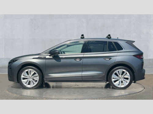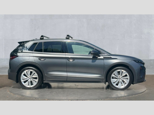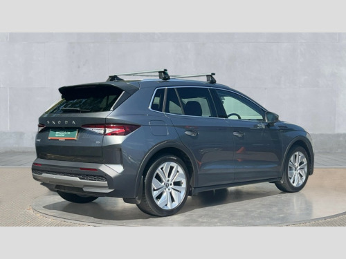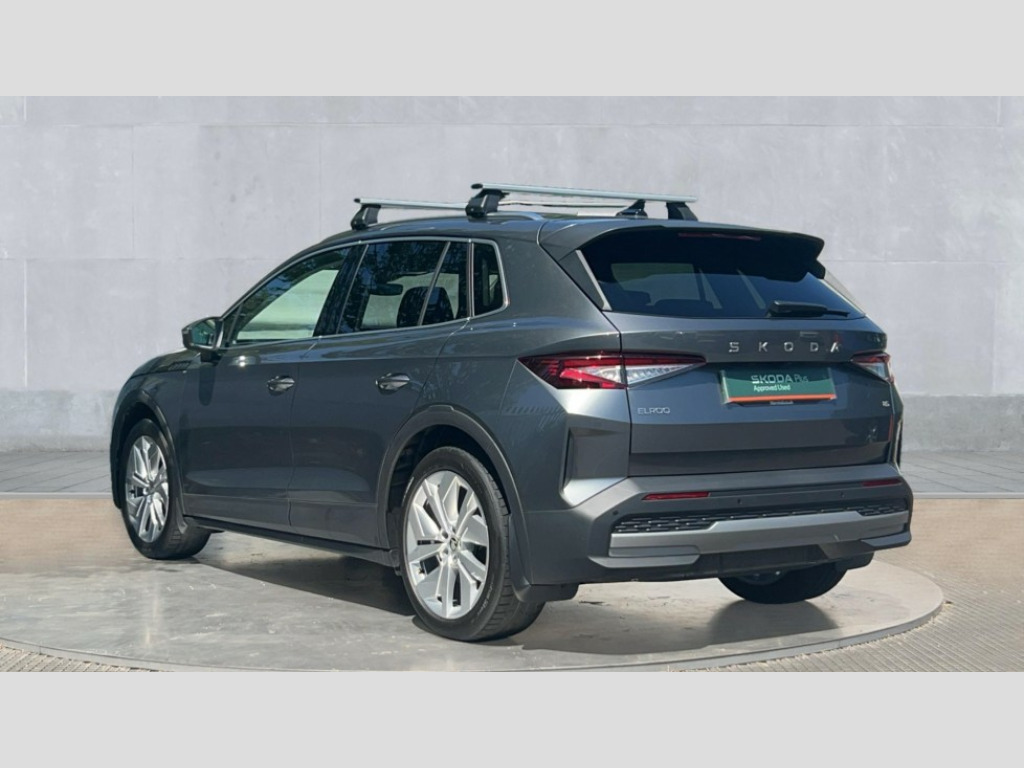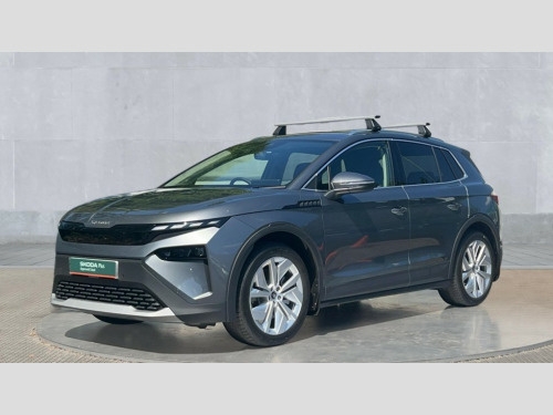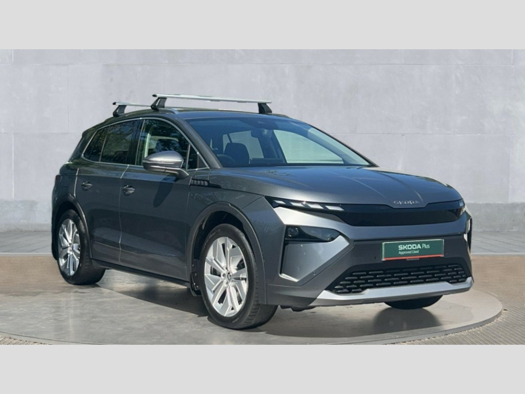 Skoda Elroq 210kW 85 Edition 82kWh 5dr Auto 13" touchscreen display, 15W wireless charging with cooling function, Blind spot detection, Bluetooth, Digital cockpit, Drive mode select, Driver alert control, eCall emergency system, Electronic engine sound, Emergency steering support with turn assist, Front parking sensors, Gesture control, Manual tailgate, Power assist steering, Predictive adaptive cruise control with traffic jam assist, Rear parking sensors, Rear view camera, Satellite navigation system, Skoda Connect iV remote services with charging, air conditioning and smart schedules, Speed assist, Traffic sign recognition, Travel assist plus - emergency assist, lane assist plus with narrow lane assist, urban evasive steering support, Voice control, Washer fluid level indicator, Wi-Fi hotspot, Wireless smartlink, 175 kW DC charging, 6m mode 3 cable (32A), 45W USB-C ports (charging + data) front and rear, 8 Speakers, DAB Digital radio, Auto dimming door mirrors, Electric adjustable heated folding door mirrors with boarding spots and welcome logo, Frameless auto dimming rear view mirror, Heat insulating glass windscreen, LED 3rd brake light, LED headlights with LED daytime running lights and headlight range control, Light and rain sensors, Light assistant including coming home and leaving function, Manually operated boot, Preparation for tow bar, Privacy glass and acoustic side windows, Rear LED lights, Rear side wing doors, Rear spoiler, Rear window wiper with washer system and intermittent control, Side and rear windows in heat insulating glass, Unique dark chrome roof rails, Unique dark chrome window trim, 12V socket in boot, 1x umbrella, 2-spoke leather heated multi-function steering wheel with paddles for recuperation level selection, 3 rear headrests, 3 seat bench in 2nd row, Boot lighting, Extended interior noise suspension, Folding boot cover, Front head restraints, Heated front seats, Isofix child seat fittings in outer rear seats with top tether, Isofix child seat preparation for front passenger seat, LED ambient lighting, Manual lumbar support for front seats, Manually adjustable front seats, Single front passenger seat, Loft design pack - Elroq, 3 point rear seatbelts, Crew protect assist, Driver and front passenger airbag with passenger airbag deactivation, Electric child locks, ESC (incl. ABS+MSR+ASR+EDS+HBA+DSR+RBS+MKB), Front assist with braking reaction to vehicles, pedestrians and cyclists, Front disc brakes, Front side airbags with curtain airbags and central interaction airbag, Rear drum brakes, Single tone horn, Three point seatbelt in front, with pretensioner, lap belt pretensioner and height adjustment, Tyre pressure monitoring system, Visual and acoustic seat belt reminder, Anti theft alarm system with interior monitoring, backup horn and towing protection, Central locking system with SAFE system, Keyless entry and start/stop system advanced with walk away locking, Anti-theft wheel bolts protection, Tyre repair kit