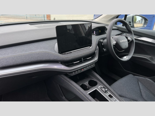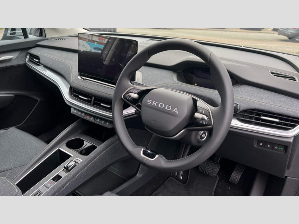Skoda Elroq 210kW 85 Edition 82kWh 5dr Auto 13" touchscreen display, 15W wireless charging with cooling function, Blind spot detection, Bluetooth, Digital cockpit, Drive mode select, Driver alert control, eCall emergency system, Electronic engine sound, Emergency steering support with turn assist, Front parking sensors, Gesture control, Manual tailgate, Power assist steering, Predictive adaptive cruise control with traffic jam assist, Rear parking sensors, Rear view camera, Satellite navigation system, Skoda Connect iV remote services with charging, air conditioning and smart schedules, Speed assist, Traffic sign recognition, Travel assist plus - emergency assist, lane assist plus with narrow lane assist, urban evasive steering support, Voice control, Washer fluid level indicator, Wi-Fi hotspot, Wireless smartlink, 175 kW DC charging, 6m mode 3 cable (32A), 45W USB-C ports (charging + data) front and rear, 8 Speakers, DAB Digital radio, Auto dimming door mirrors, Electric adjustable heated folding door mirrors with boarding spots and welcome logo, Frameless auto dimming rear view mirror, Heat insulating glass windscreen, LED 3rd brake light, LED headlights with LED daytime running lights and headlight range control, Light and rain sensors, Light assistant including coming home and leaving function, Manually operated boot, Preparation for tow bar, Privacy glass and acoustic side windows, Rear LED lights, Rear side wing doors, Rear spoiler, Rear window wiper with washer system and intermittent control, Side and rear windows in heat insulating glass, Unique dark chrome roof rails, Unique dark chrome window trim, 12V socket in boot, 1x umbrella, 2-spoke leather heated multi-function steering wheel with paddles for recuperation level selection, 3 rear headrests, 3 seat bench in 2nd row, Boot lighting, Extended interior noise suspension, Folding boot cover, Front head restraints, Heated front seats, Isofix child seat fittings in outer rear seats with top tether, Isofix child seat preparation for front passenger seat, LED ambient lighting, Manual lumbar support for front seats, Manually adjustable front seats, Single front passenger seat, Loft design pack - Elroq, 3 point rear seatbelts, Crew protect assist, Driver and front passenger airbag with passenger airbag deactivation, Electric child locks, ESC (incl. ABS+MSR+ASR+EDS+HBA+DSR+RBS+MKB), Front assist with braking reaction to vehicles, pedestrians and cyclists, Front disc brakes, Front side airbags with curtain airbags and central interaction airbag, Rear drum brakes, Three point seatbelt in front, with pretensioner, lap belt pretensioner and height adjustment, Two tone horn, Tyre pressure monitoring system, Visual and acoustic seat belt reminder, Anti theft alarm system with interior monitoring, backup horn and towing protection, Central locking system with SAFE system, Keyless entry and start/stop system advanced with walk away locking, Anti-theft wheel bolts protection, Tyre repair kit