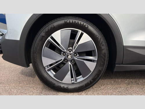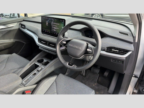 Skoda Elroq 210kW 85 Edition 82kWh 5dr Auto 13" touchscreen display, 15W wireless charging with cooling function, Blind spot detection, Bluetooth, Digital cockpit, Drive mode select, Driver alert control, eCall emergency system, Electronic engine sound, Emergency steering support with turn assist, Front parking sensors, Gesture control, Manual tailgate, Power assist steering, Predictive adaptive cruise control with traffic jam assist, Rear parking sensors, Rear view camera, Satellite navigation system, Skoda Connect iV remote services with charging, air conditioning and smart schedules, Speed assist, Traffic sign recognition, Travel assist plus - emergency assist, lane assist plus with narrow lane assist, urban evasive steering support, Voice control, Washer fluid level indicator, Wi-Fi hotspot, Wireless smartlink, 175 kW DC charging, 6m mode 3 cable (32A), 45W USB-C ports (charging + data) front and rear, 8 Speakers, DAB Digital radio, Auto dimming door mirrors, Electric adjustable heated folding door mirrors with boarding spots and welcome logo, Frameless auto dimming rear view mirror, Heat insulating glass windscreen, LED 3rd brake light, LED headlights with LED daytime running lights and headlight range control, Light and rain sensors, Light assistant including coming home and leaving function, Manually operated boot, Preparation for tow bar, Privacy glass and acoustic side windows, Rear LED lights, Rear side wing doors, Rear spoiler, Rear window wiper with washer system and intermittent control, Side and rear windows in heat insulating glass, Unique dark chrome roof rails, Unique dark chrome window trim, 12V socket in boot, 1x umbrella, 2-spoke leather heated multi-function steering wheel with paddles for recuperation level selection, 3 rear headrests, 3 seat bench in 2nd row, Boot lighting, Extended interior noise suspension, Folding boot cover, Front head restraints, Heated front seats, Isofix child seat fittings in outer rear seats with top tether, Isofix child seat preparation for front passenger seat, LED ambient lighting, Manual lumbar support for front seats, Manually adjustable front seats, Single front passenger seat, Loft design pack - Elroq, 3 point rear seatbelts, Crew protect assist, Driver and front passenger airbag with passenger airbag deactivation, Electric child locks, ESC (incl. ABS+MSR+ASR+EDS+HBA+DSR+RBS+MKB), Front assist with braking reaction to vehicles, pedestrians and cyclists, Front disc brakes, Front side airbags with curtain airbags and central interaction airbag, Rear drum brakes, Three point seatbelt in front, with pretensioner, lap belt pretensioner and height adjustment, Two tone horn, Tyre pressure monitoring system, Visual and acoustic seat belt reminder, Anti theft alarm system with interior monitoring, backup horn and towing protection, Central locking system with SAFE system, Keyless entry and start/stop system advanced with walk away locking, Anti-theft wheel bolts protection, Tyre repair kit