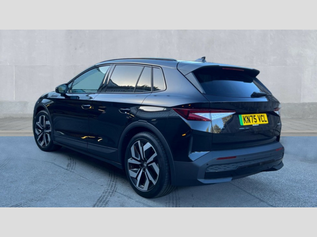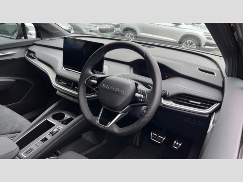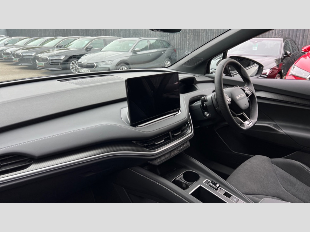 Skoda Elroq 210kW 85 SportLine 82kWh 5dr Auto 13" touchscreen display, 15W wireless charging with cooling function, Blind spot detection, Bluetooth, Digital cockpit, Drive mode select, Driver alert control, eCall emergency system, Electronic engine sound, Emergency steering support with turn assist, Front parking sensors, Gesture control, Predictive adaptive cruise control with traffic jam assist, Progressive dynamic steering, Rear parking sensors, Rear view camera, Satellite navigation system, Skoda Connect iV remote services with charging, air conditioning and smart schedules, Speed assist, Traffic sign recognition, Travel assist plus - emergency assist, lane assist plus with narrow lane assist, urban evasive steering support, Voice control, Washer fluid level indicator, Wi-Fi hotspot, Wireless smartlink, 175 kW DC charging, 6m mode 3 cable (32A), Sports suspension, 45W USB-C ports (charging + data) front and rear, 8 Speakers, DAB Digital radio, Black door mirrors heated, electrically adjustable, folding and auto dimming with boarding spots and welcome logo, Frameless auto dimming rear view mirror, Gloss black roof rails, Gloss black tailgate lettering, Gloss black window surround, Heat insulating glass windscreen, LED 3rd brake light, LED daytime running lights, Light and rain sensors, Light assistant including coming home and leaving function, Manually operated boot, Preparation for tow bar, Privacy glass and acoustic side windows, Rear side wing doors, Rear spoiler, Rear window wiper with washer system and intermittent control, Side and rear windows in heat insulating glass, Sportline bumpers, 12V socket in boot, 1x umbrella, 3 rear headrests, 3 seat bench in 2nd row, 3 spoke leather heated sports multifunction steering wheel with paddles for recuperation level selection, Aluminium pedals, Boot lighting, Extended interior noise suspension, Folding boot cover, Front sport seats, Heated front seats, Integrated head restraints, Isofix child seat fittings in outer rear seats with top tether, Isofix child seat preparation for front passenger seat, LED ambient lighting, Manual lumbar support for front seats, Manually adjustable front seats, Single front passenger seat, Plus package - Elroq, SportLine design pack - Elroq, 3 point rear seatbelts, Crew protect assist, Driver and front passenger airbag with passenger airbag deactivation, Electric child locks, ESC (incl. ABS+MSR+ASR+EDS+HBA+DSR+RBS+MKB), Front assist with braking reaction to vehicles, pedestrians and cyclists, Front disc brakes, Front side airbags with curtain airbags and central interaction airbag, Rear drum brakes, Three point seatbelt in front, with pretensioner, lap belt pretensioner and height adjustment, Two tone horn, Tyre pressure monitoring system, Visual and acoustic seat belt reminder, Anti theft alarm system with interior monitoring, backup horn and towing protection, Central locking system with SAFE system, Keyless entry and start/stop system advanced with walk away locking, Anti-theft wheel bolts protection, Tyre repair kit